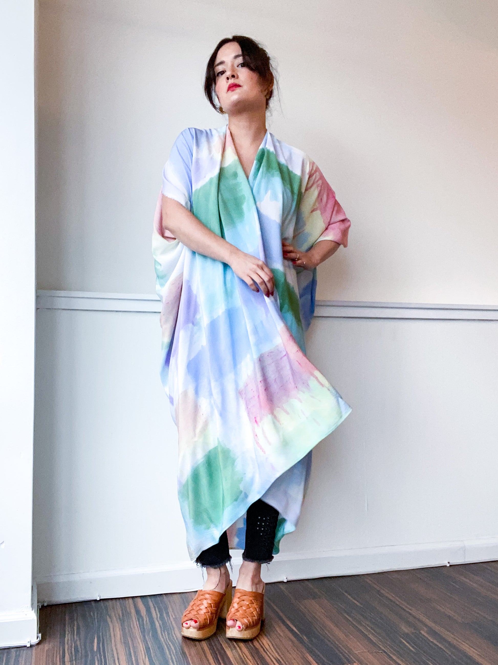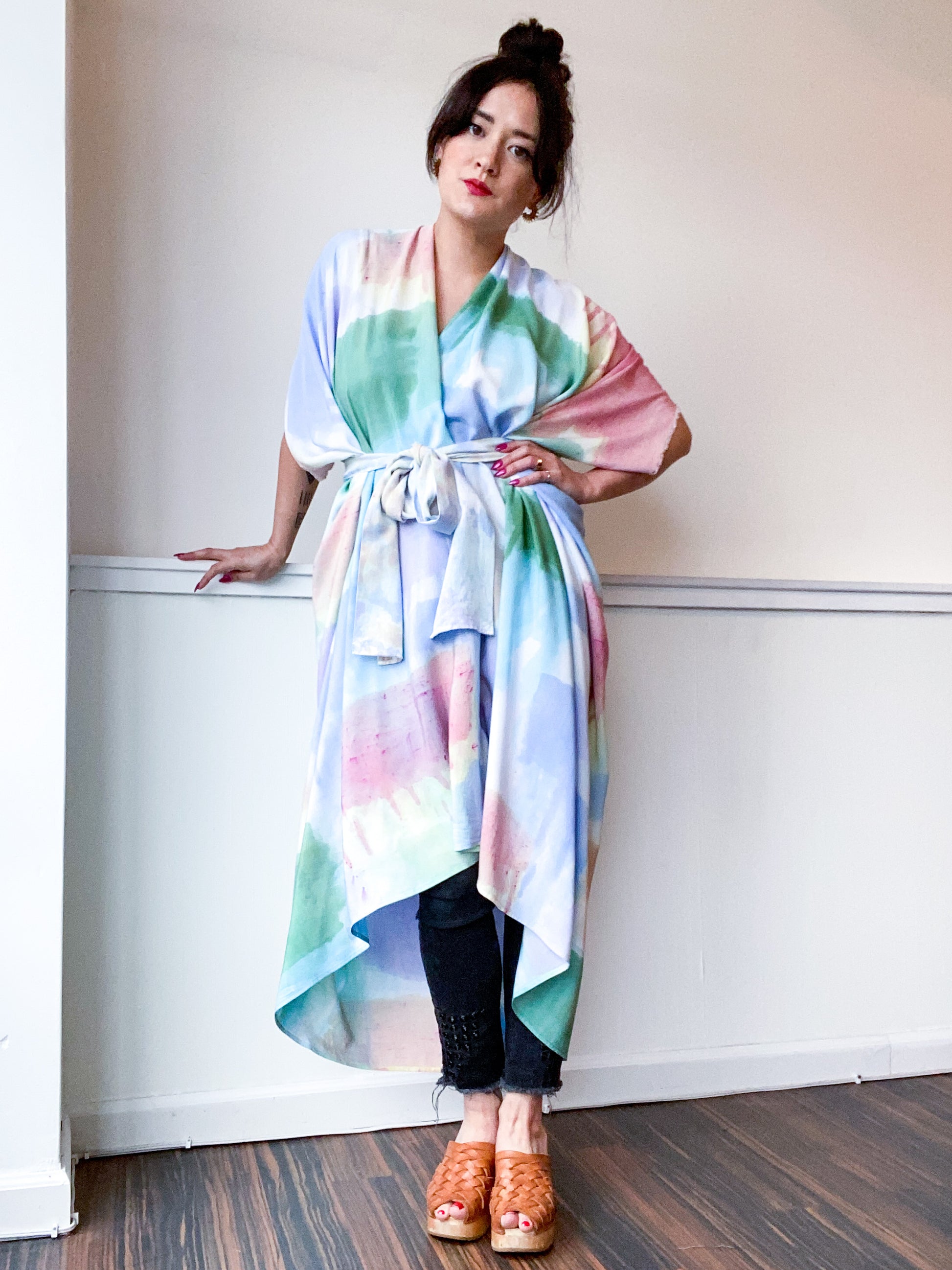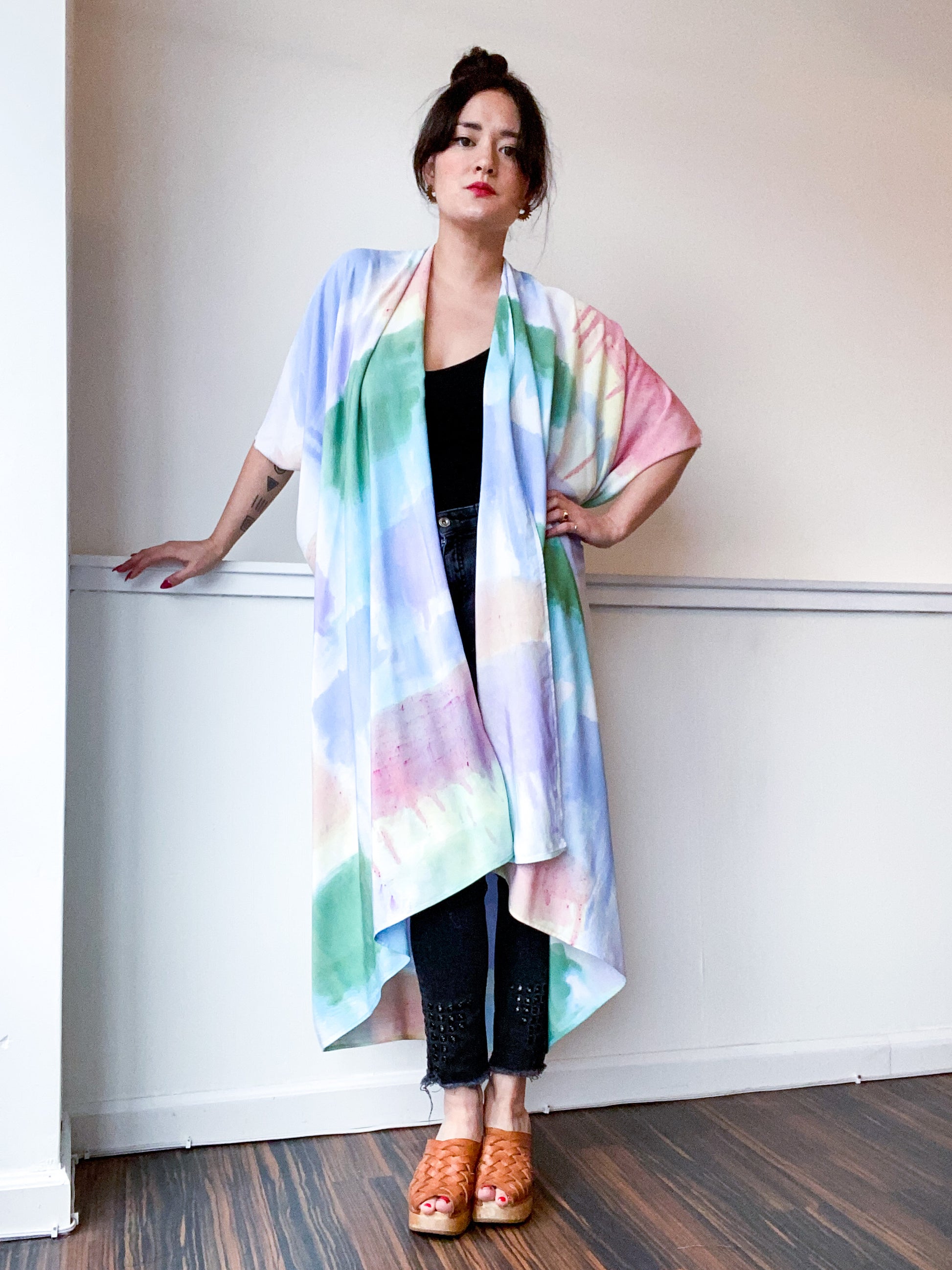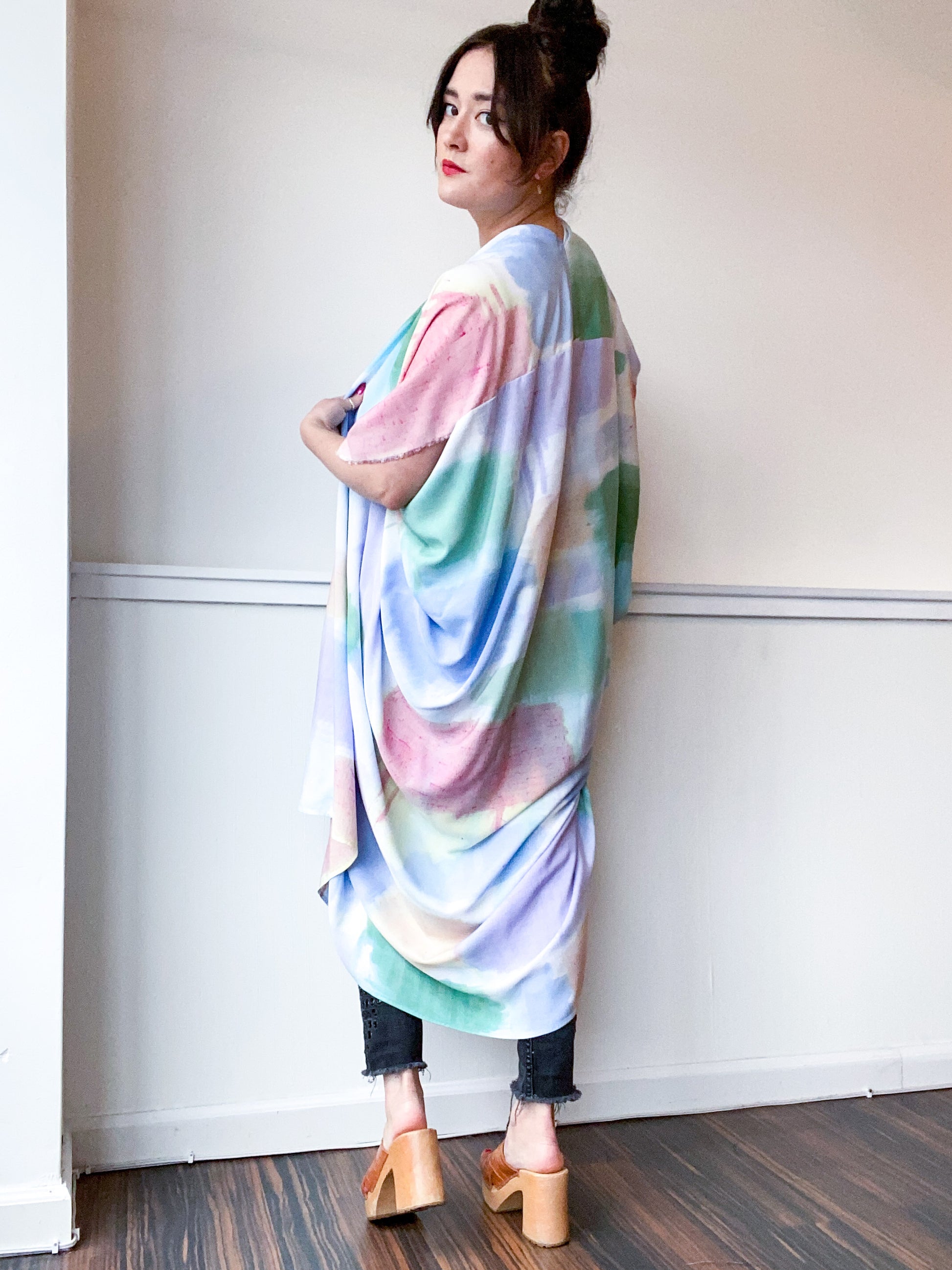 Limited Edition Hand-Dyed High Low Kimono Pastel Watercolor