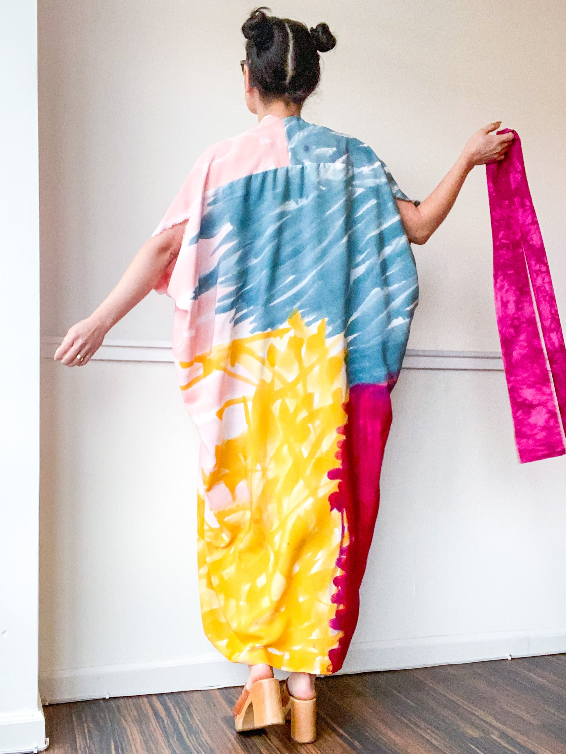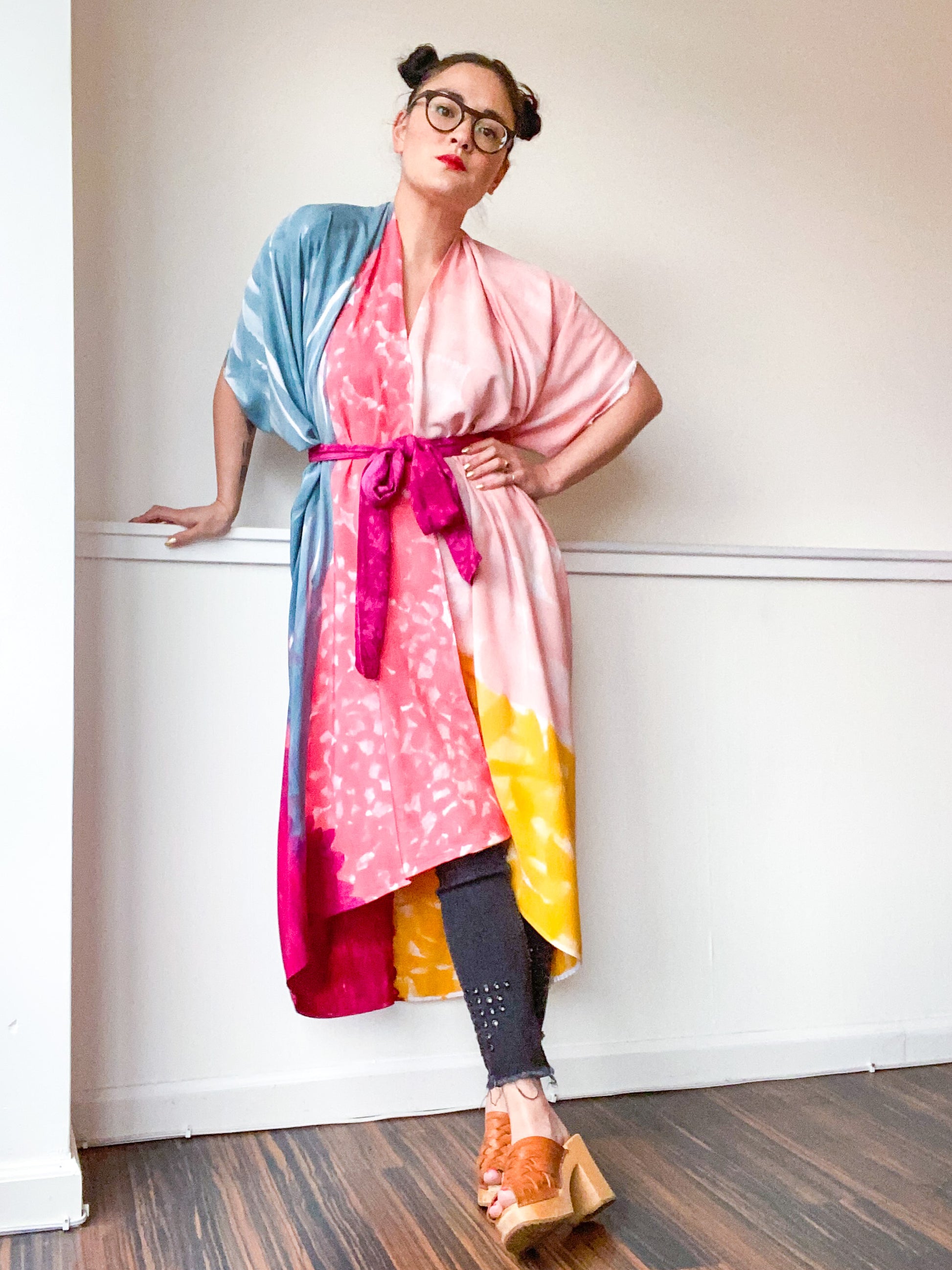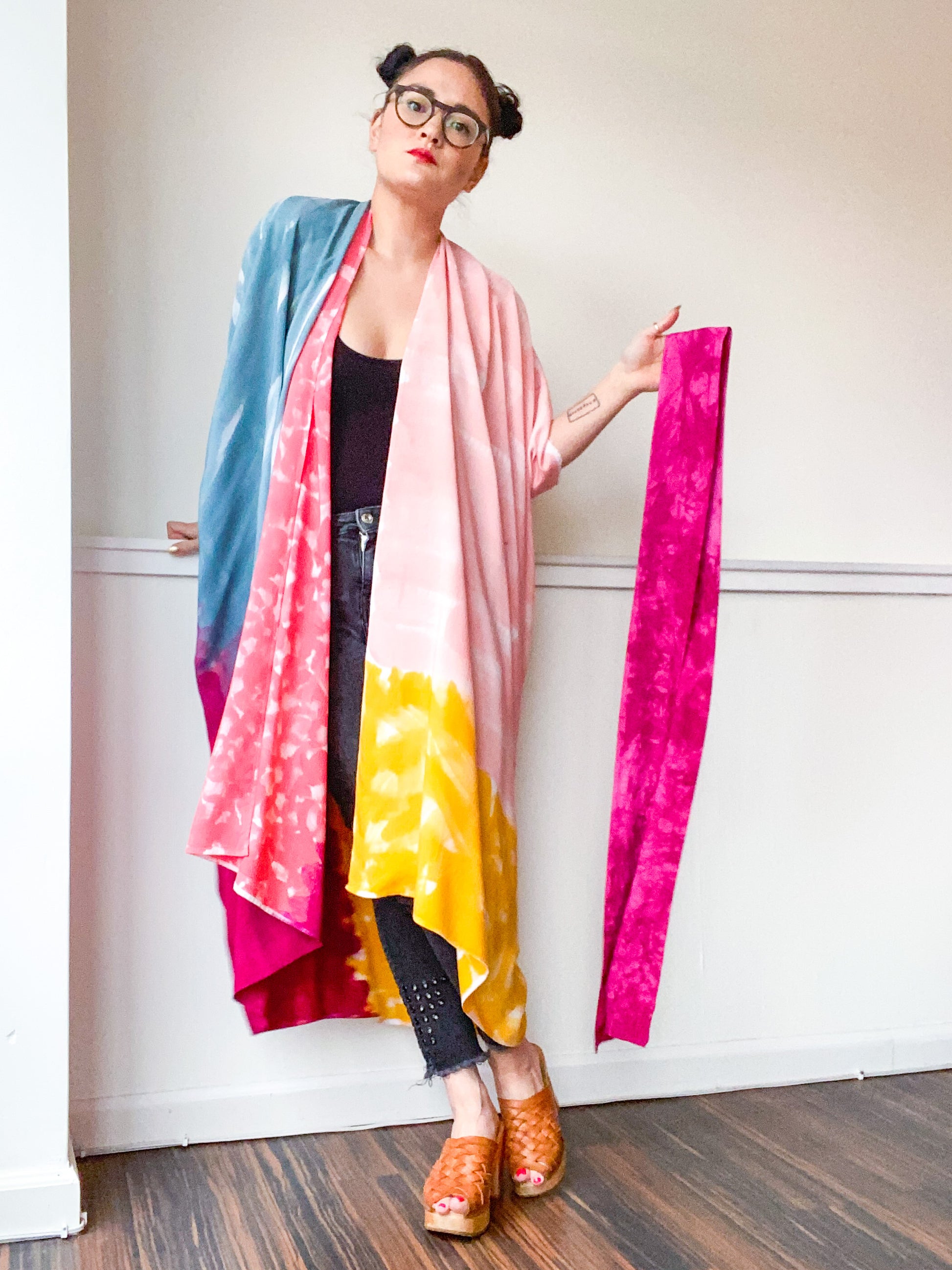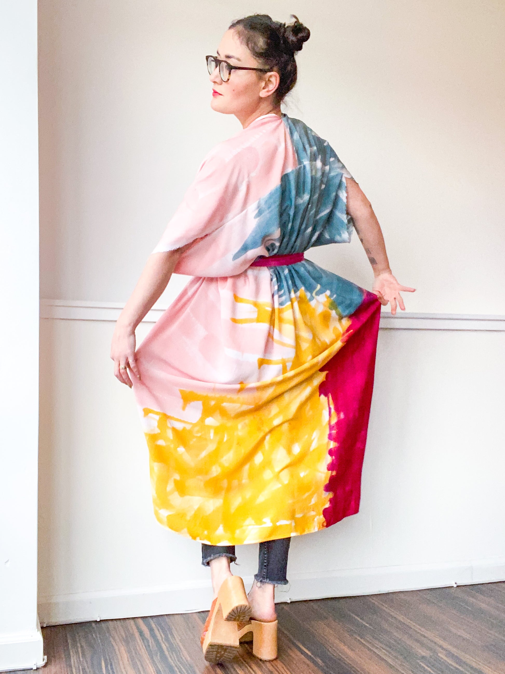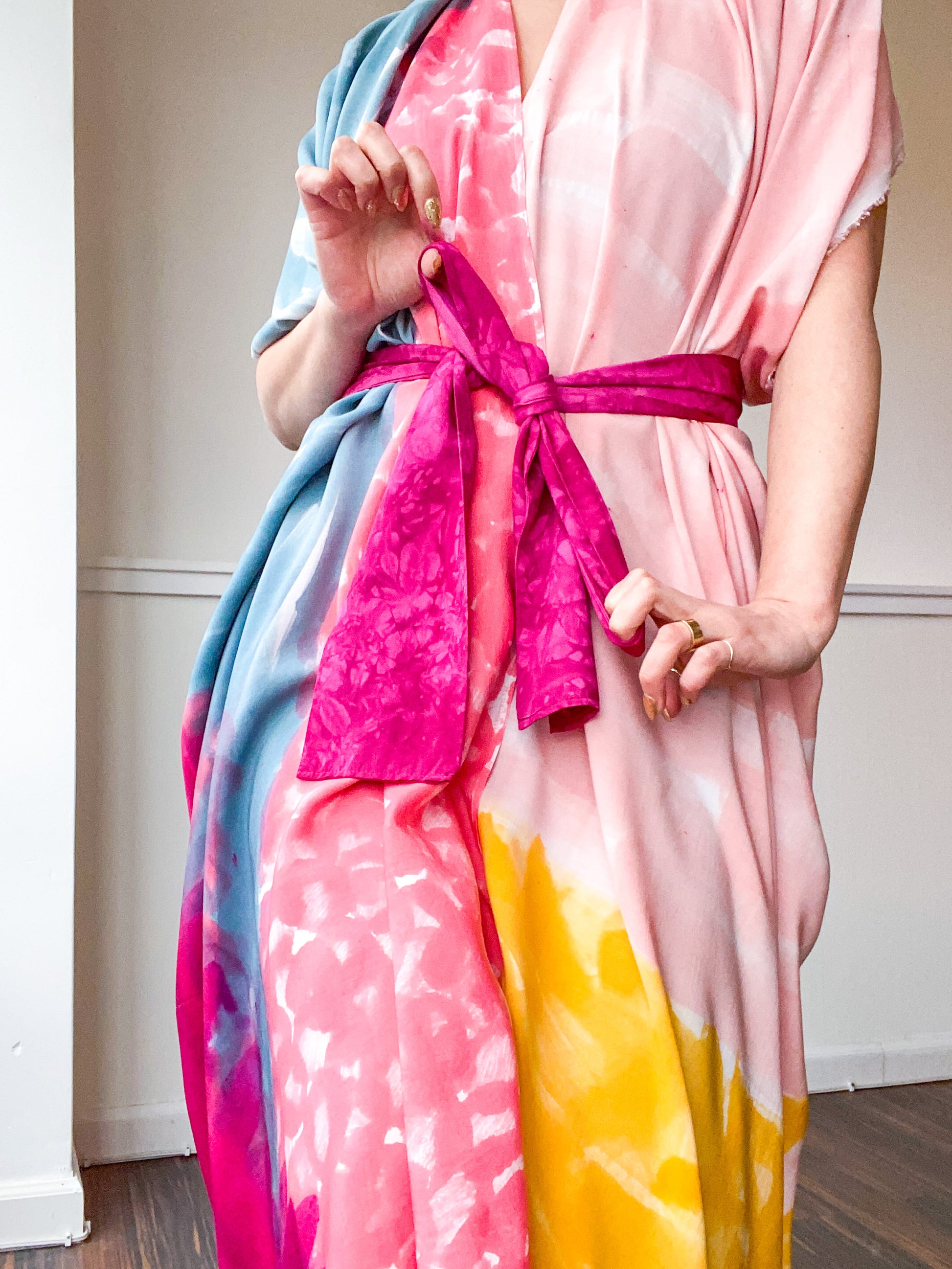 Limited Edition Hand-Dyed High Low Kimono Teal Pink Marigold
