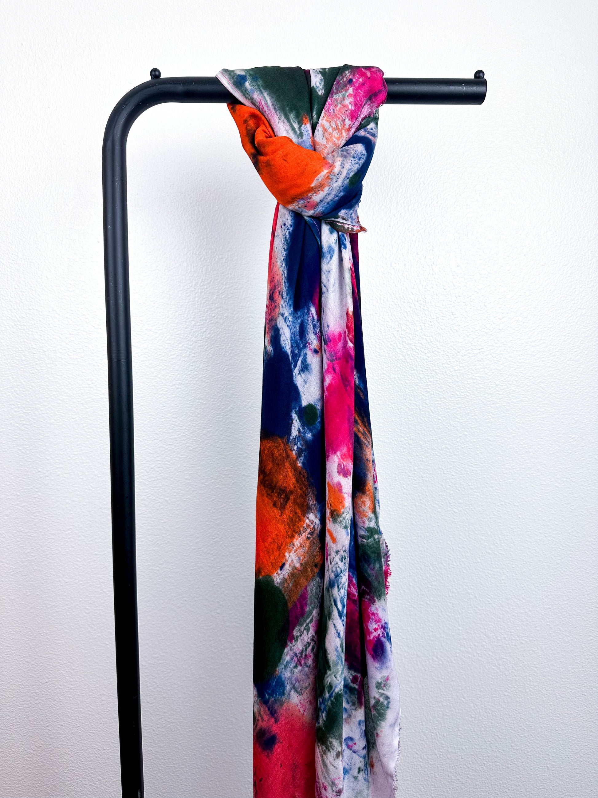 Hand-dyed oversized square scarf in watercolor inspired by León, Spain.