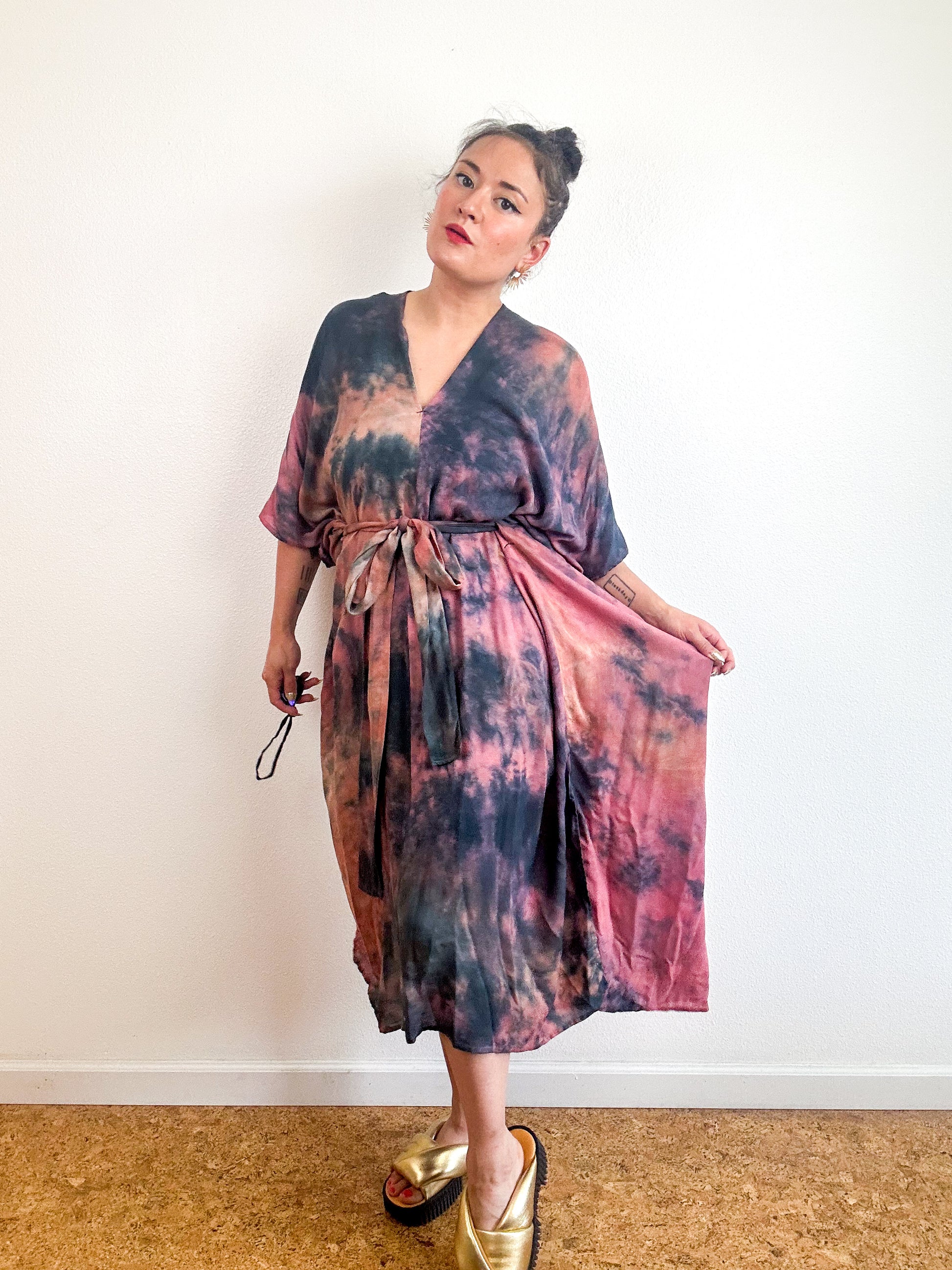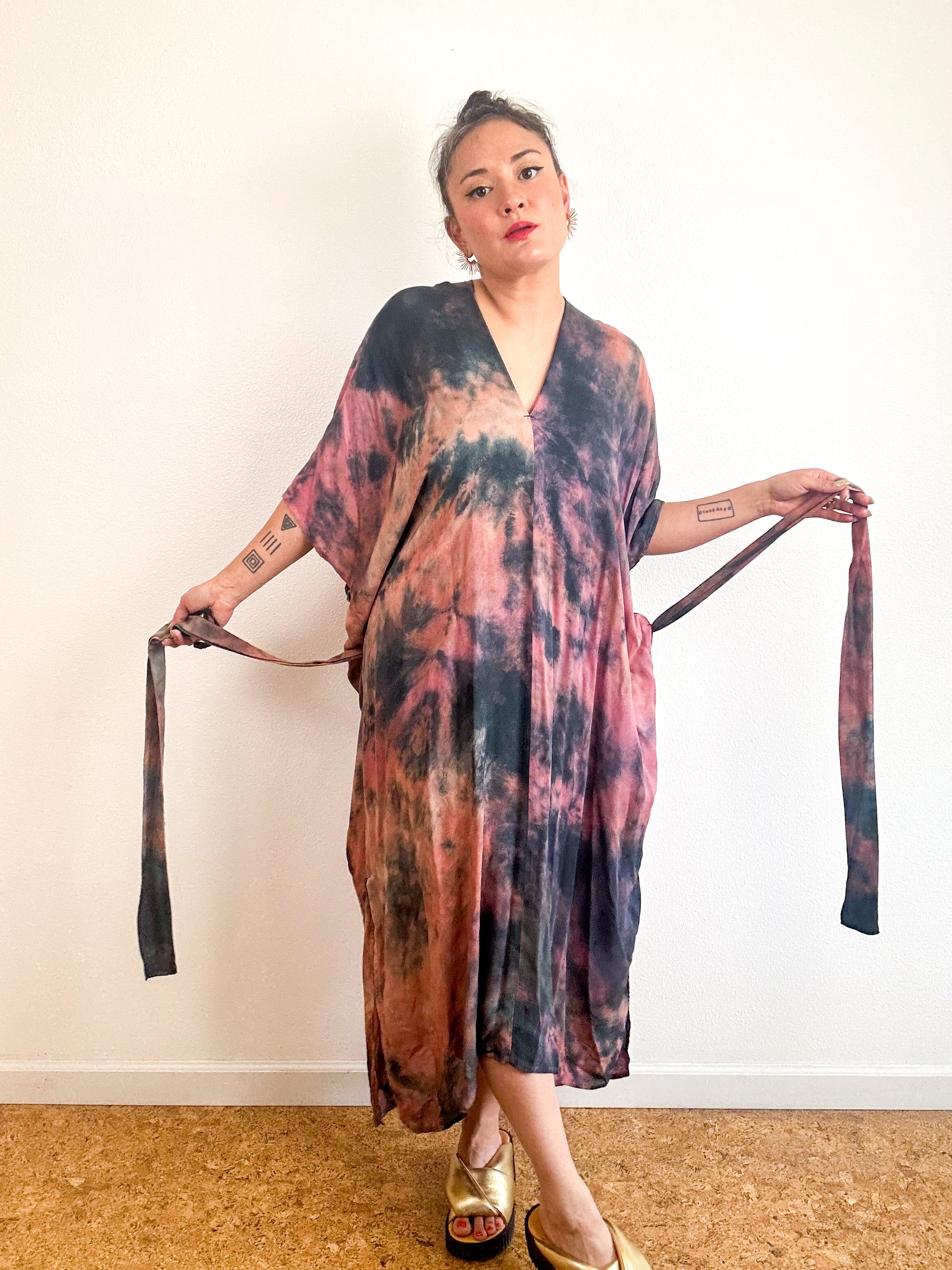 Hand-Dyed Bamboo Tie Caftan Terracotta Steel Watercolor