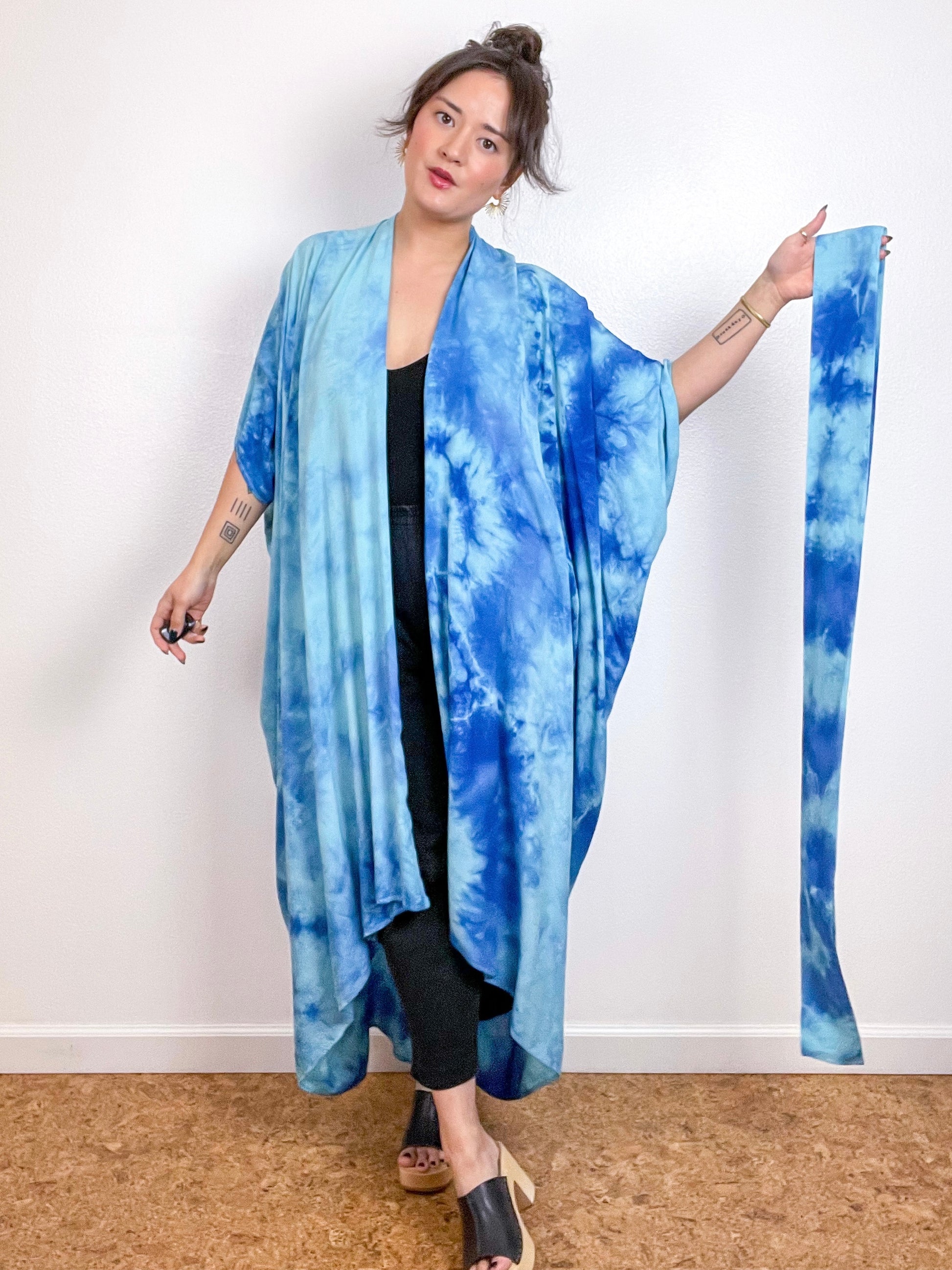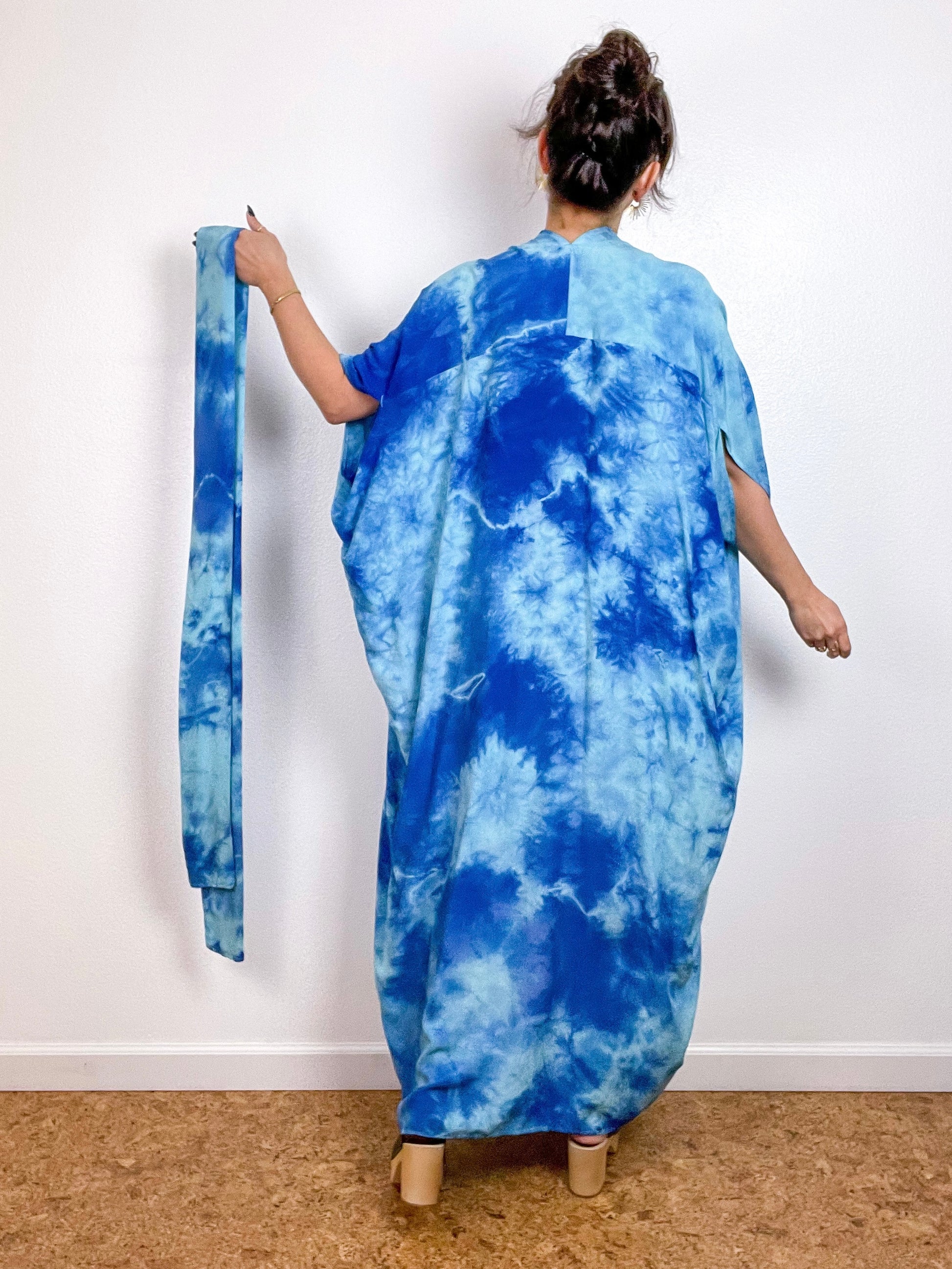 Hand-Dyed High Low Kimono Aqua Royal Tie