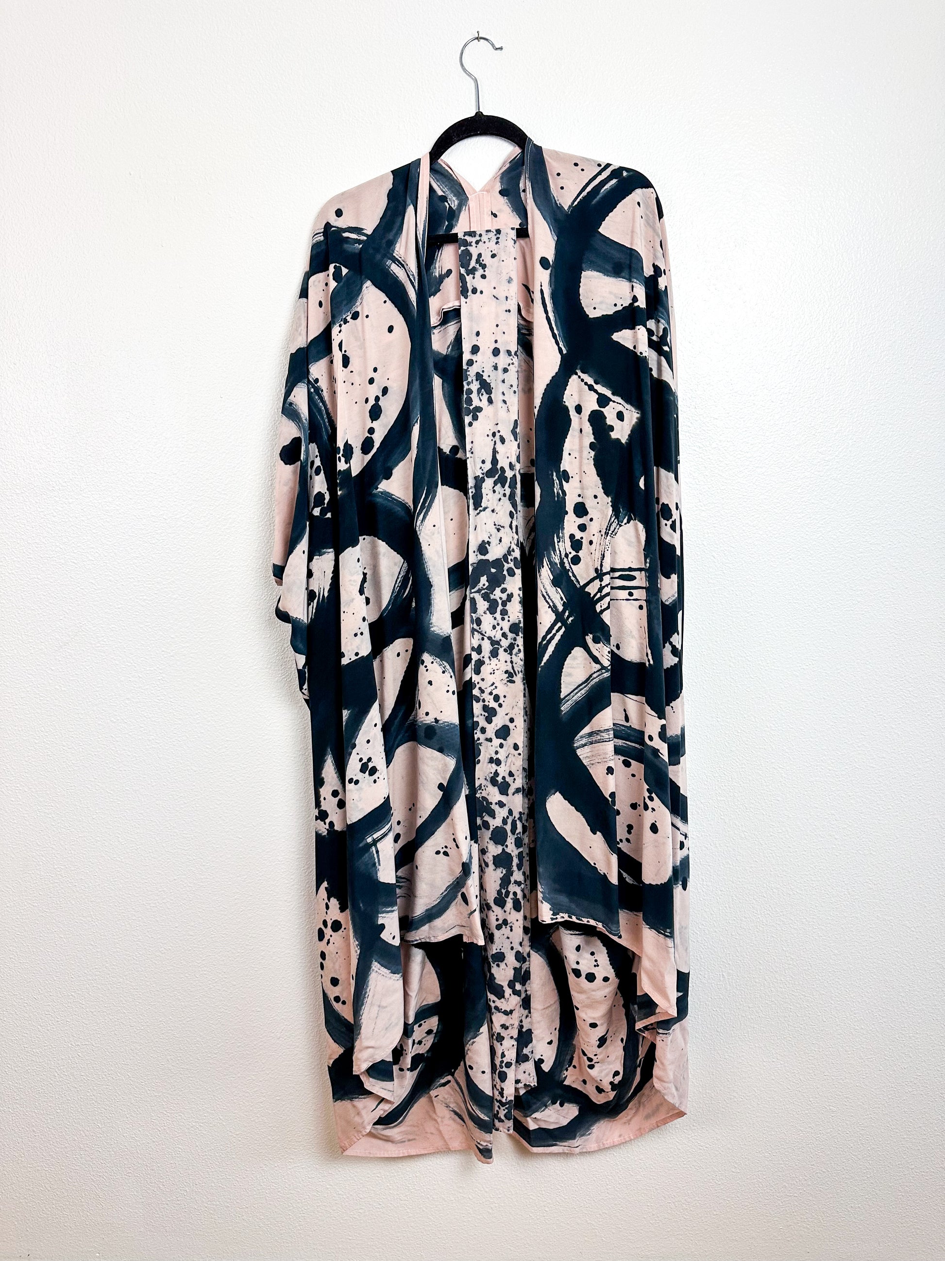 Hand-Dyed High Low Kimono Blush Black Sumi