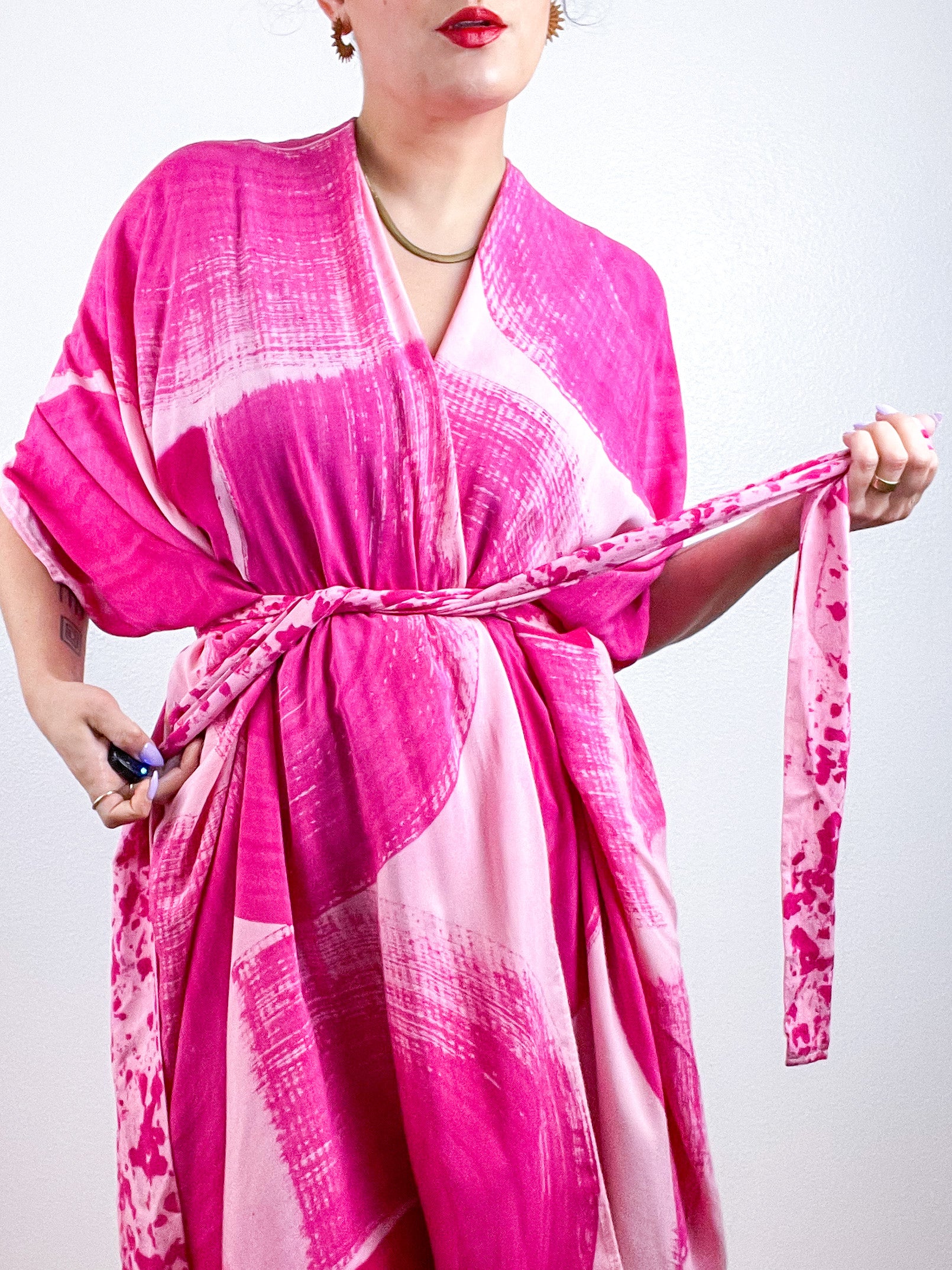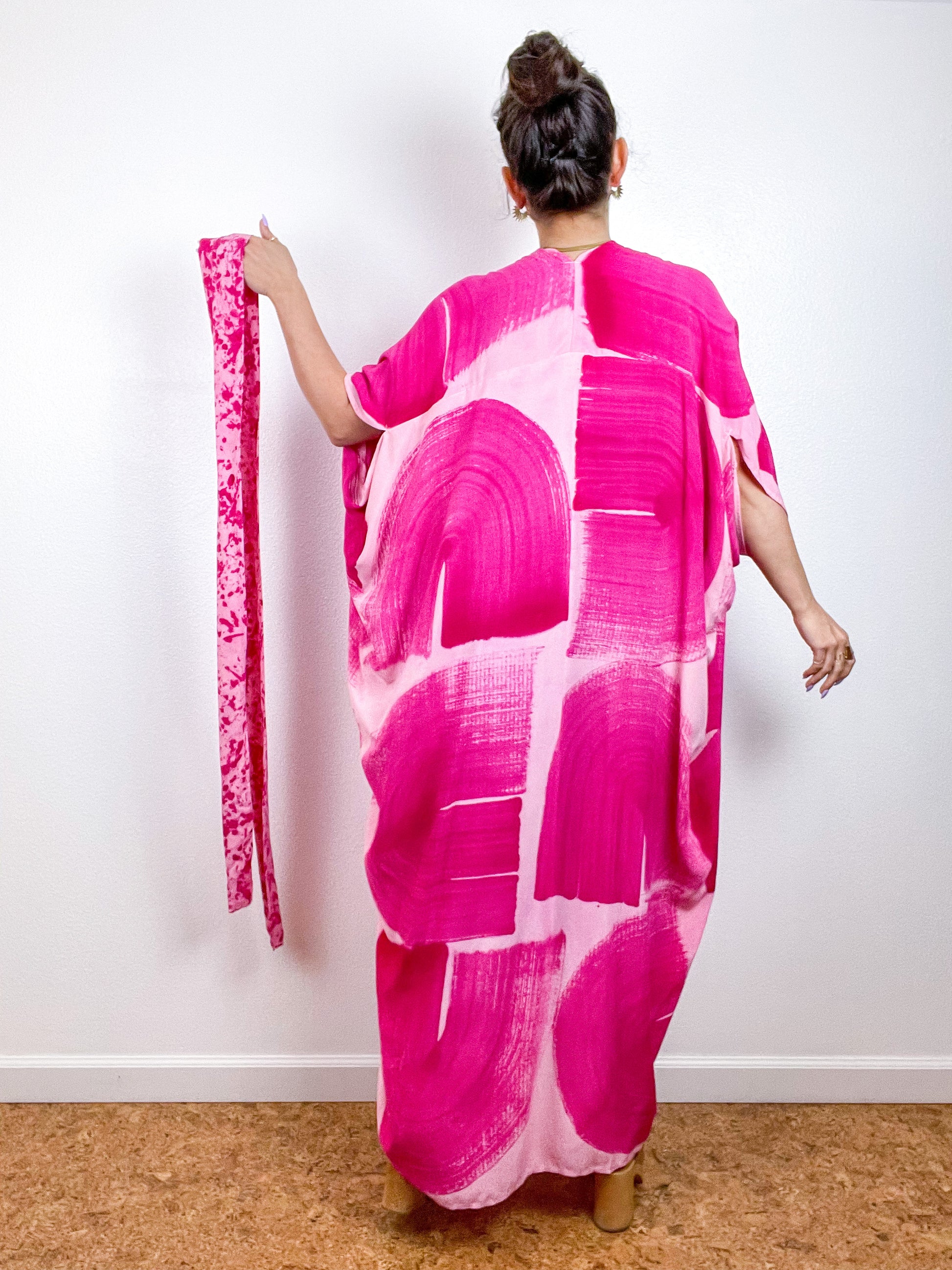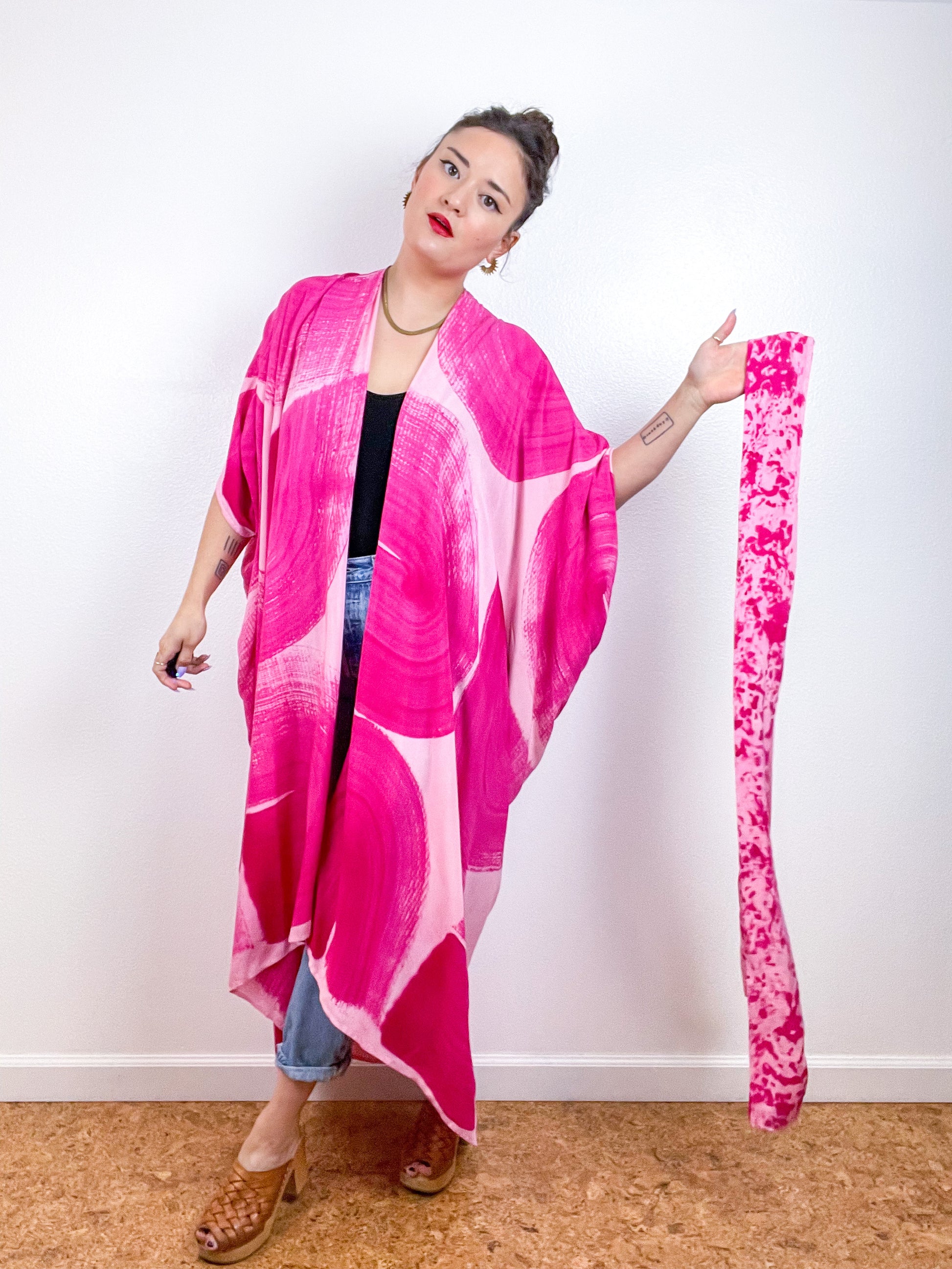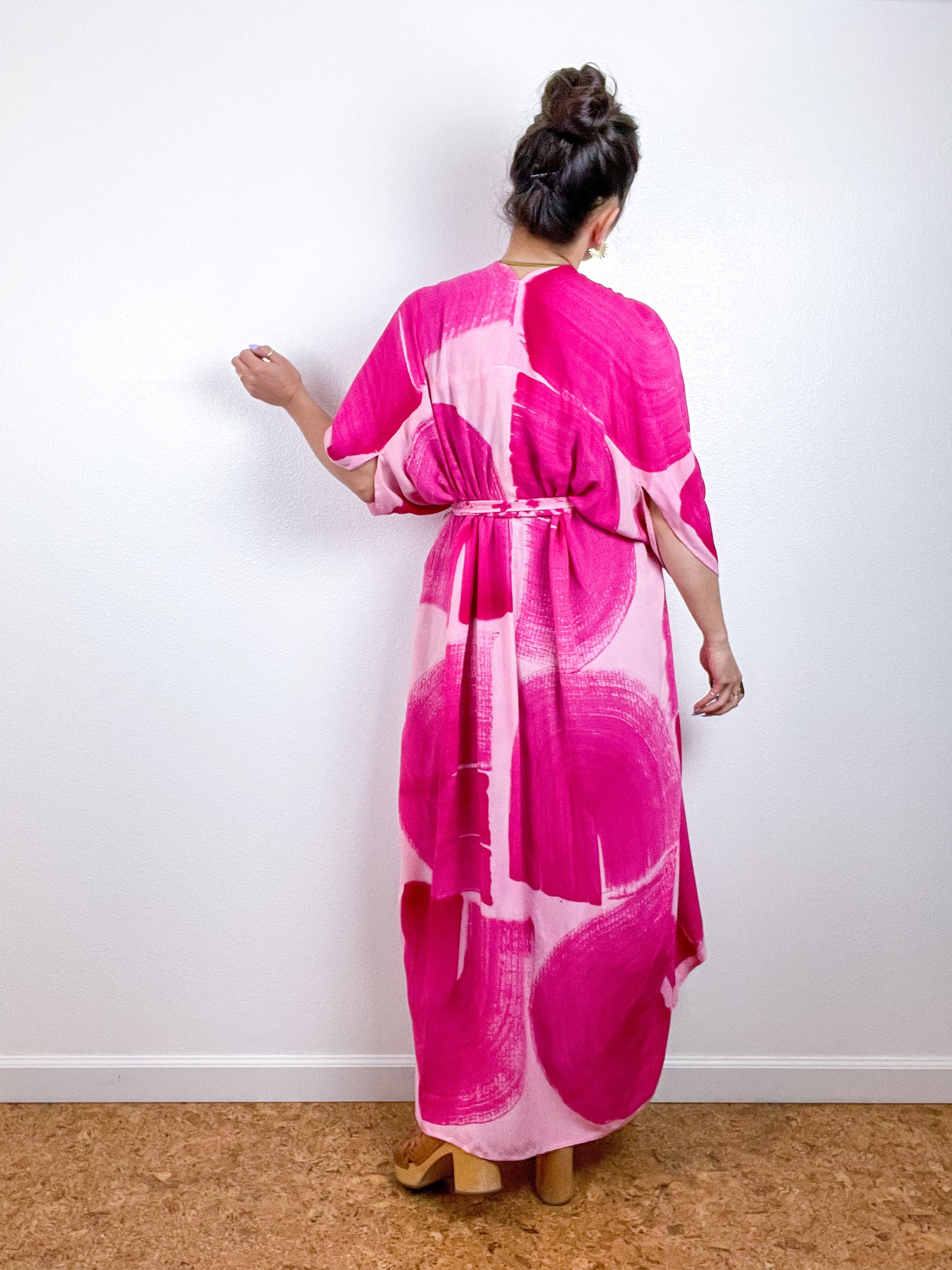 Hand-Dyed High Low Kimono Blush Fuchsia Brushstroke