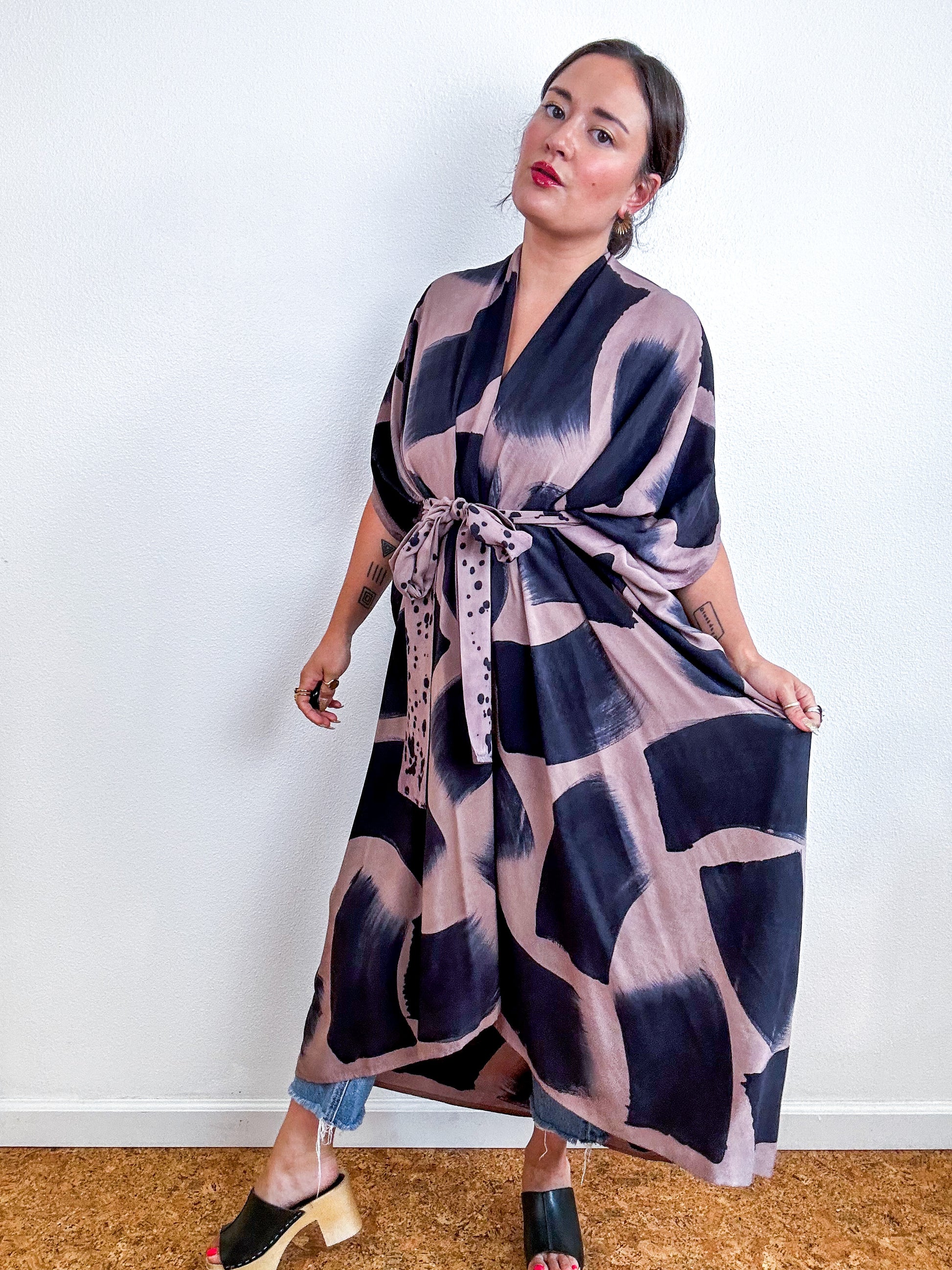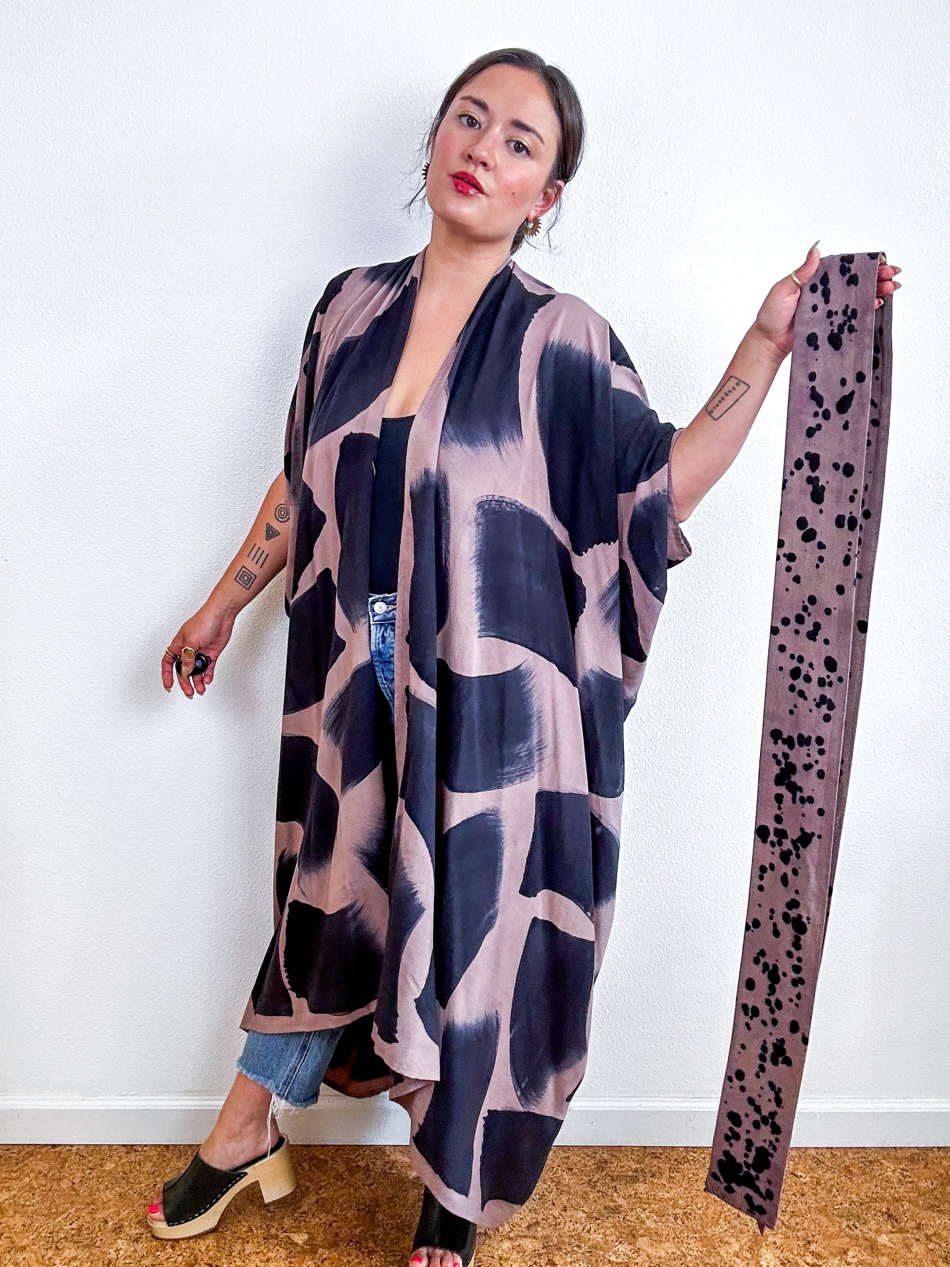 Hand-Dyed High Low Kimono Cocoa Black Brush