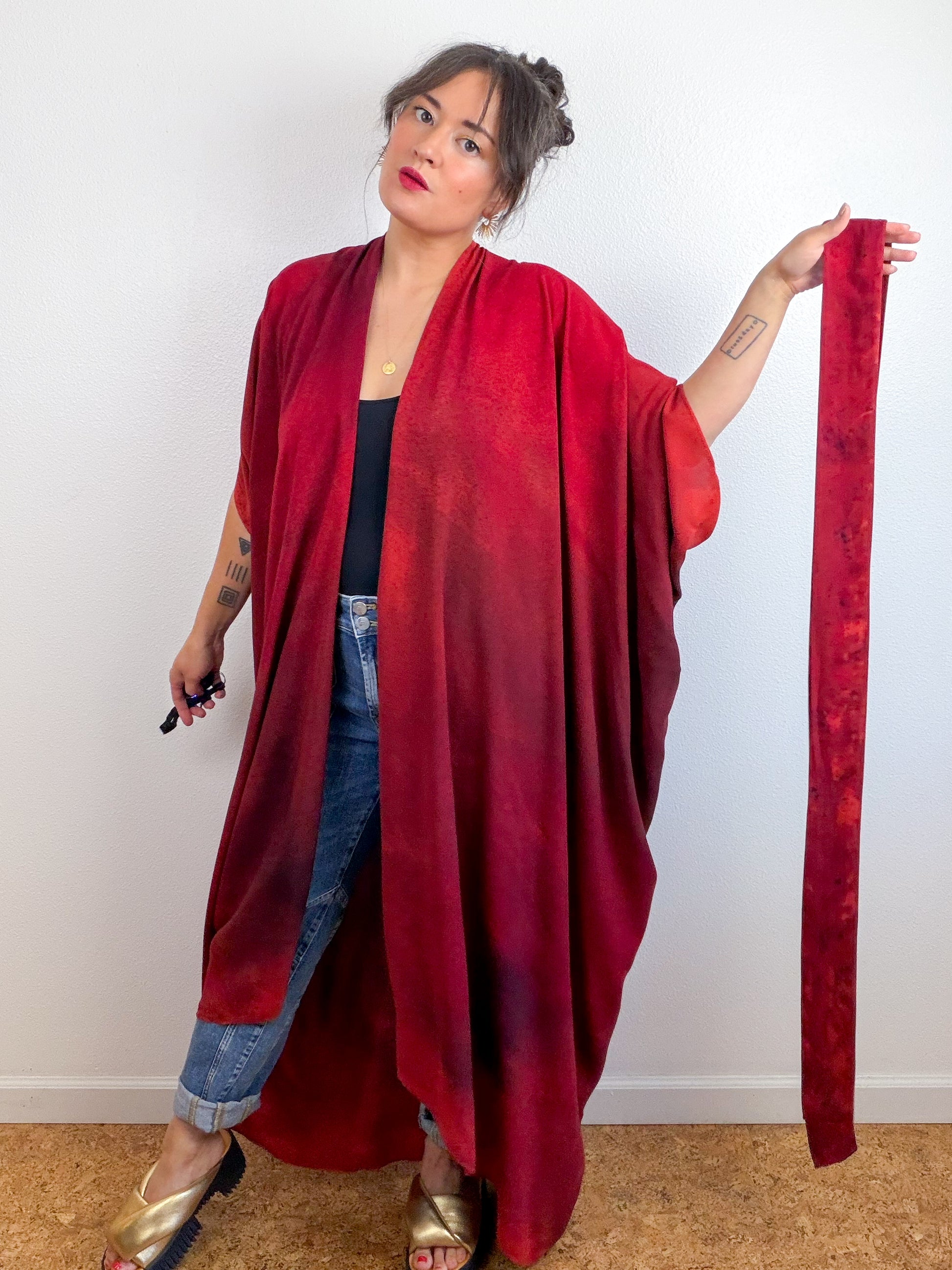 Hand-Dyed High Low Kimono Crimson Fuchsia Maroon Gradient