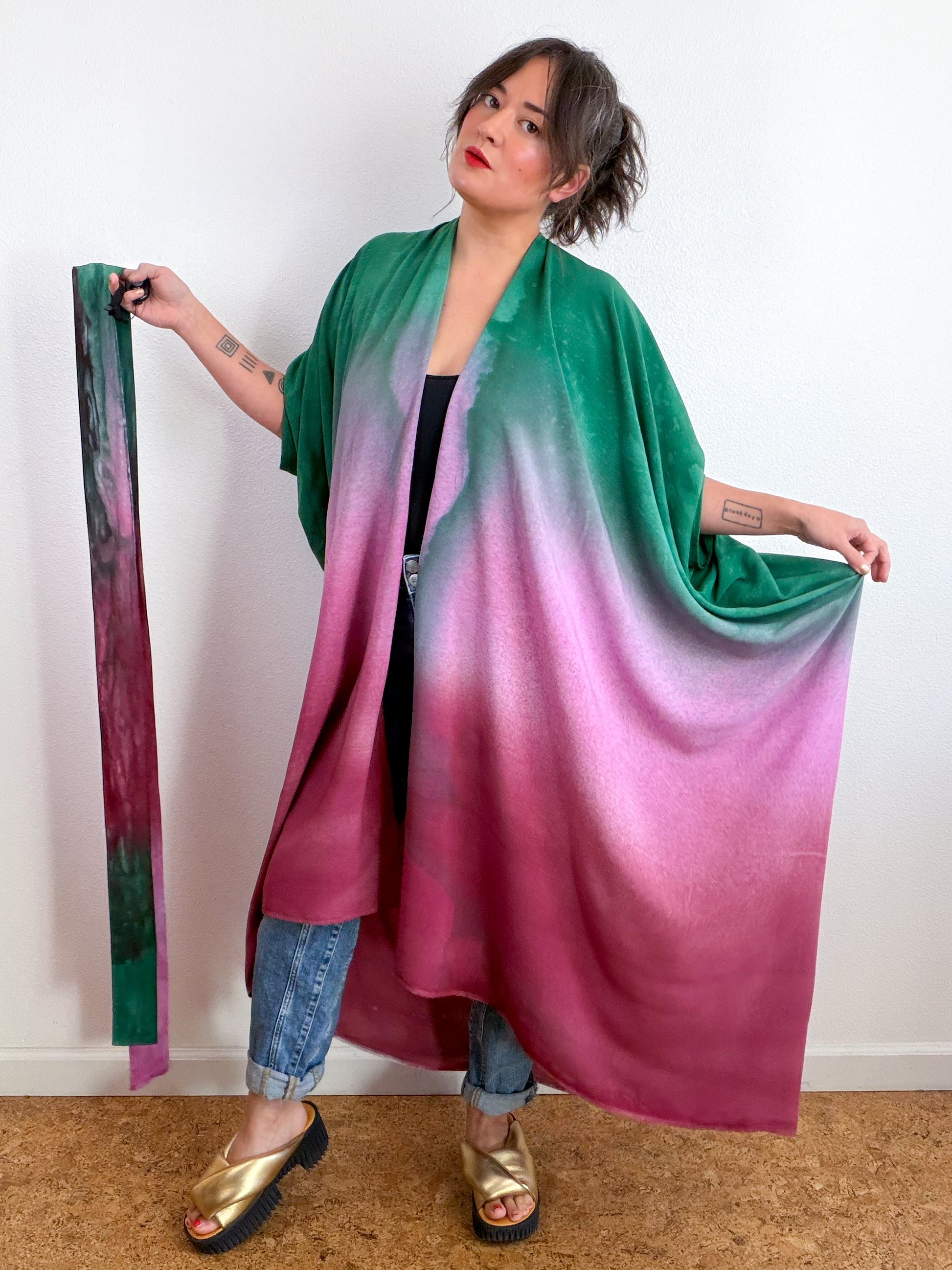 Hand-Dyed High Low Kimono Forest Peony Madrone Gradient