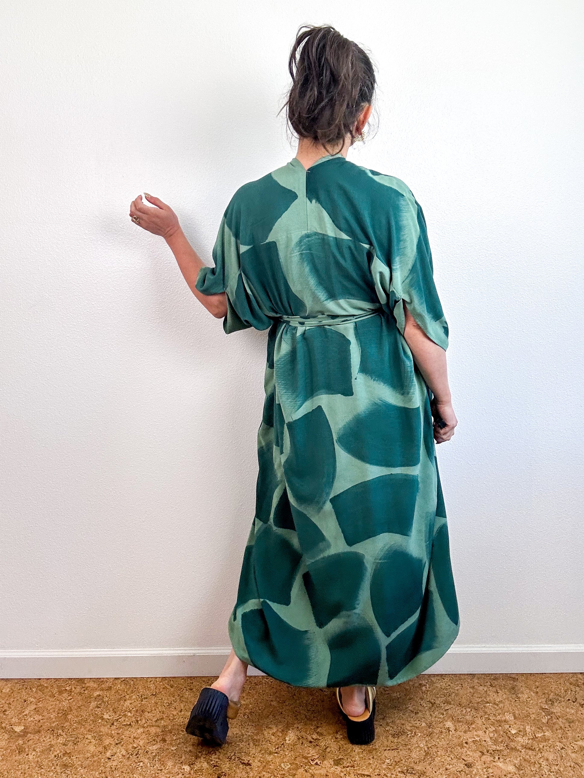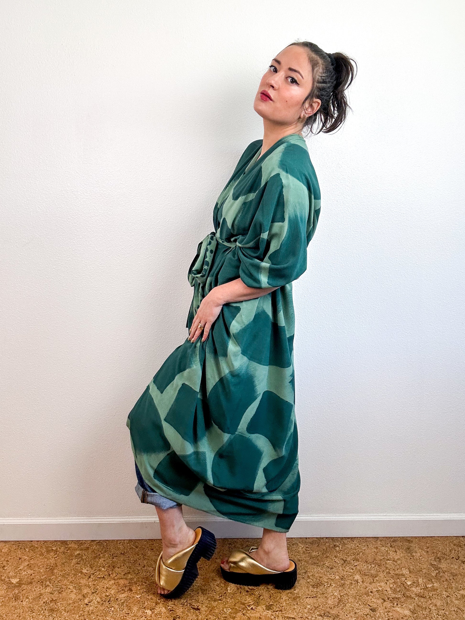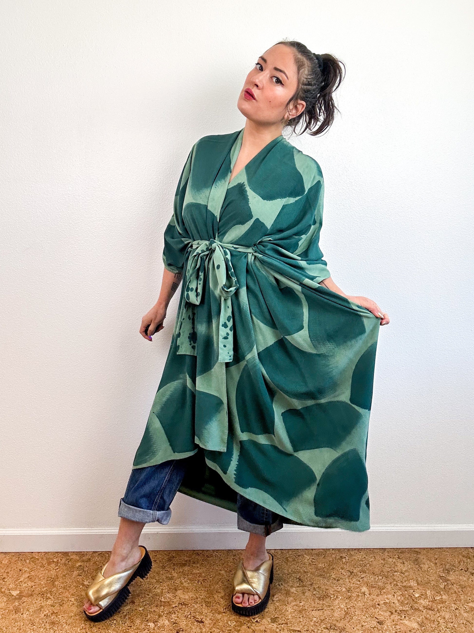 Hand-Dyed High Low Kimono Sage Forest Brush