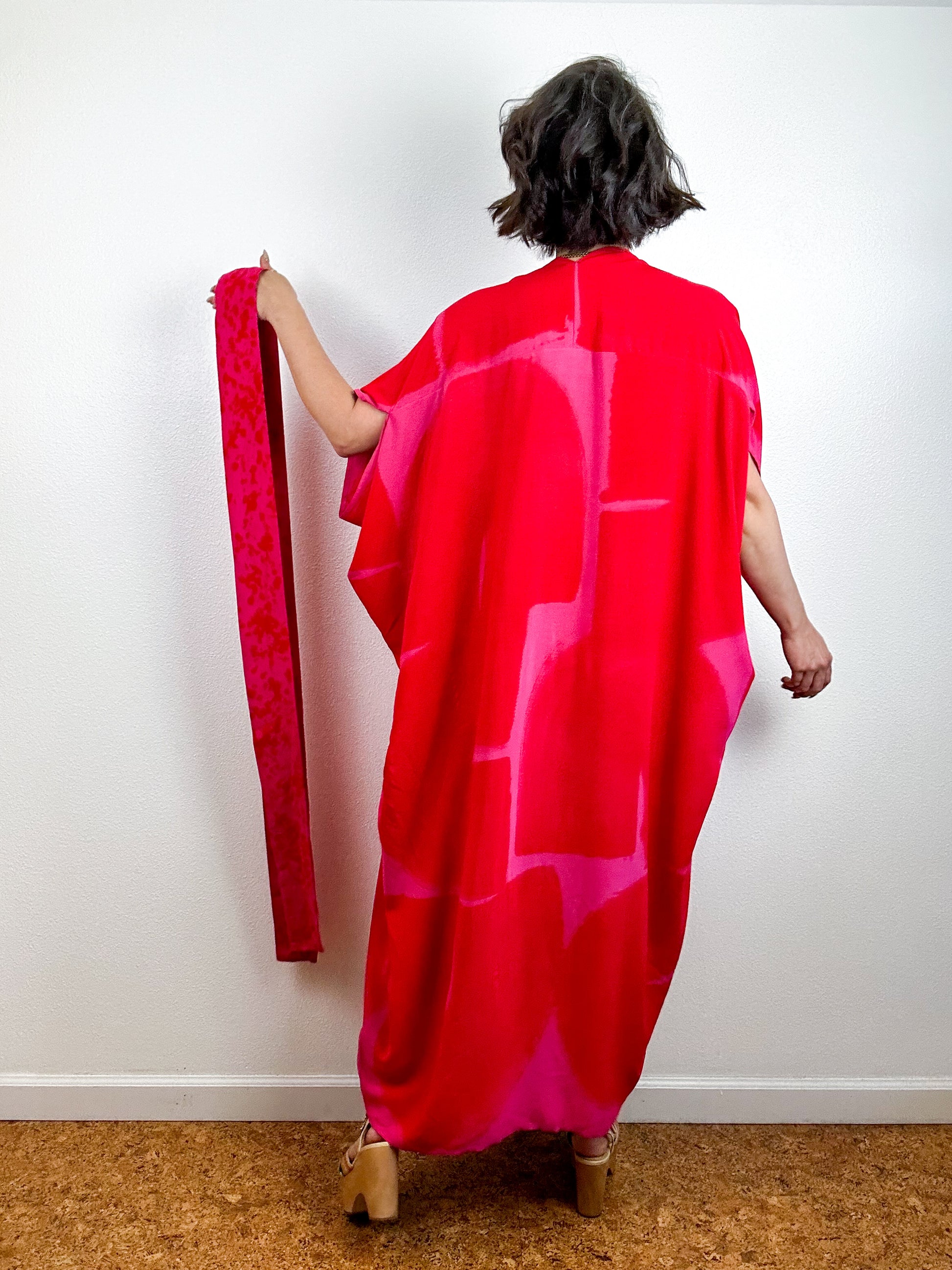 Hand-Dyed High Low Kimono Fushia Red Arc