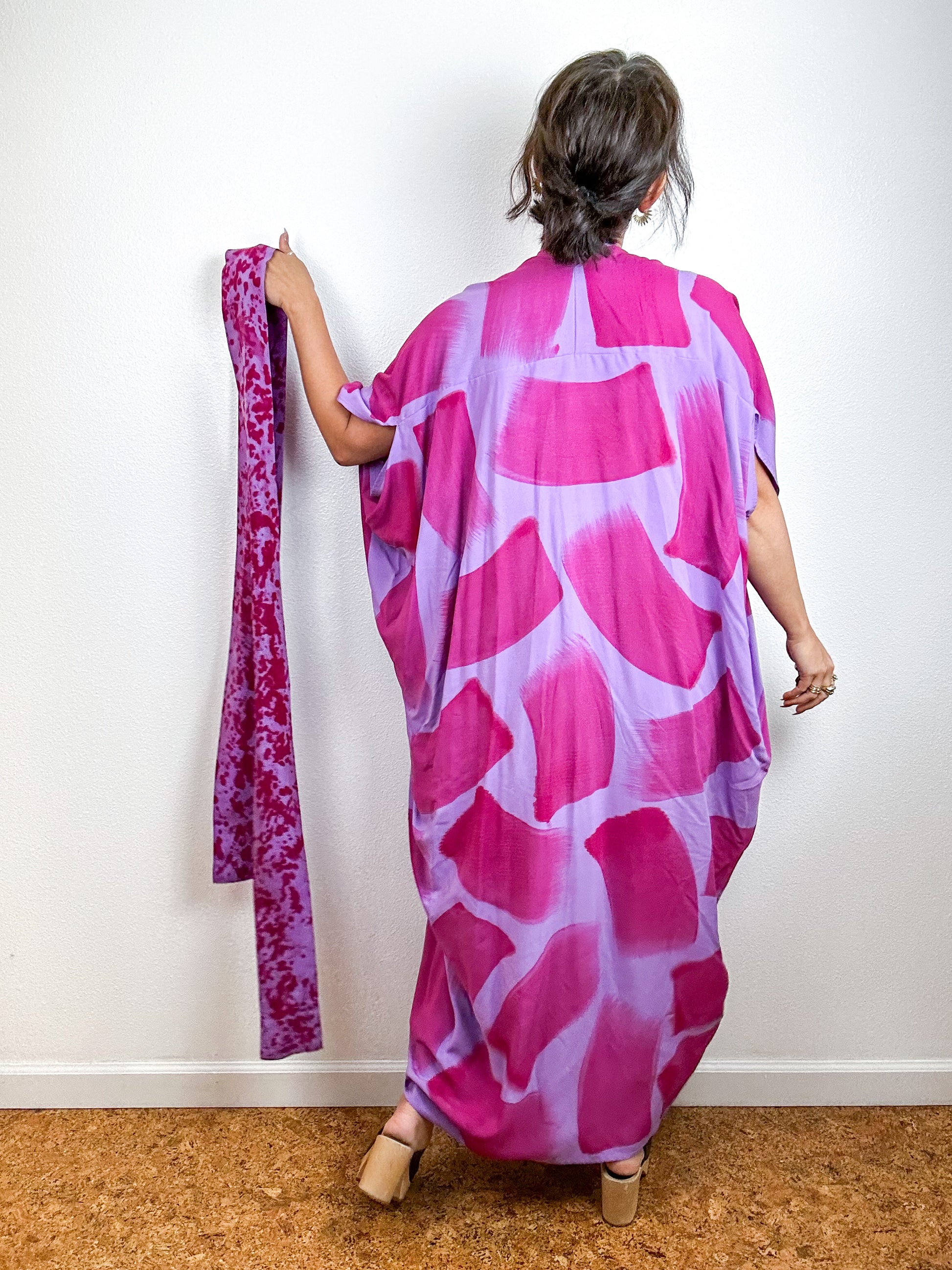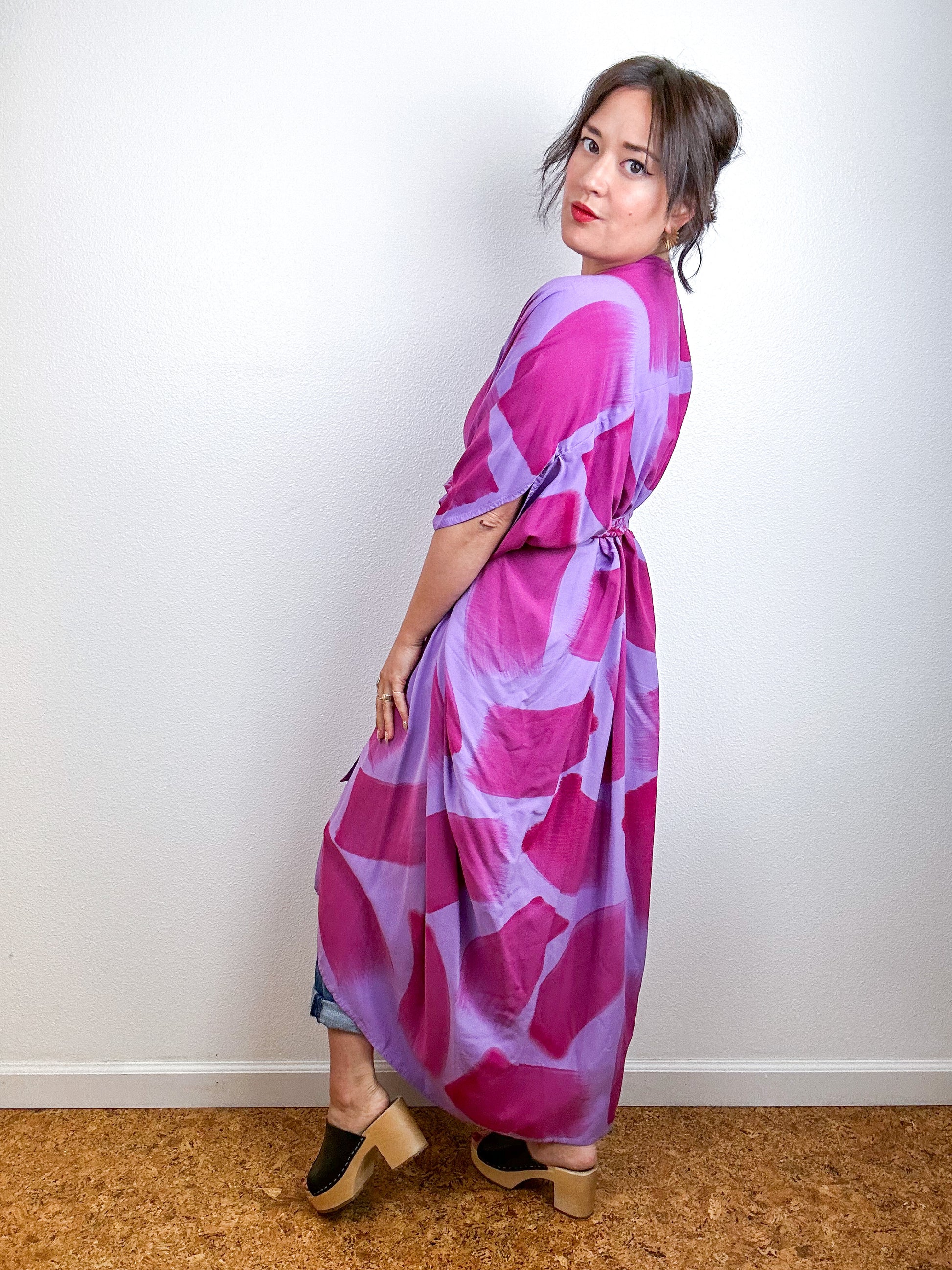 Hand-Dyed High Low Kimono Lilac Amethyst Brush