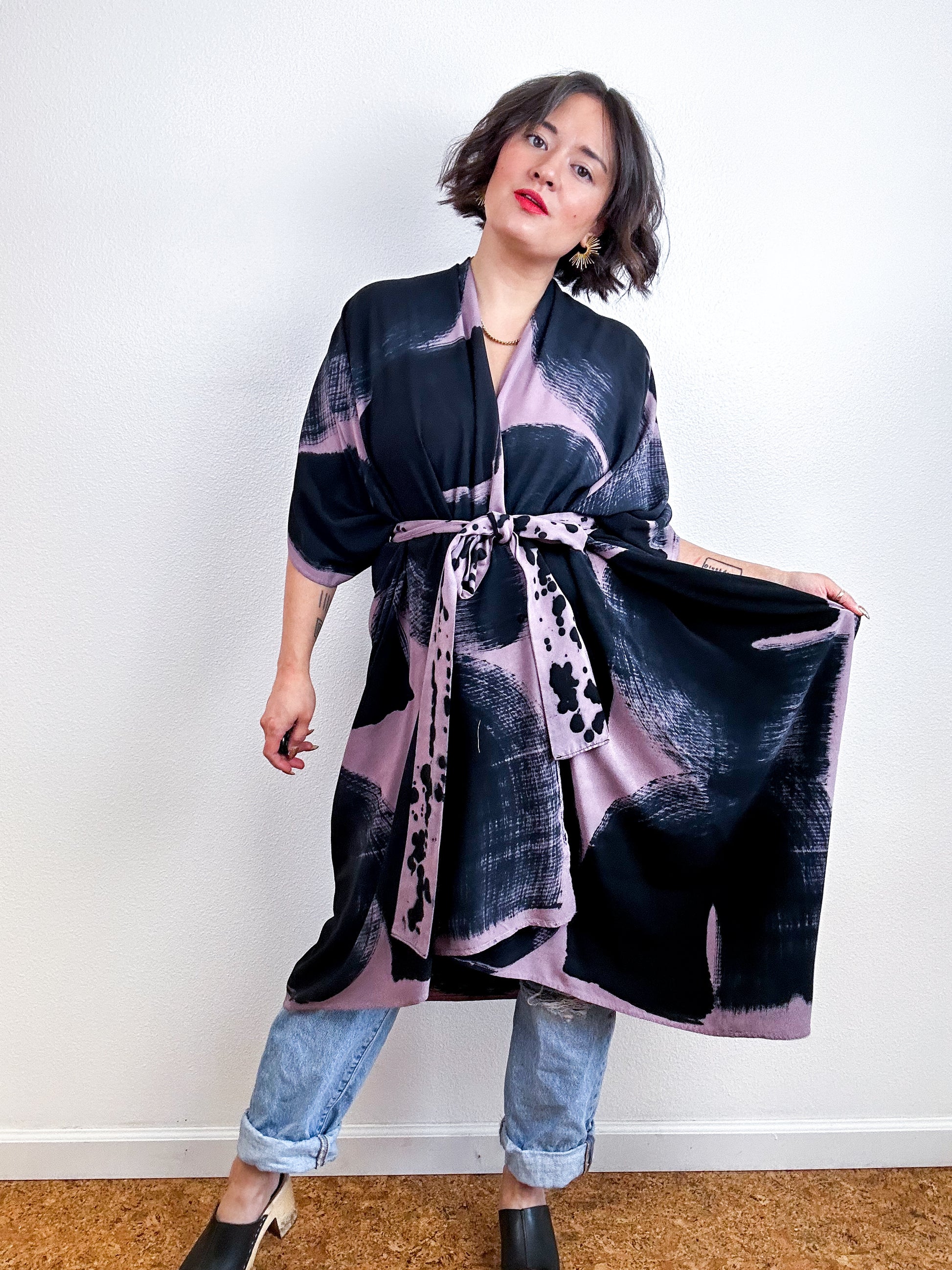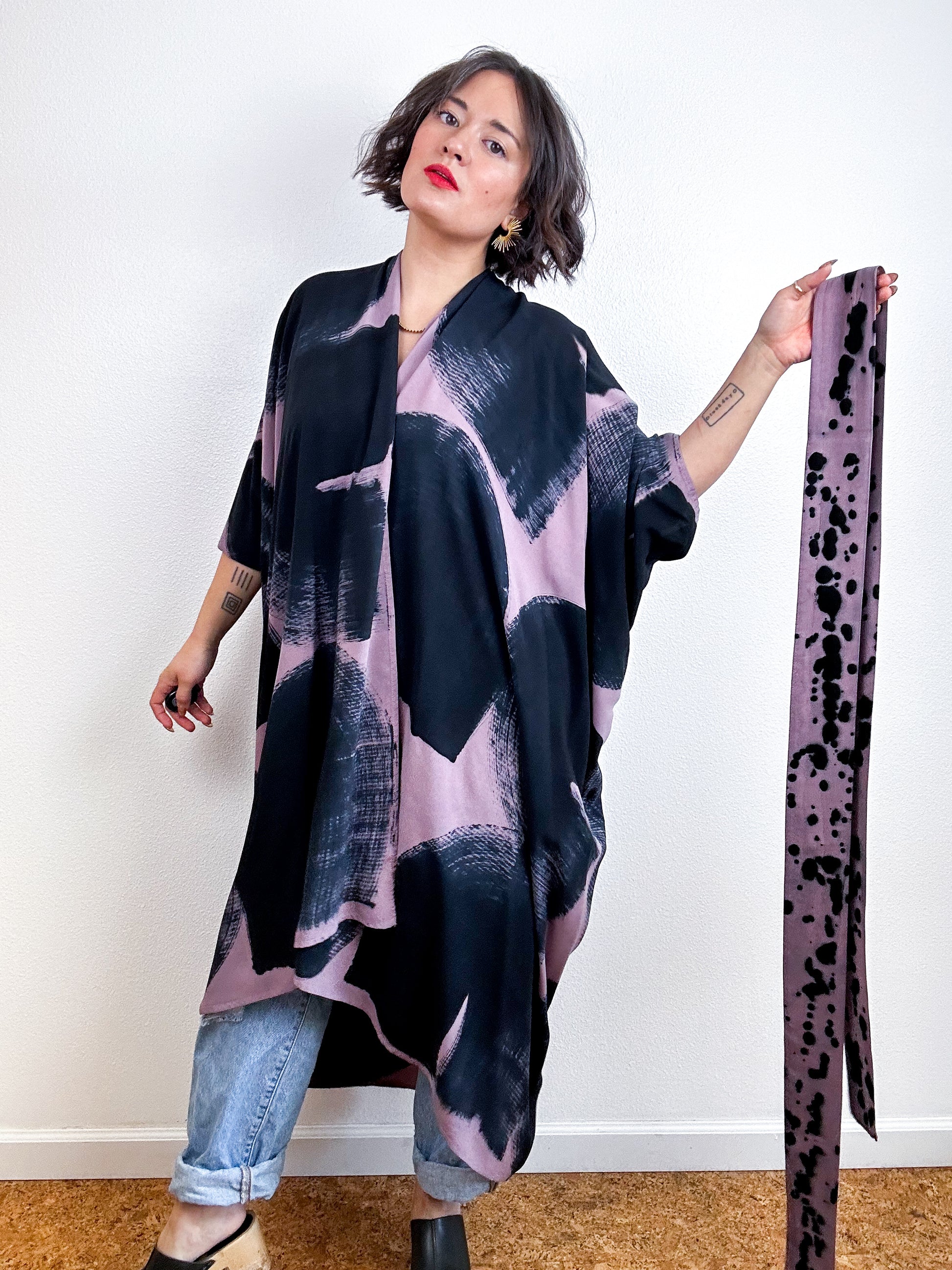 Hand-Dyed High Low Kimono Mauve Black Arc