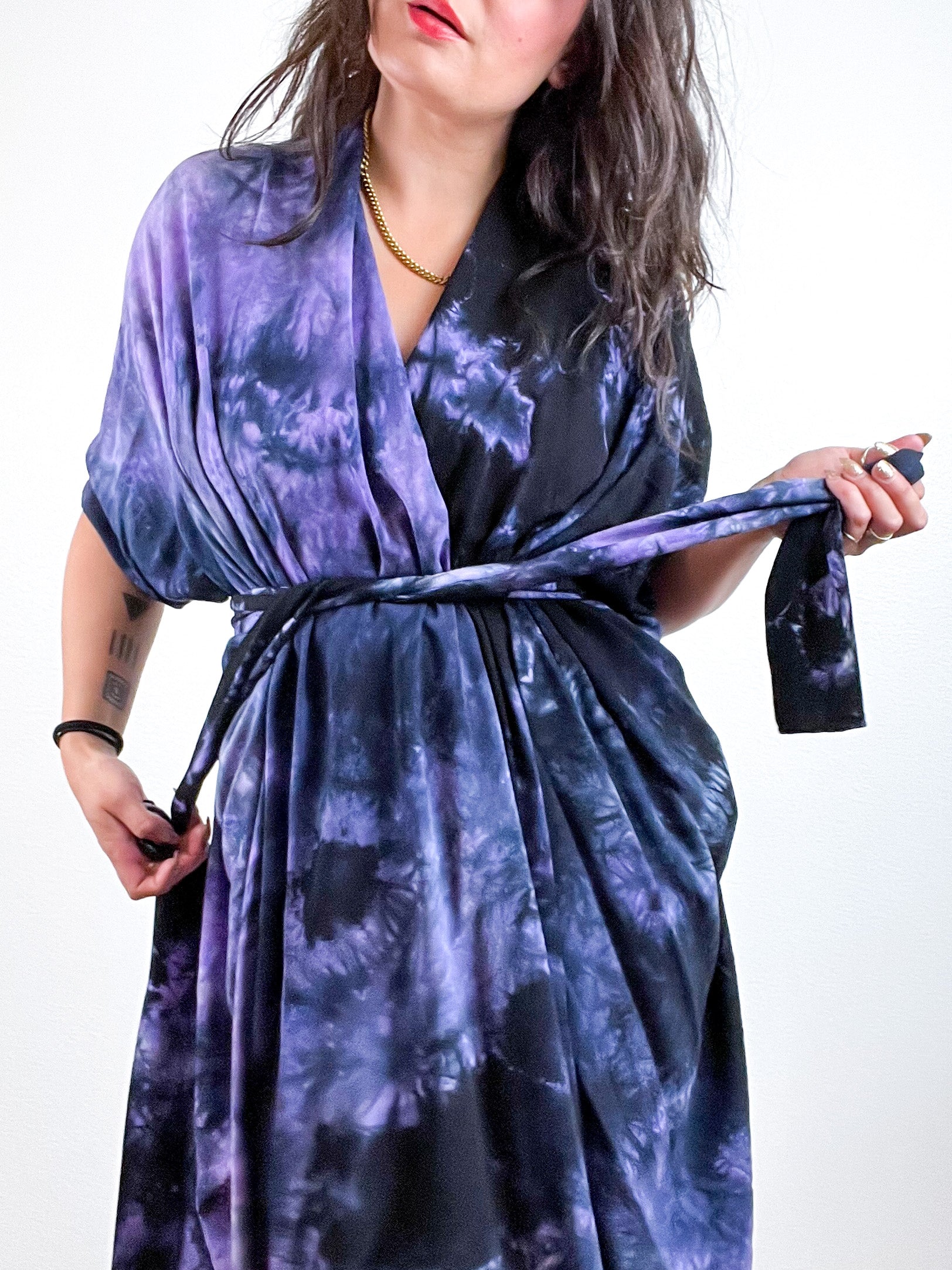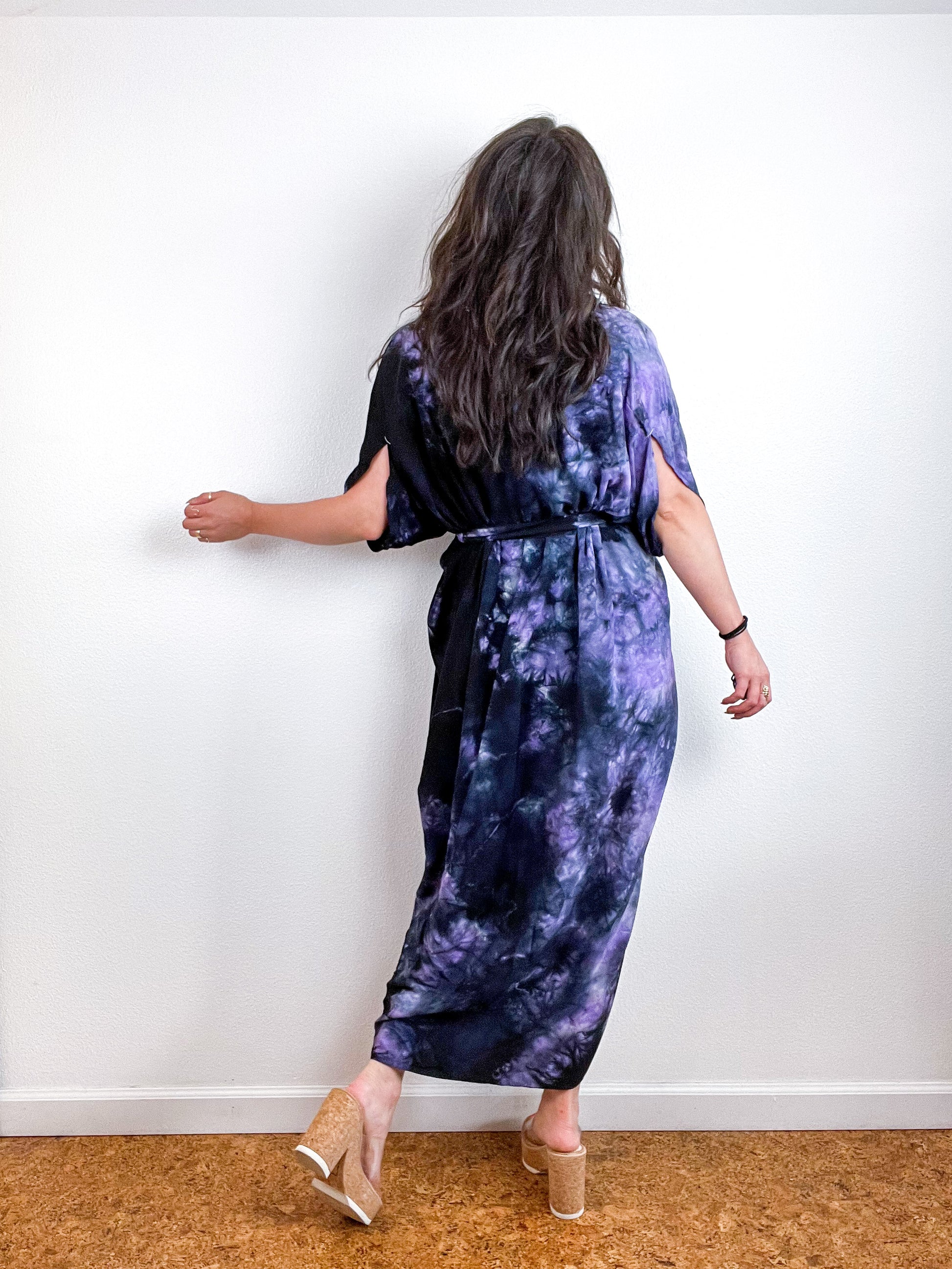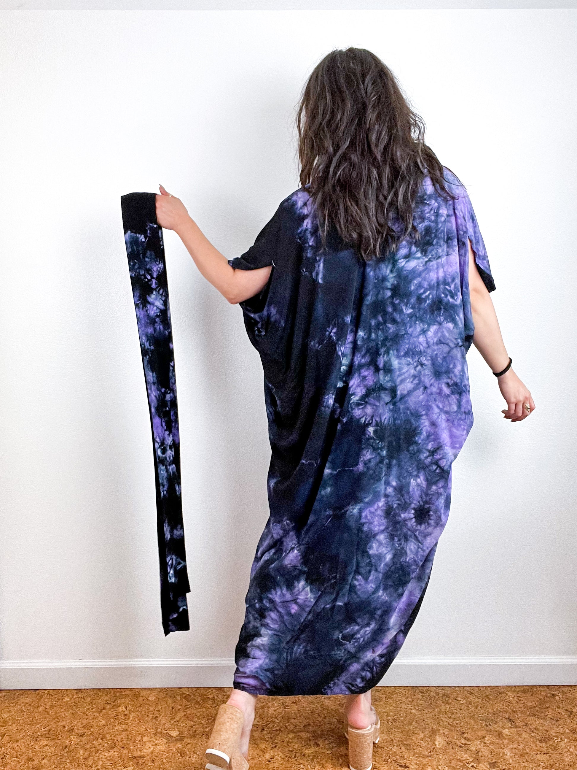Hand-Dyed High Low Kimono Orchid Black Tie