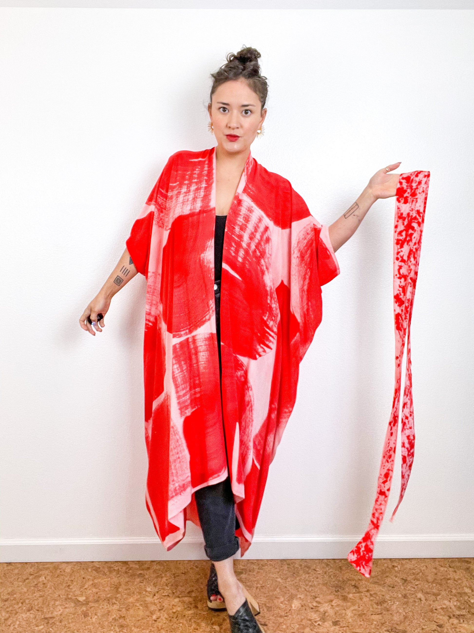 Hand-Dyed High Low Kimono Blush Scarlet Brushstroke