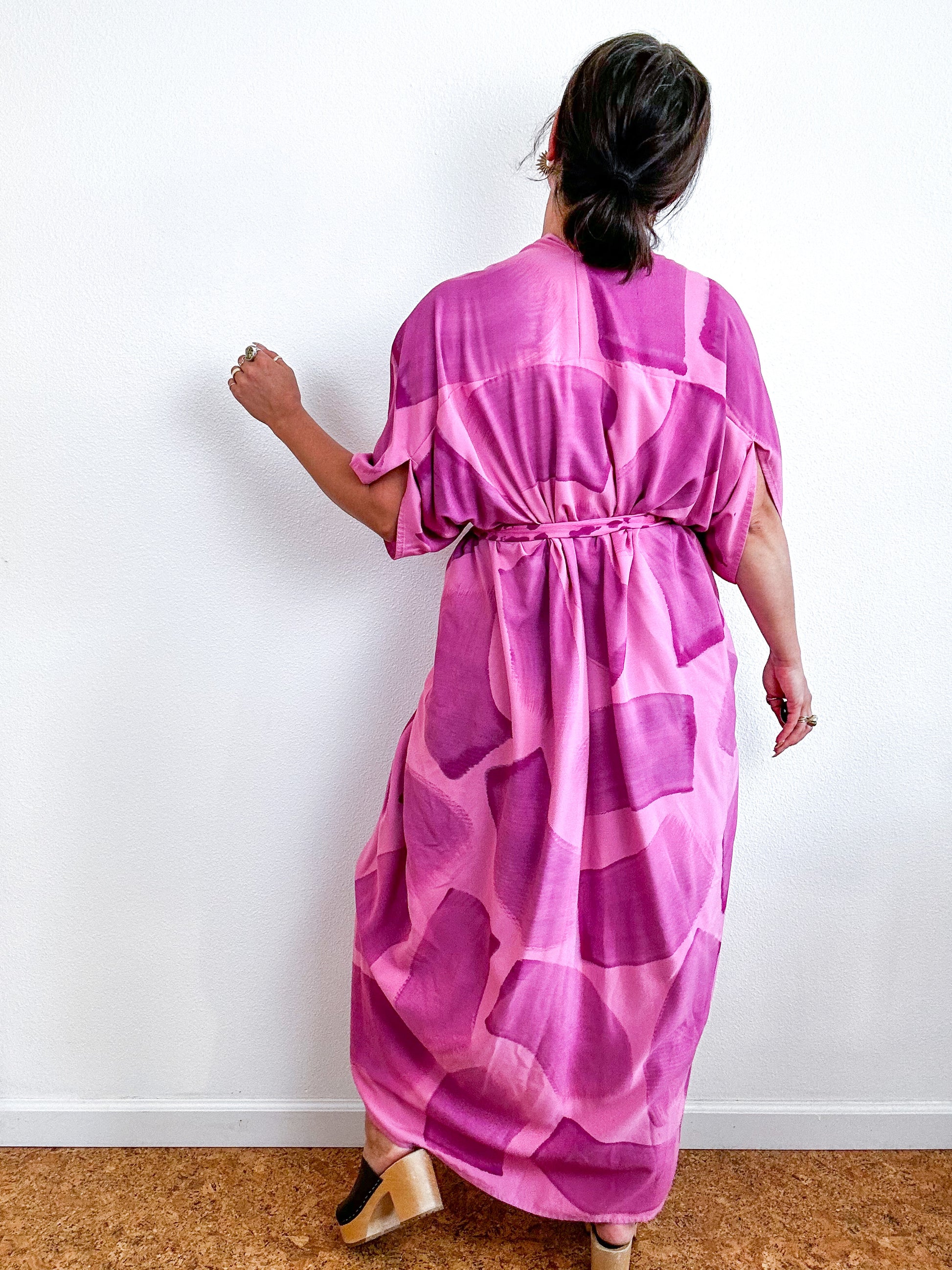 Hand-Dyed High Low Kimono Pink Amethyst Brush