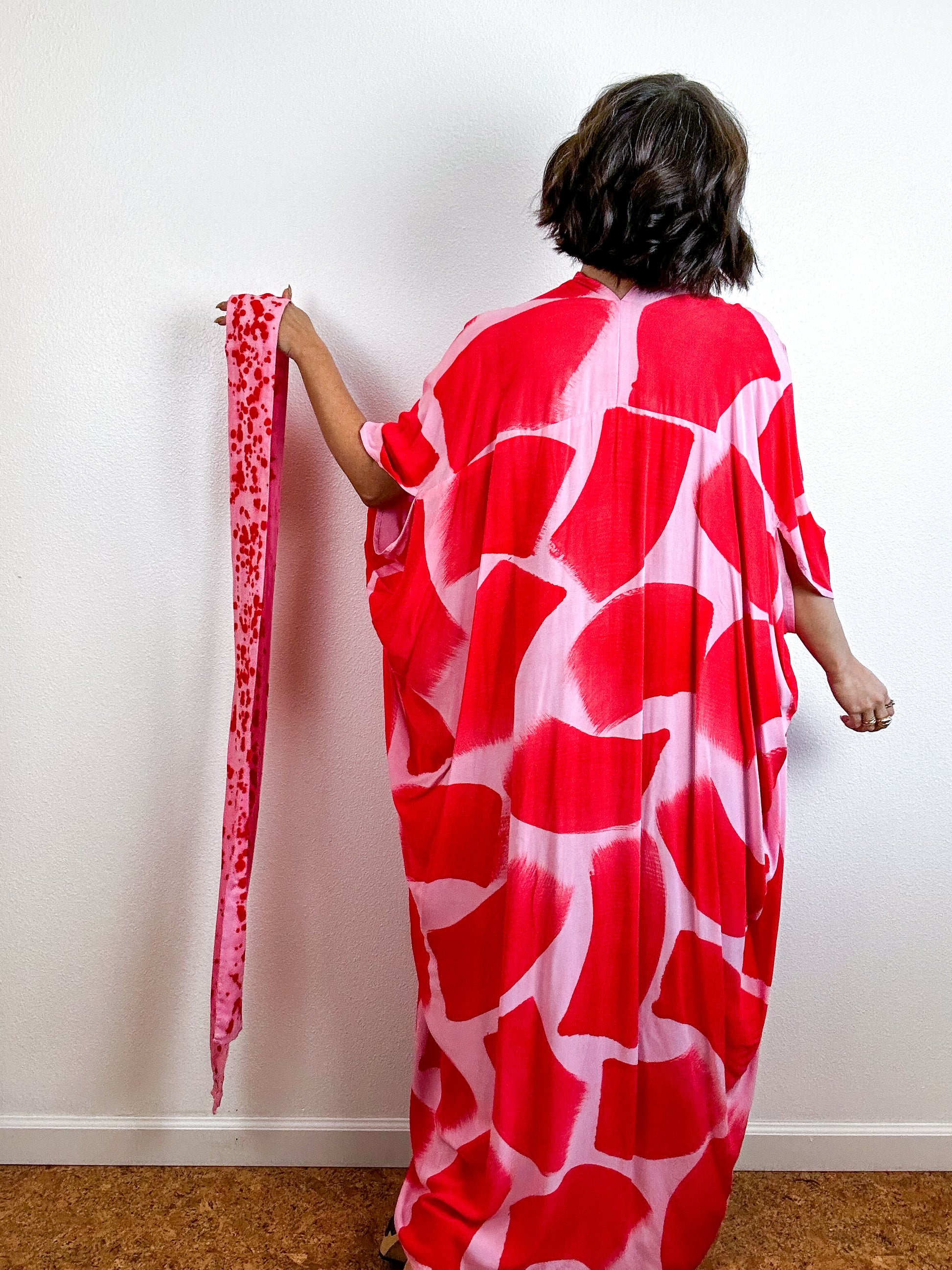 Hand-Dyed High Low Kimono Pink Scarlet Brush