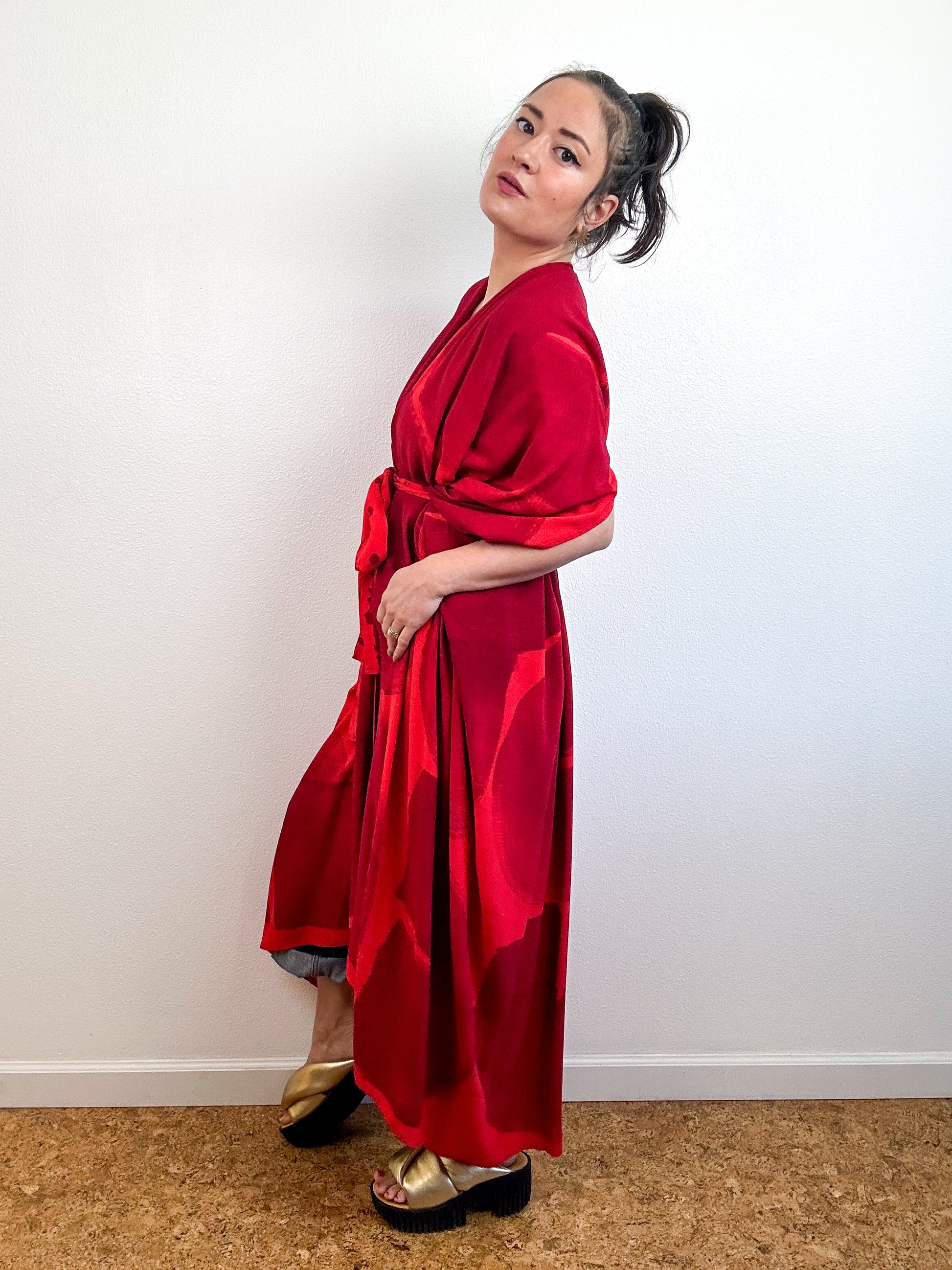 Hand-Dyed High Low Kimono Scarlet Maroon Arc
