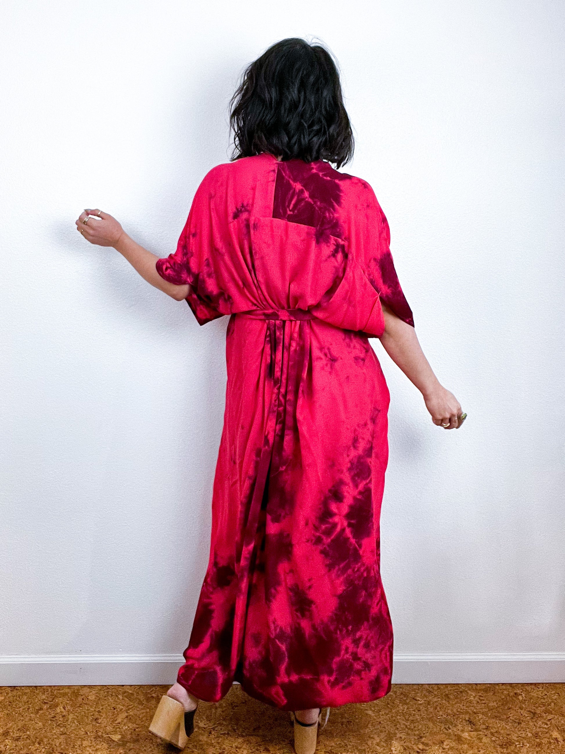 Hand-Dyed High Low Kimono Scarlet Maroon Tie