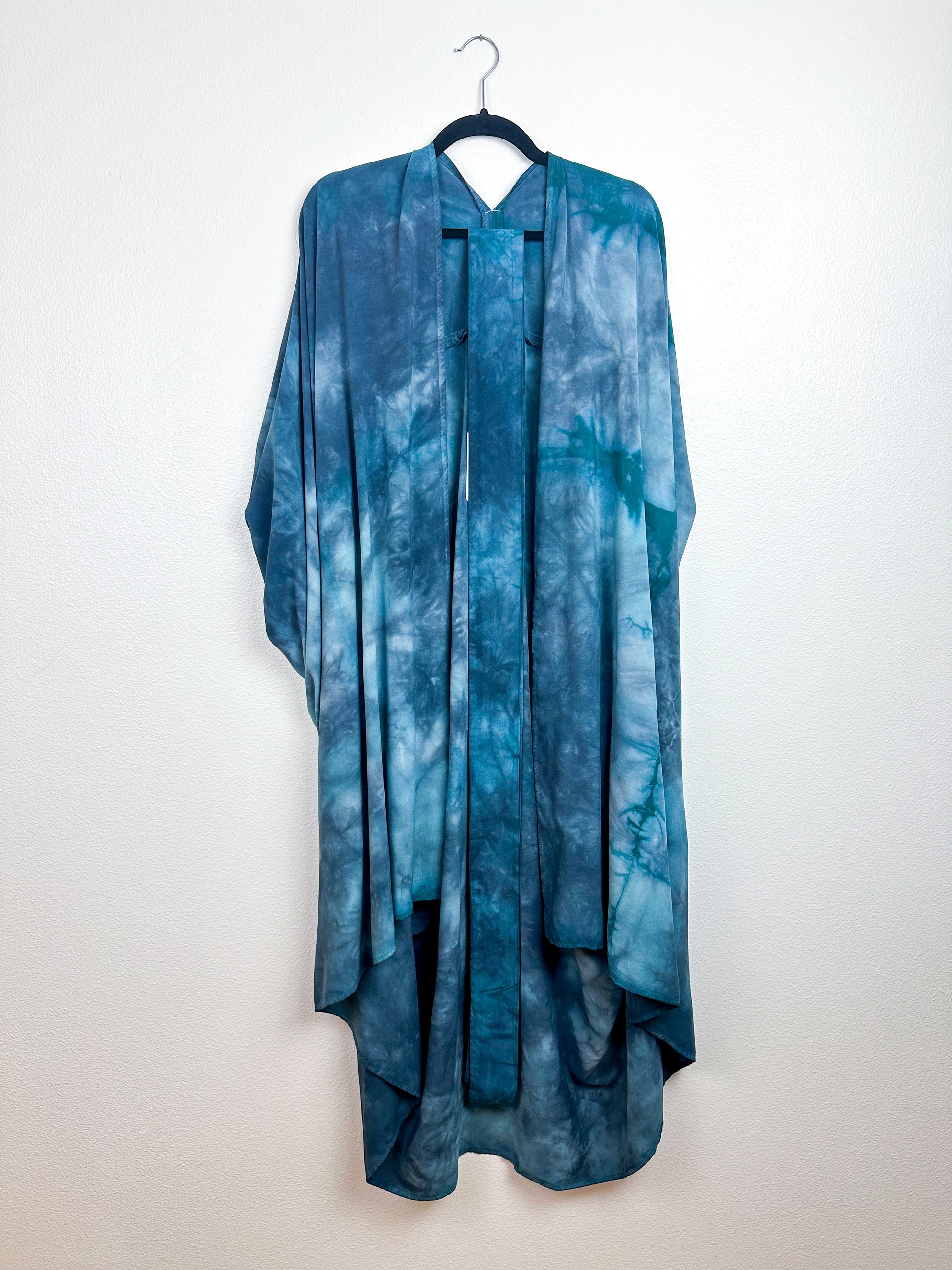 Hand-Dyed High Low Kimono Teal Grey Watercolor