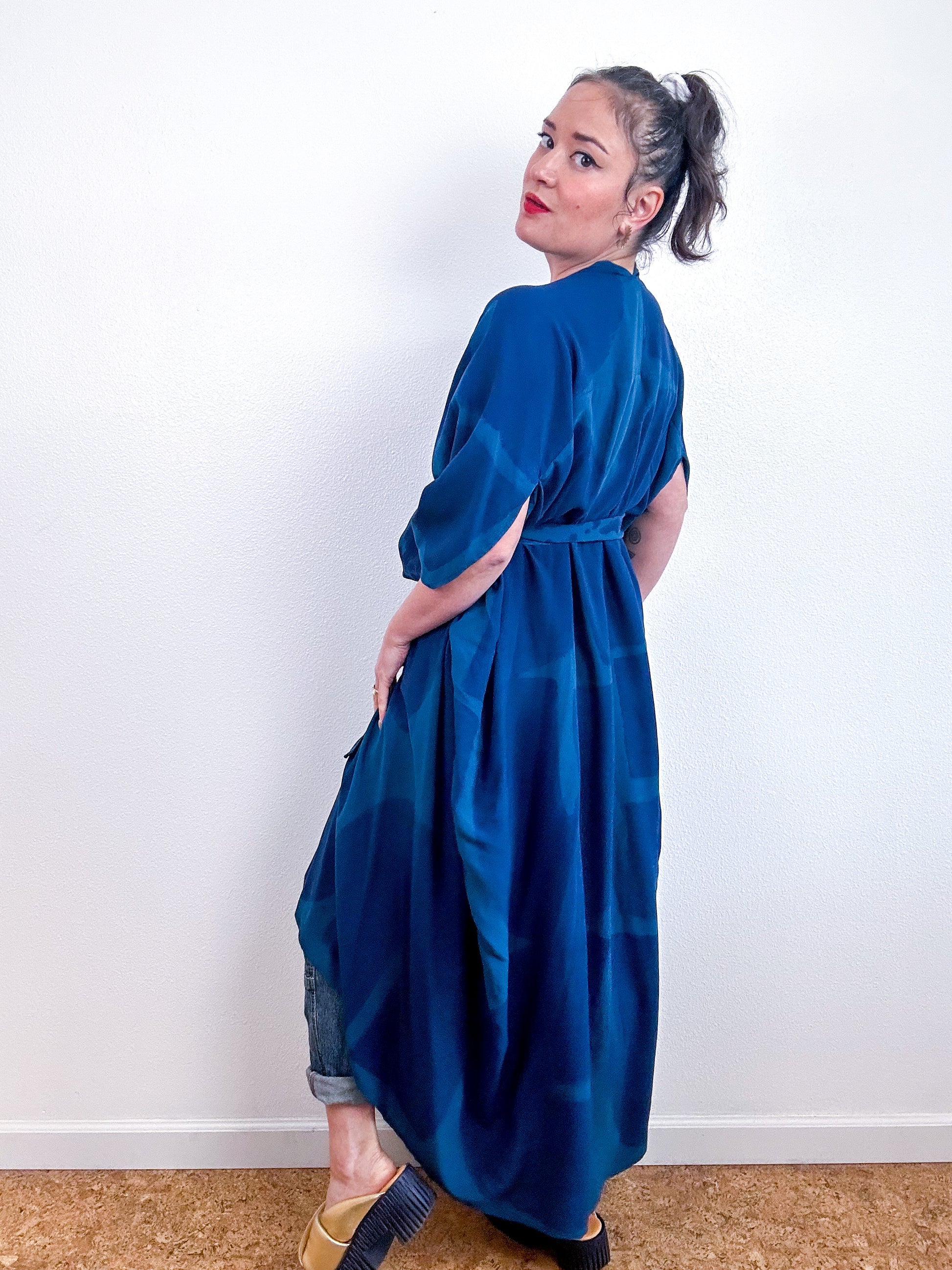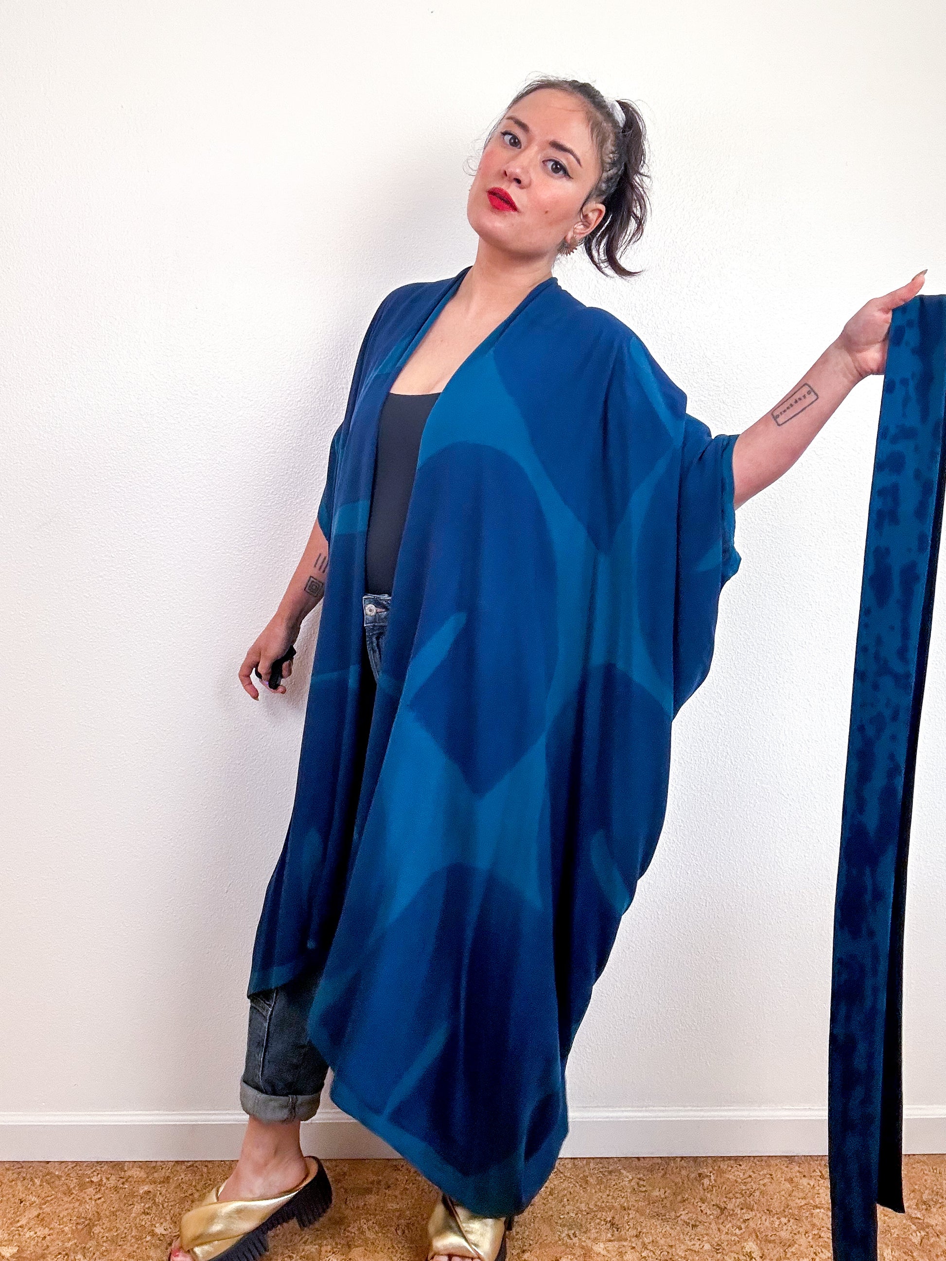 Hand-Dyed High Low Kimono Teal Indigo Arc