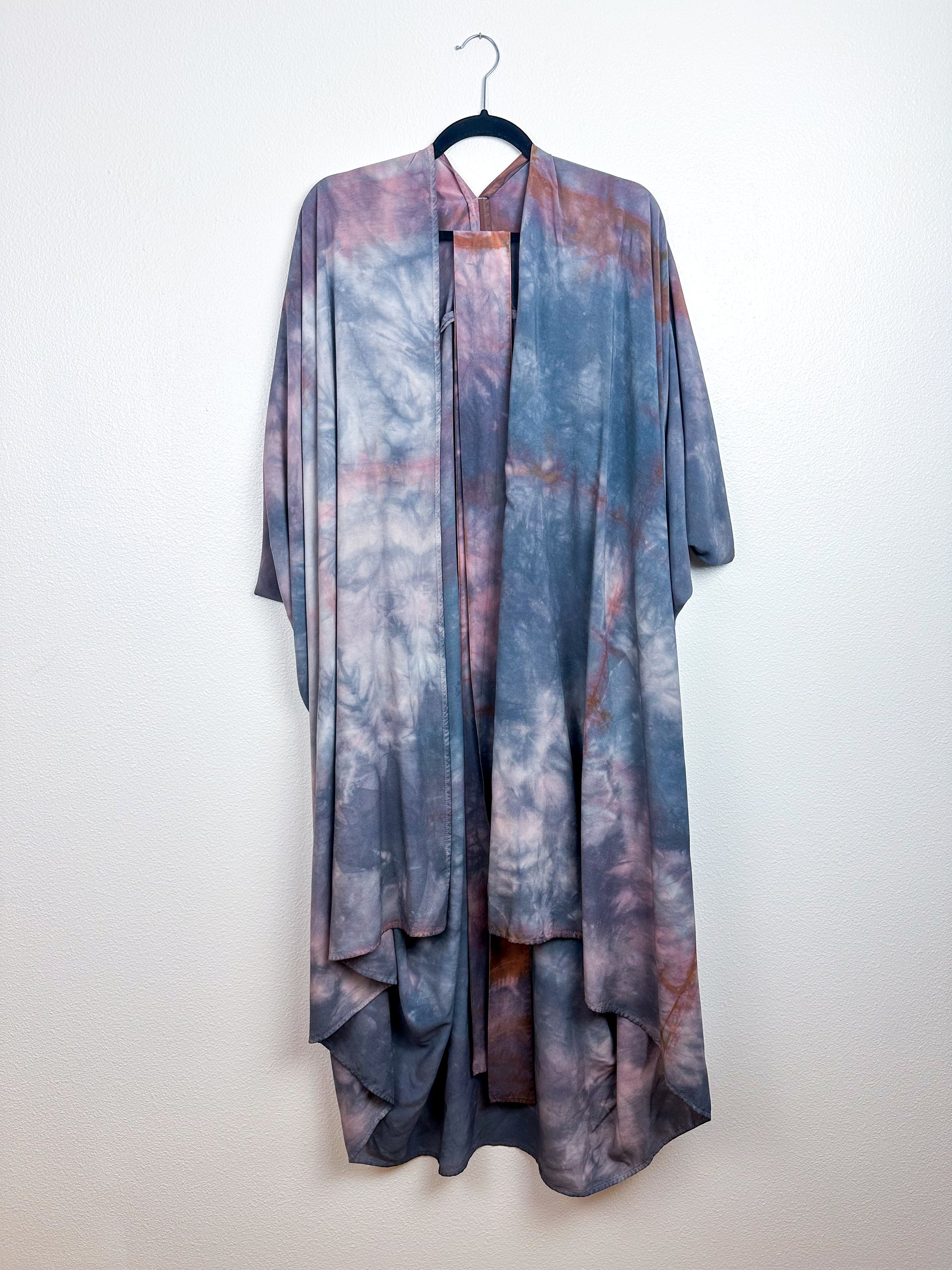 Hand-Dyed High Low Kimono Terracotta Grey Watercolor