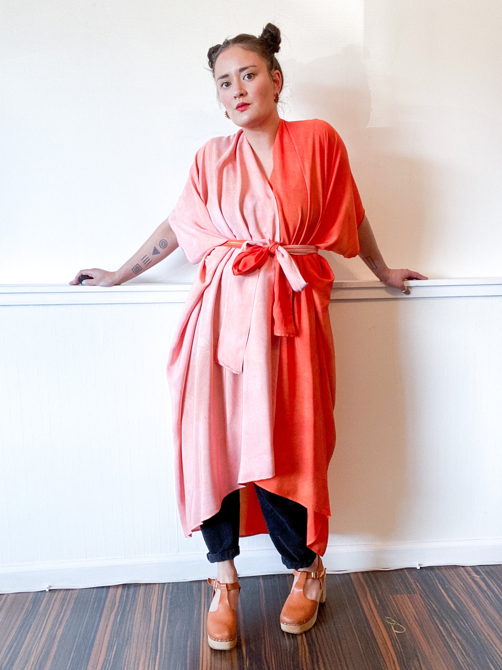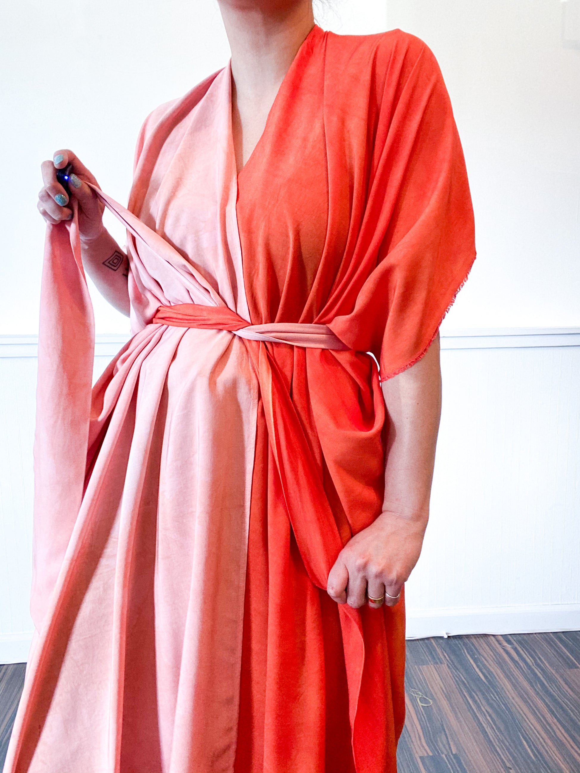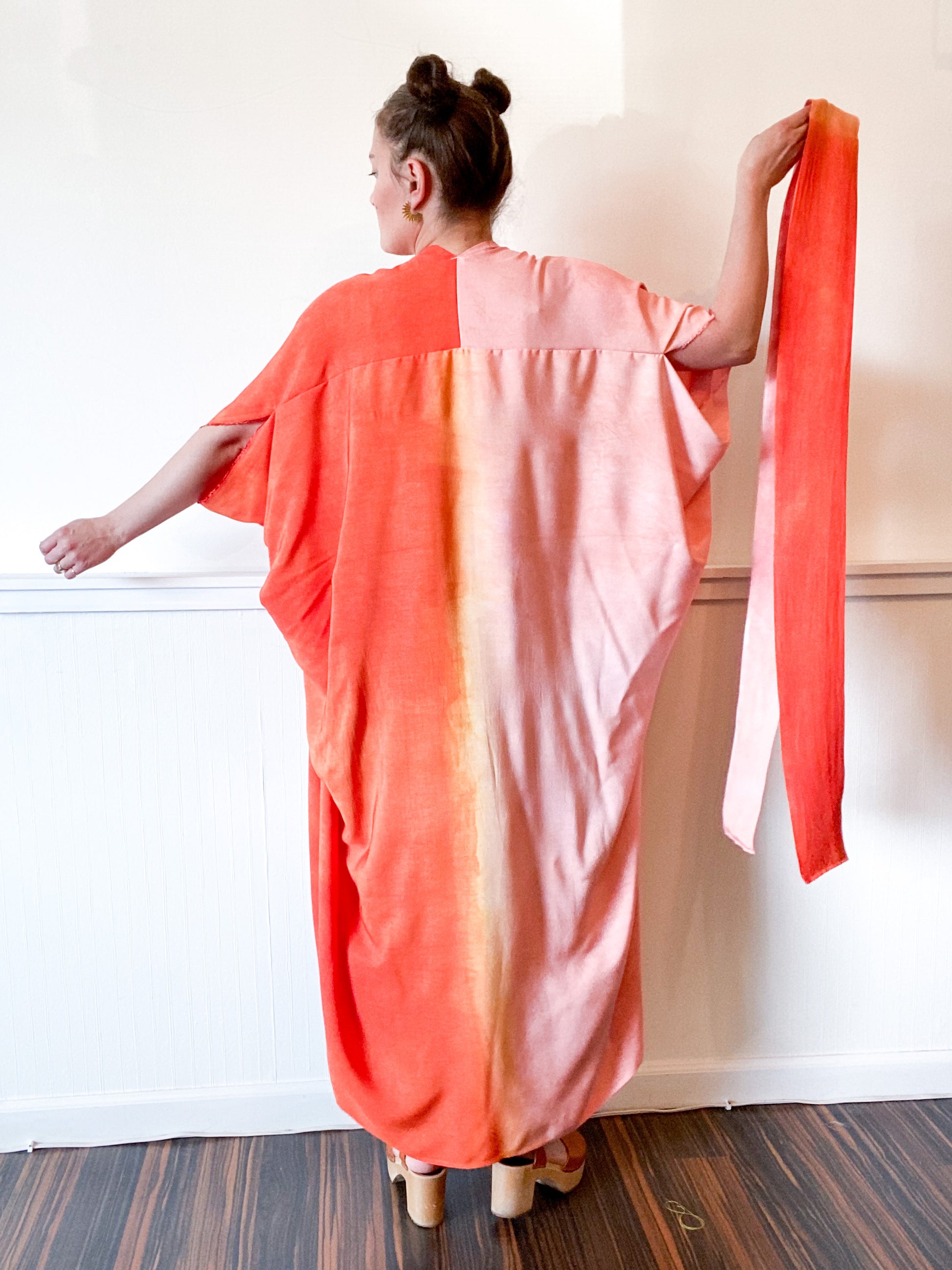 Hand-Dyed High Low Kimono Two Tone Powder Pink Tangerine