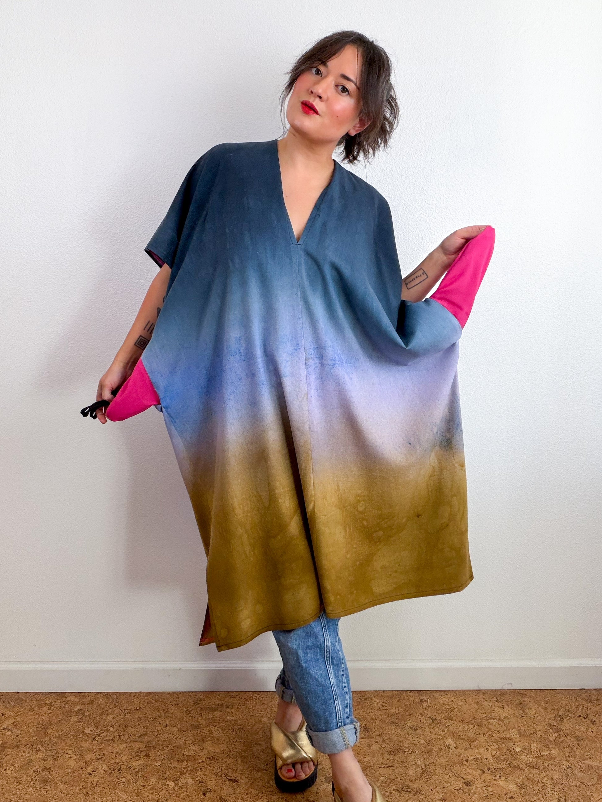 Hand-Dyed Linen Blend Caftan Dress Midi Length Raven Wisteria Bronze Gradient