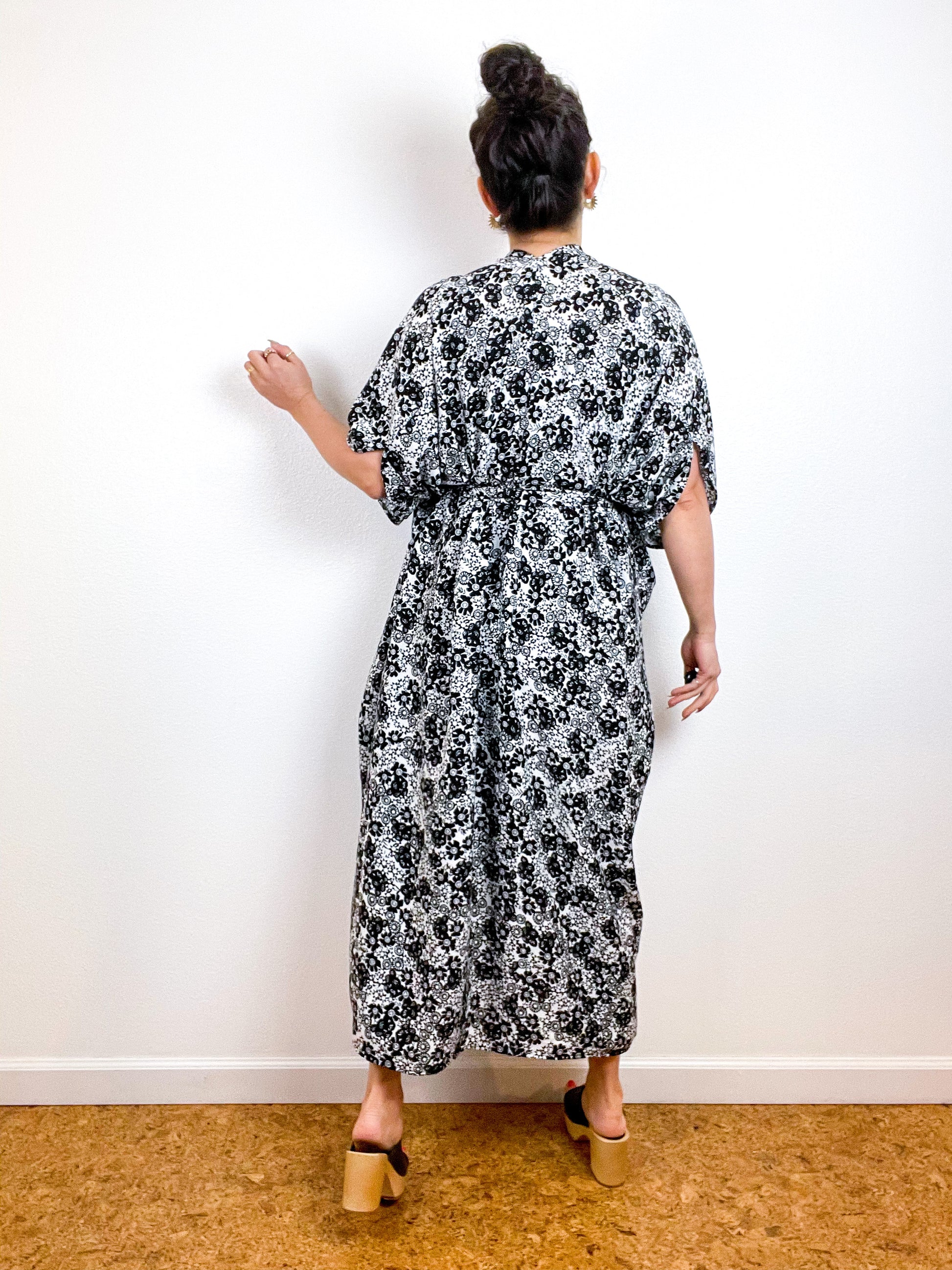 High Low Kimono Black White Mini Floral Rayon Crepe