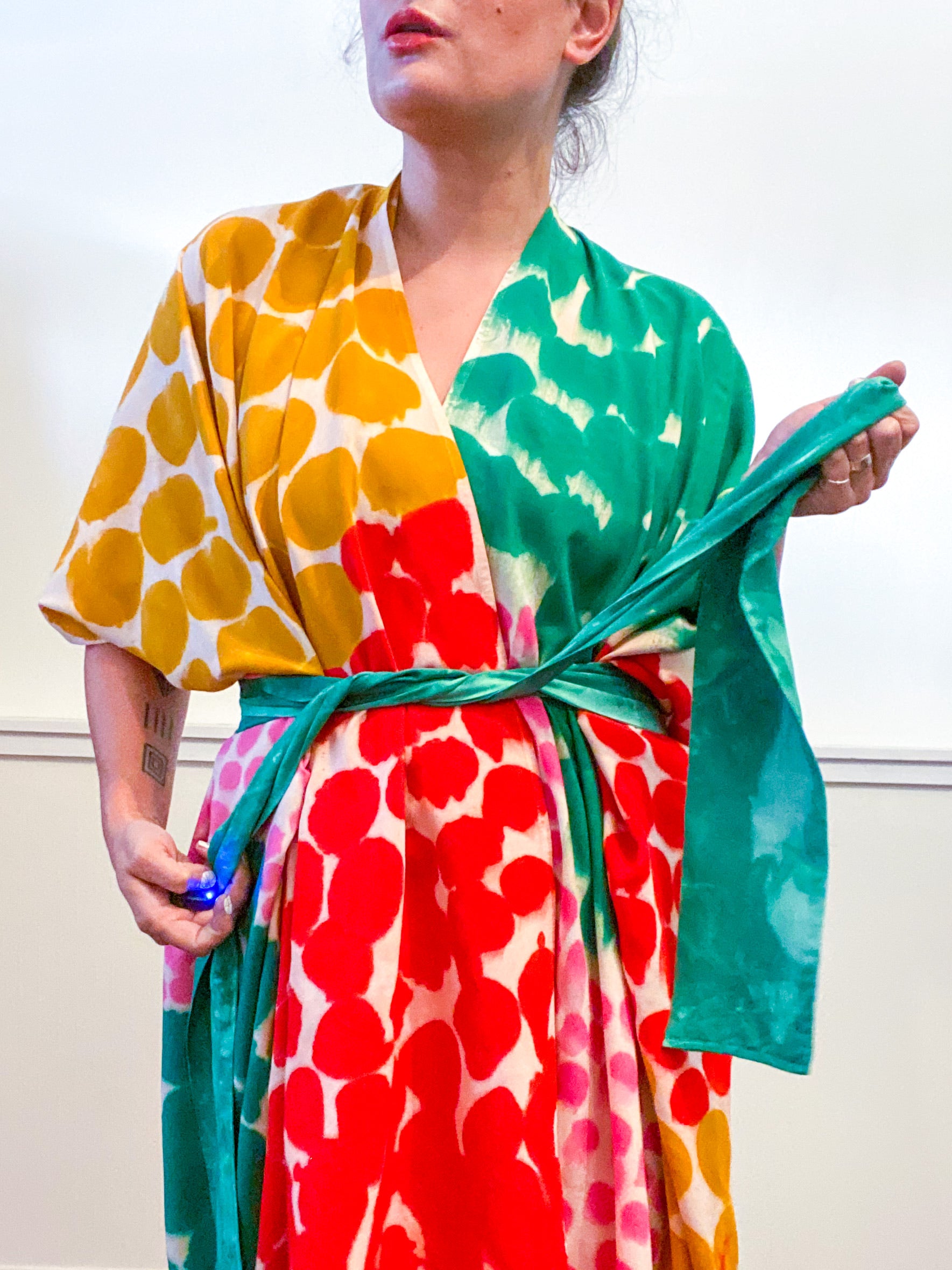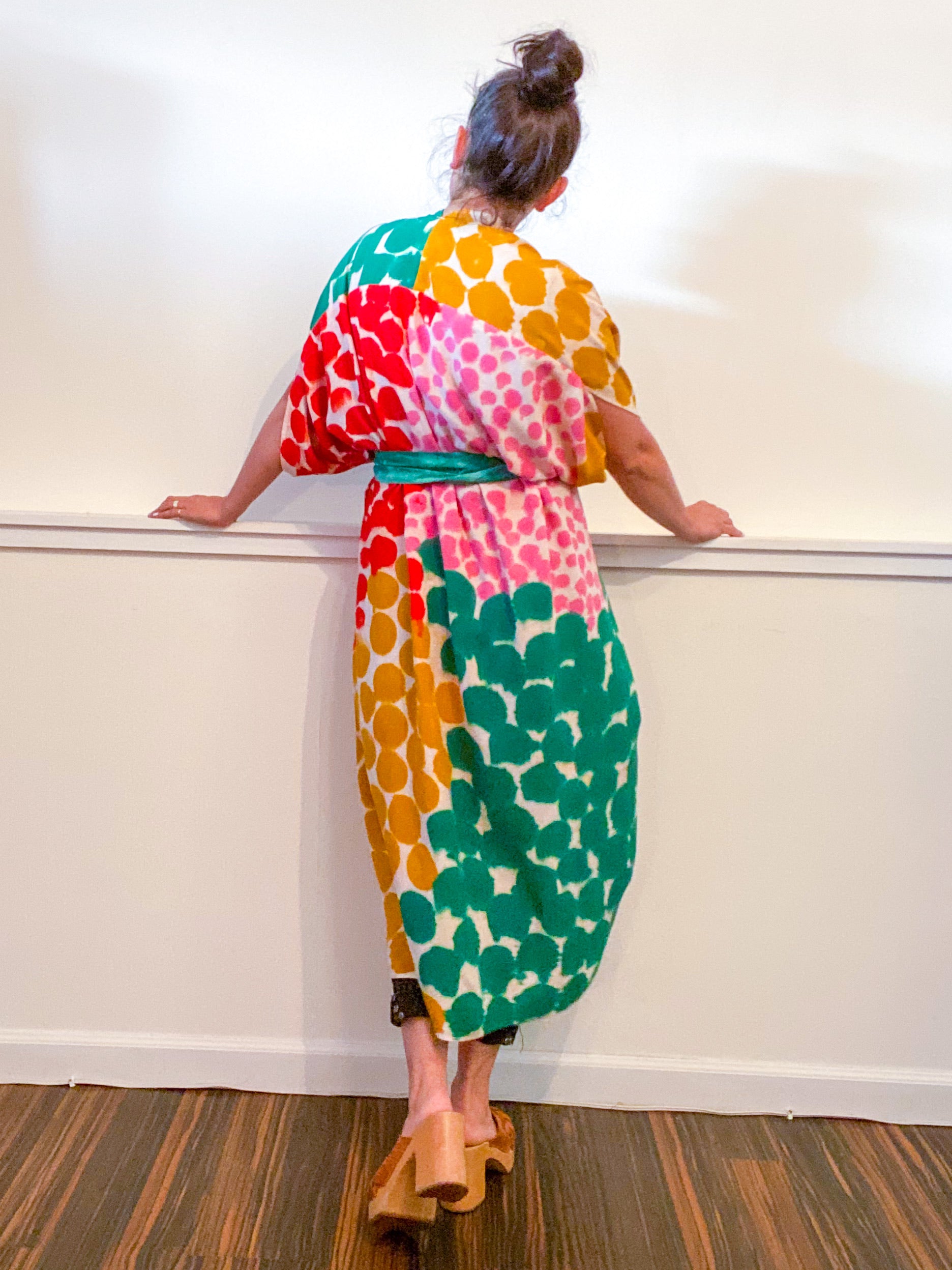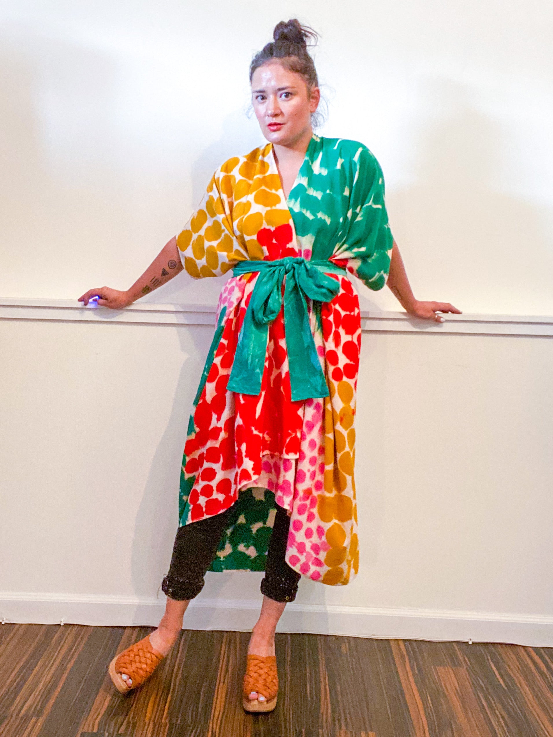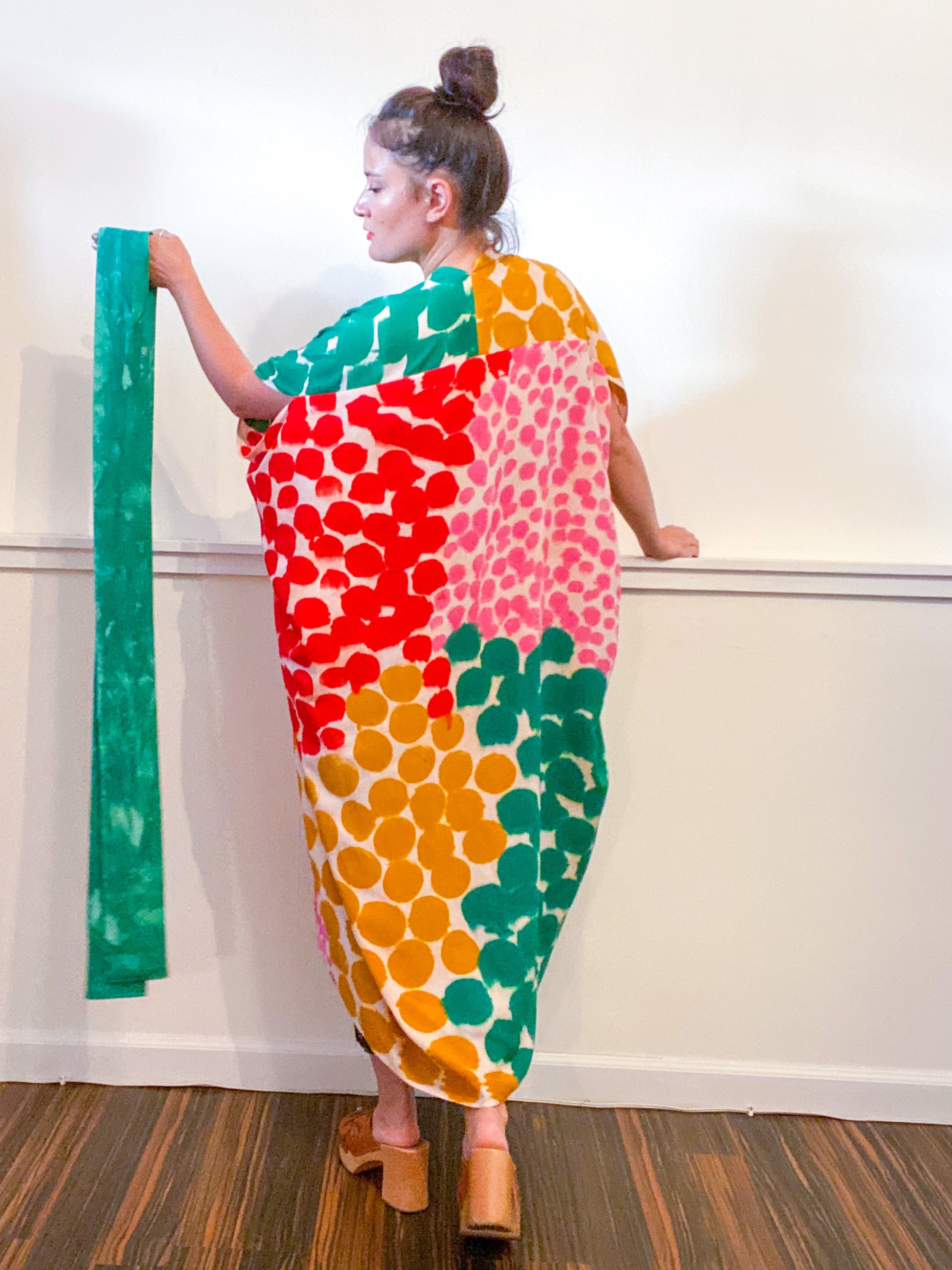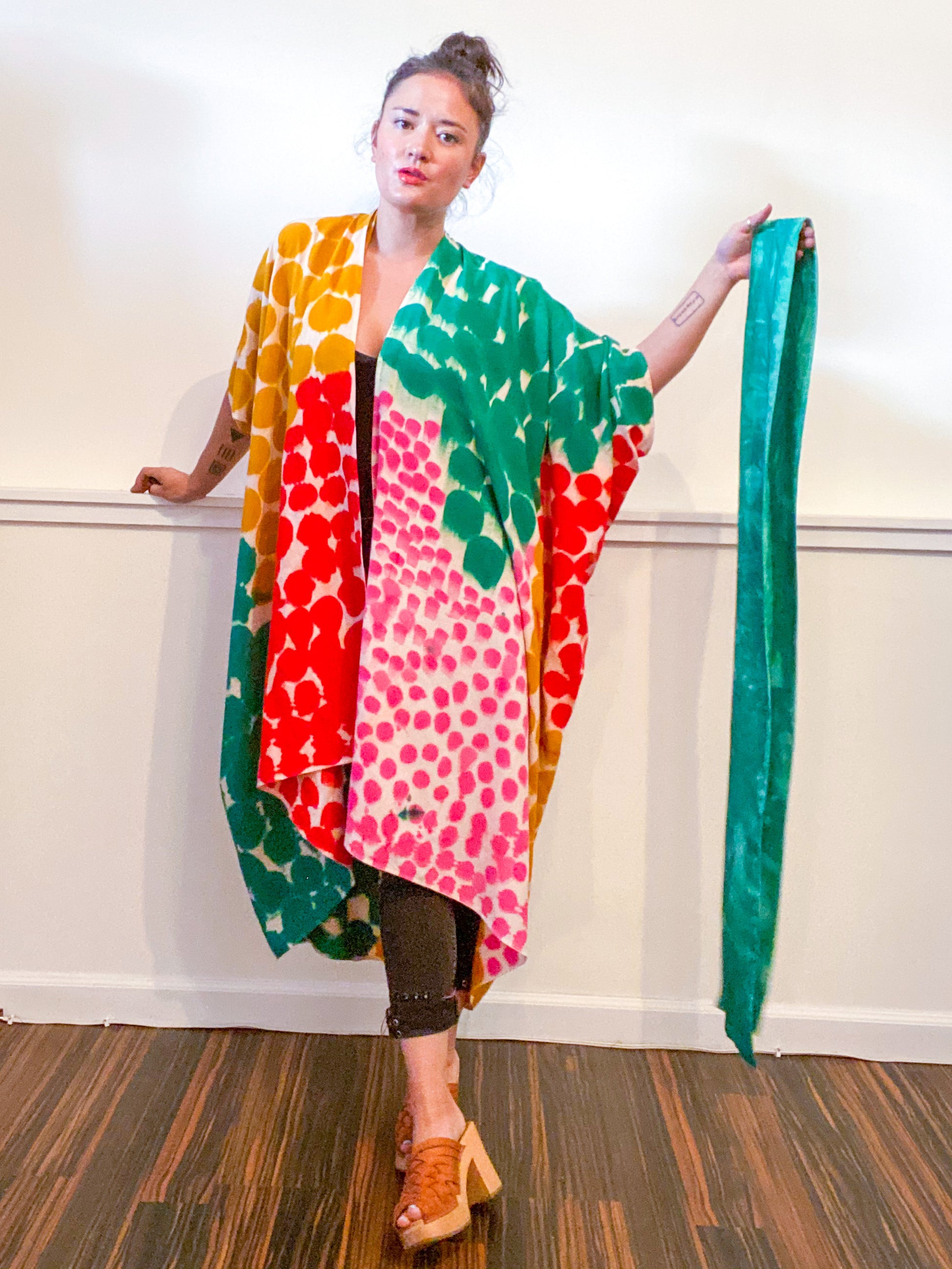 Limited Edition Hand-Dyed High Low Kimono Emerald Scarlet Pink Marigold