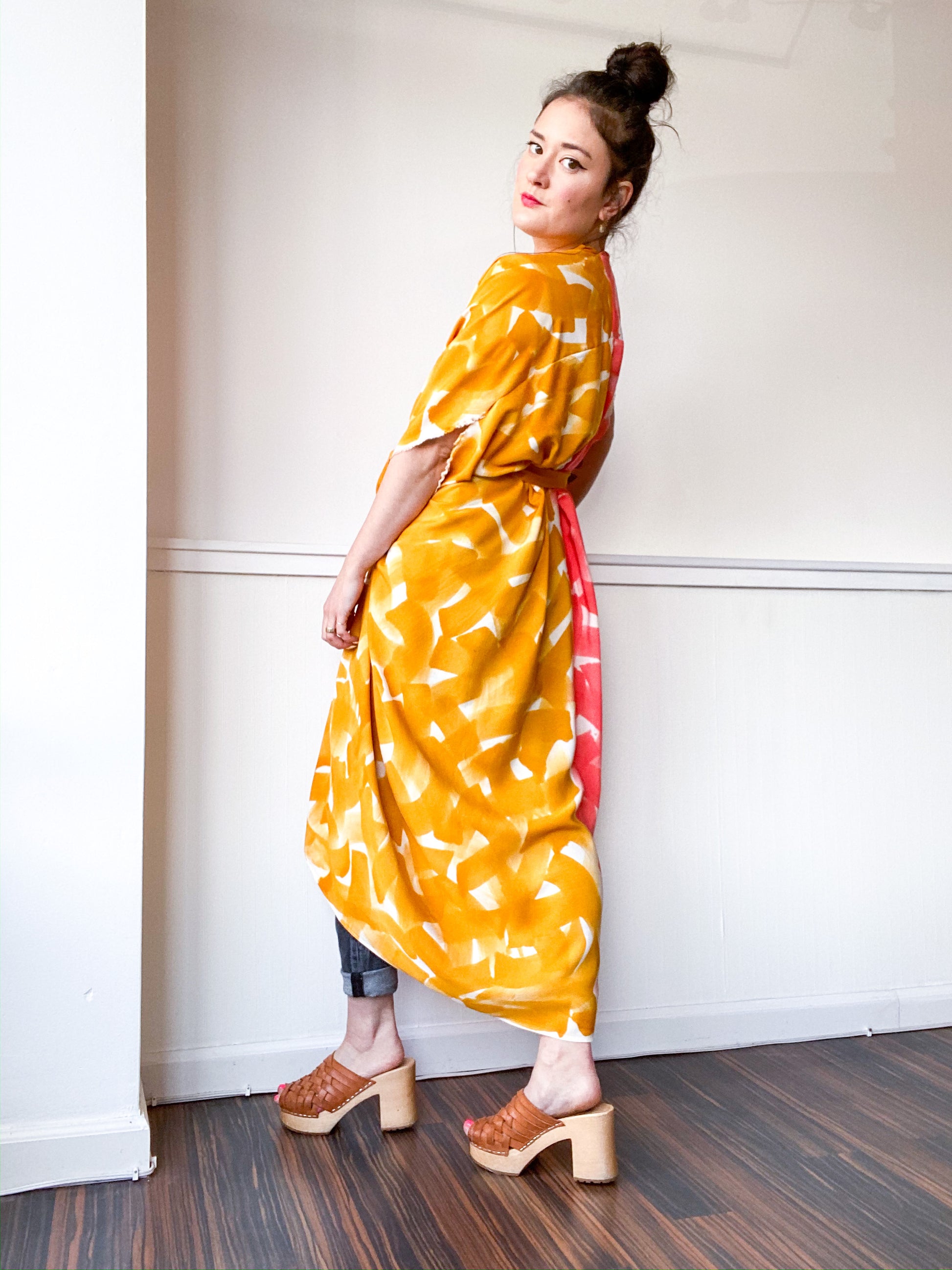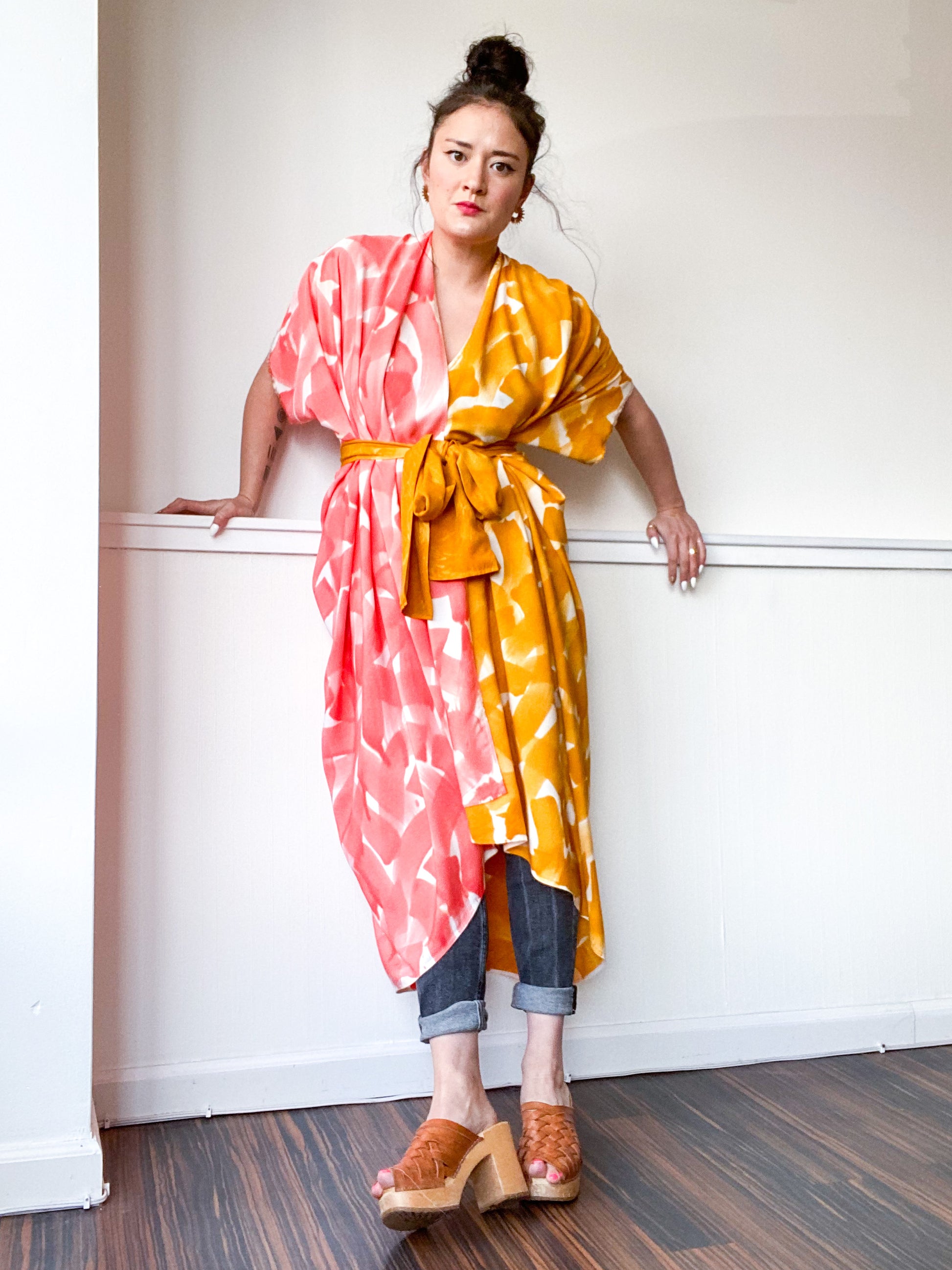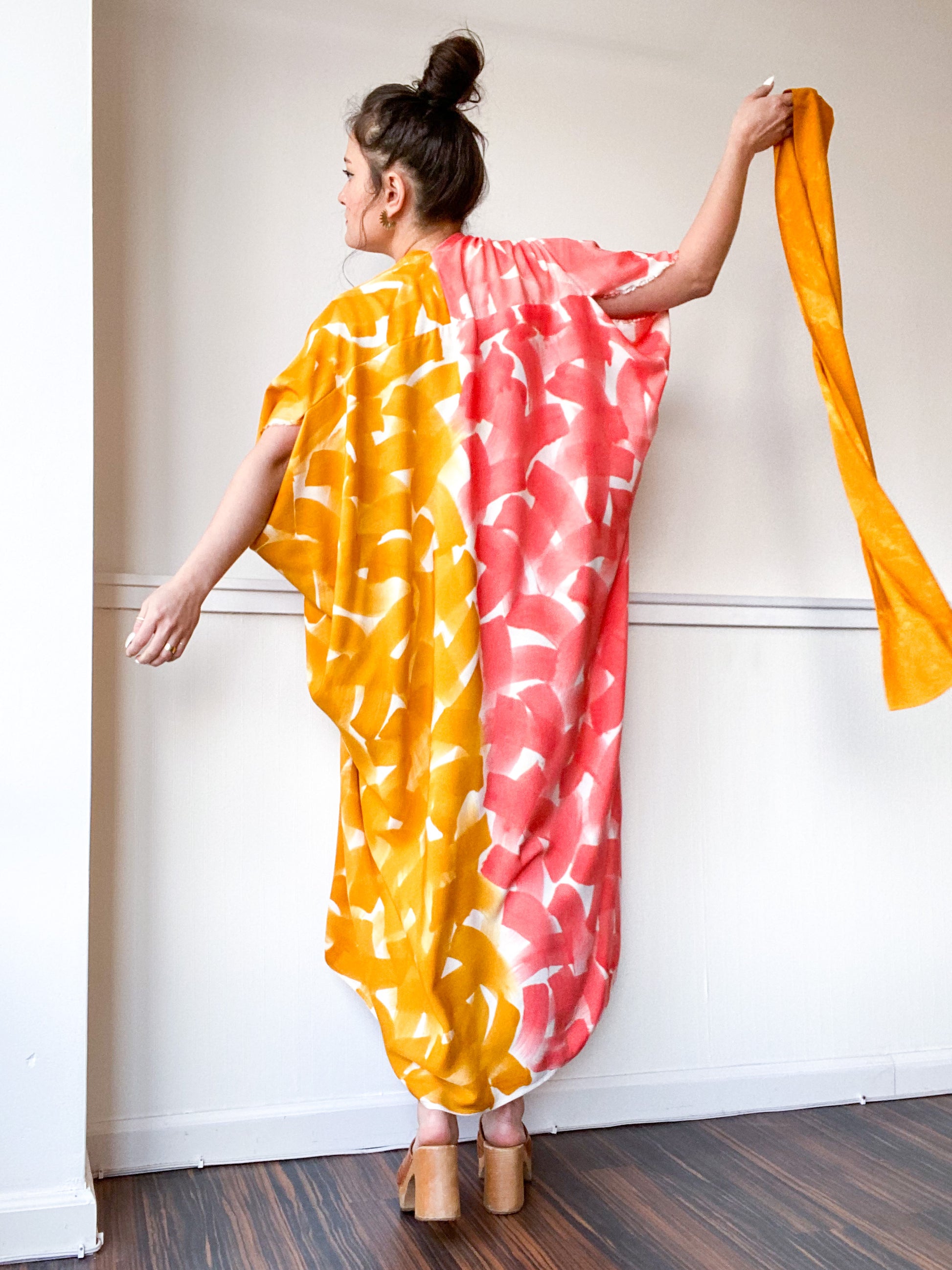Limited Edition Hand-Dyed High Low Kimono Marigold Coral