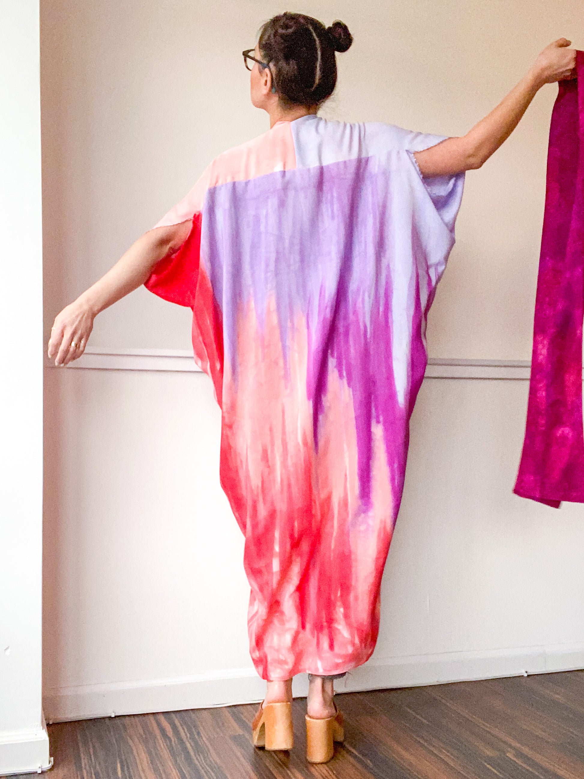 Limited Edition Hand-Dyed High Low Kimono Scarlet Amethyst