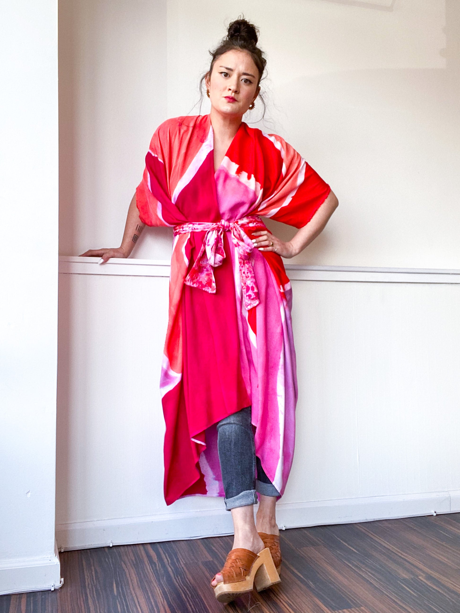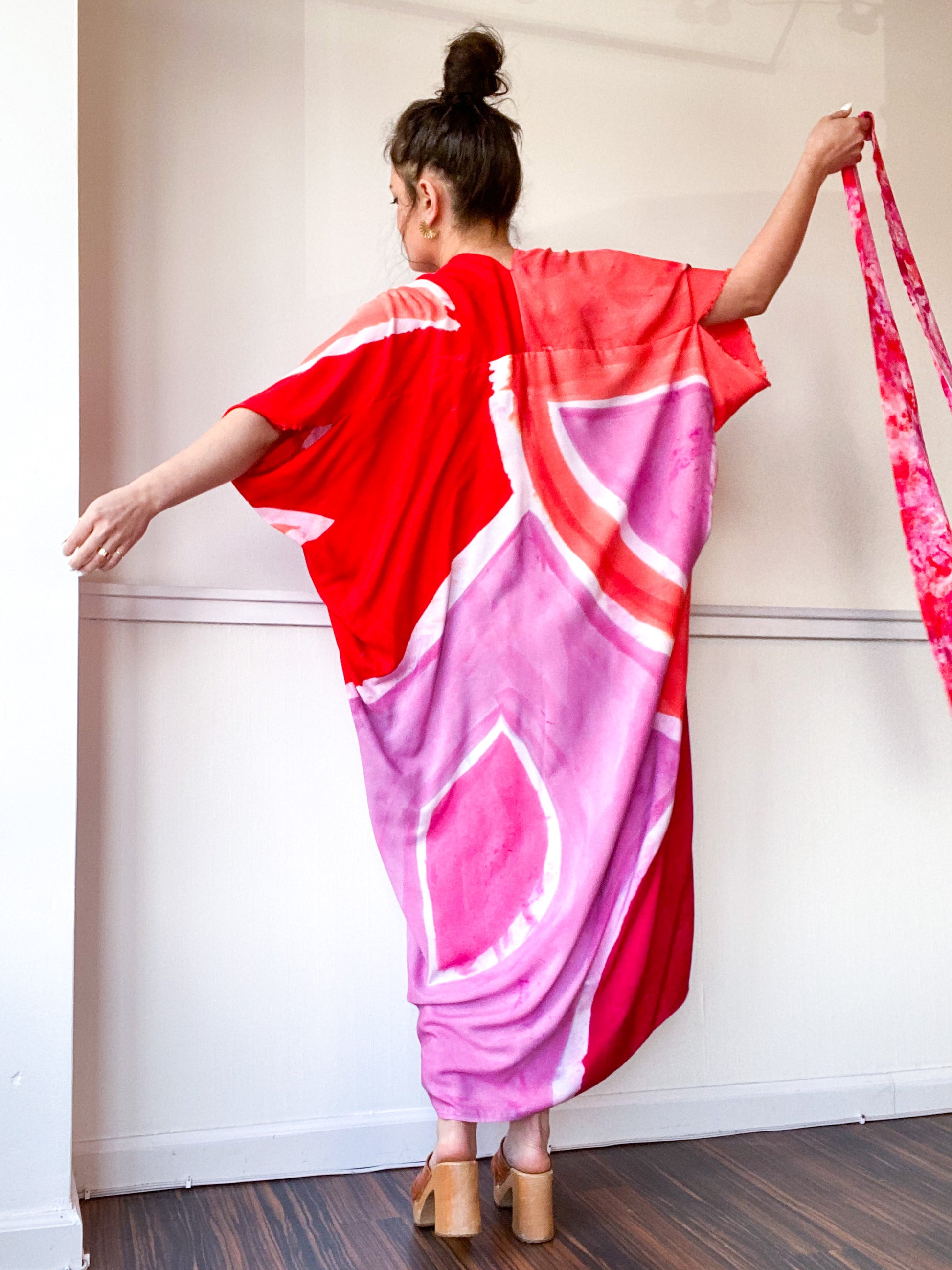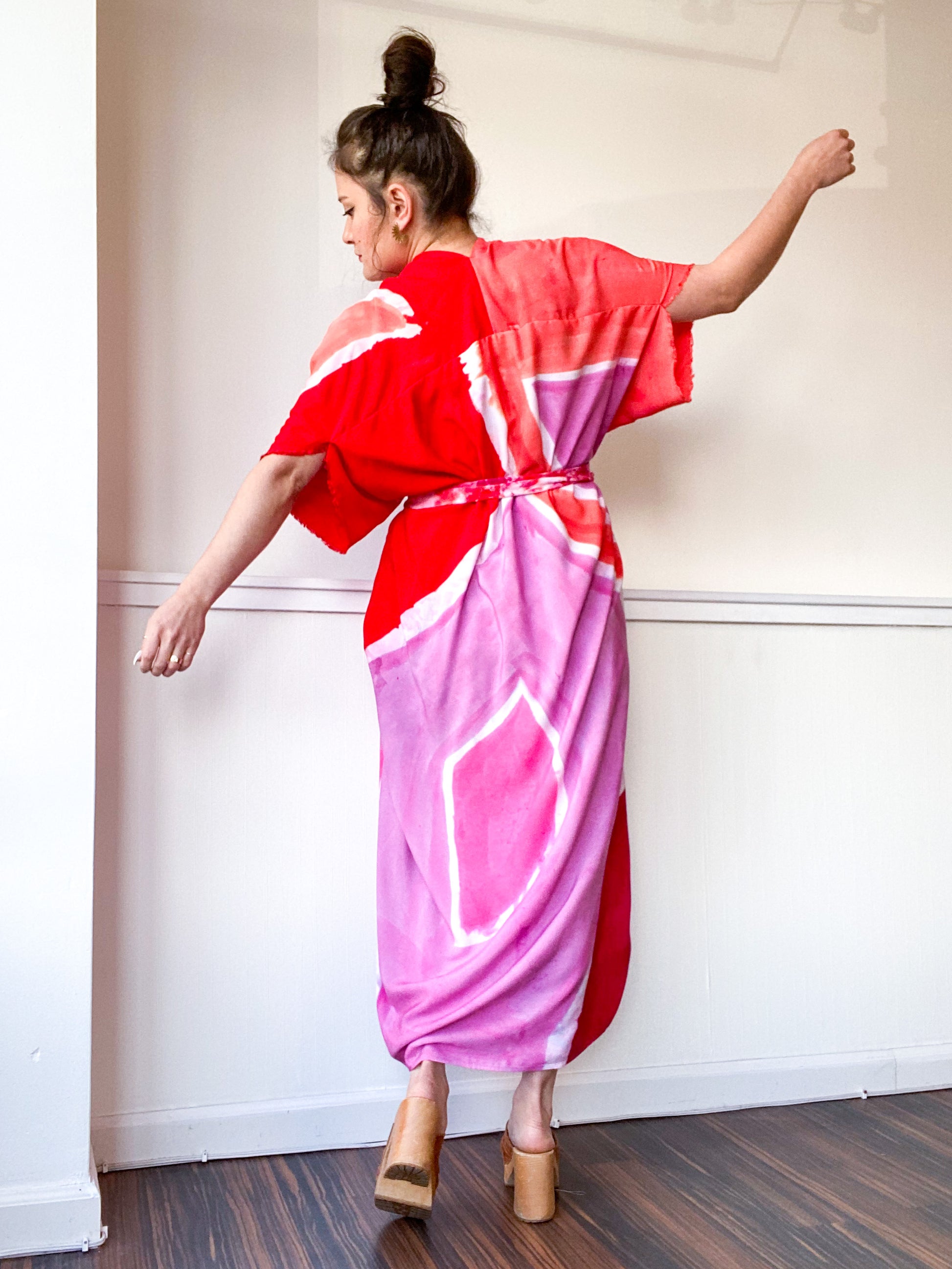 Limited Edition Hand-Dyed High Low Kimono Shape Study Pink Red