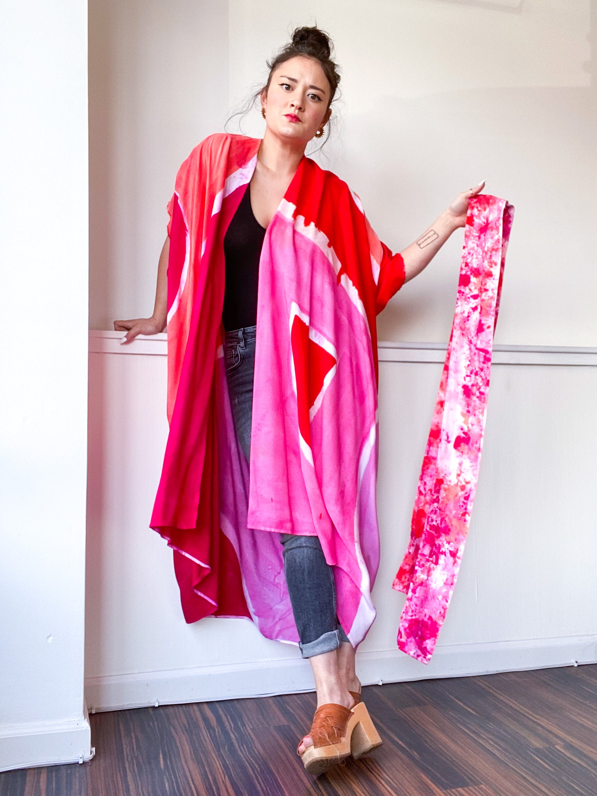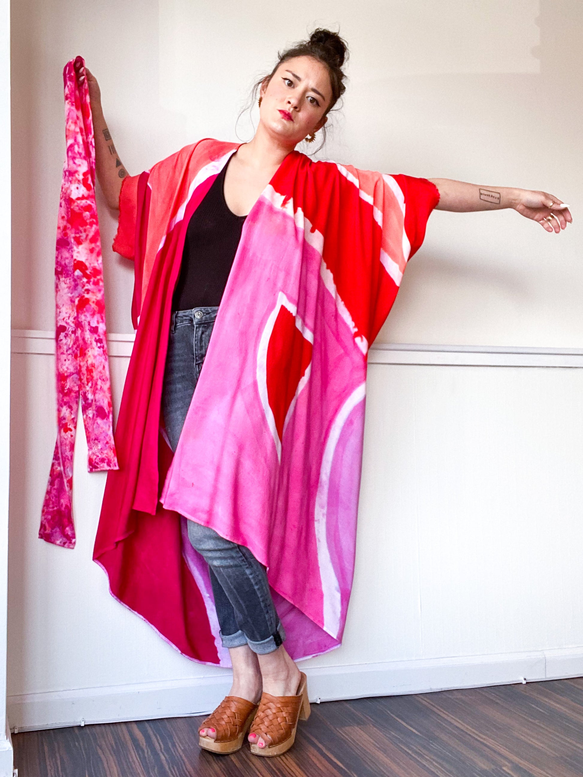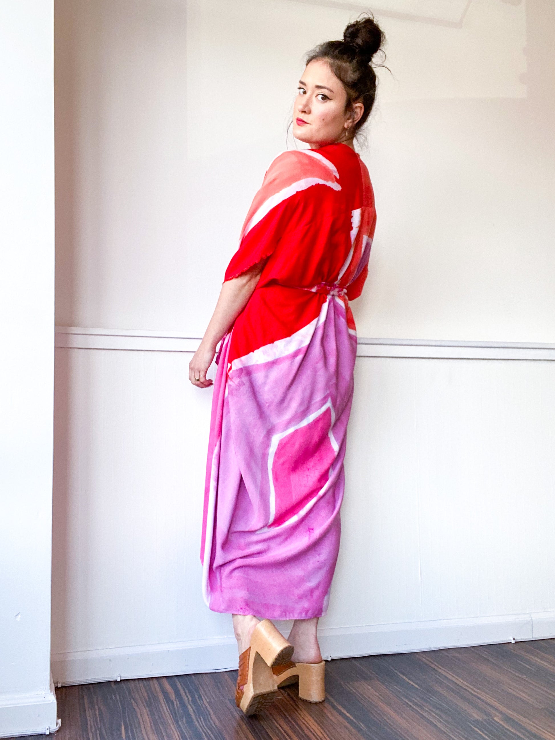 Limited Edition Hand-Dyed High Low Kimono Shape Study Pink Red