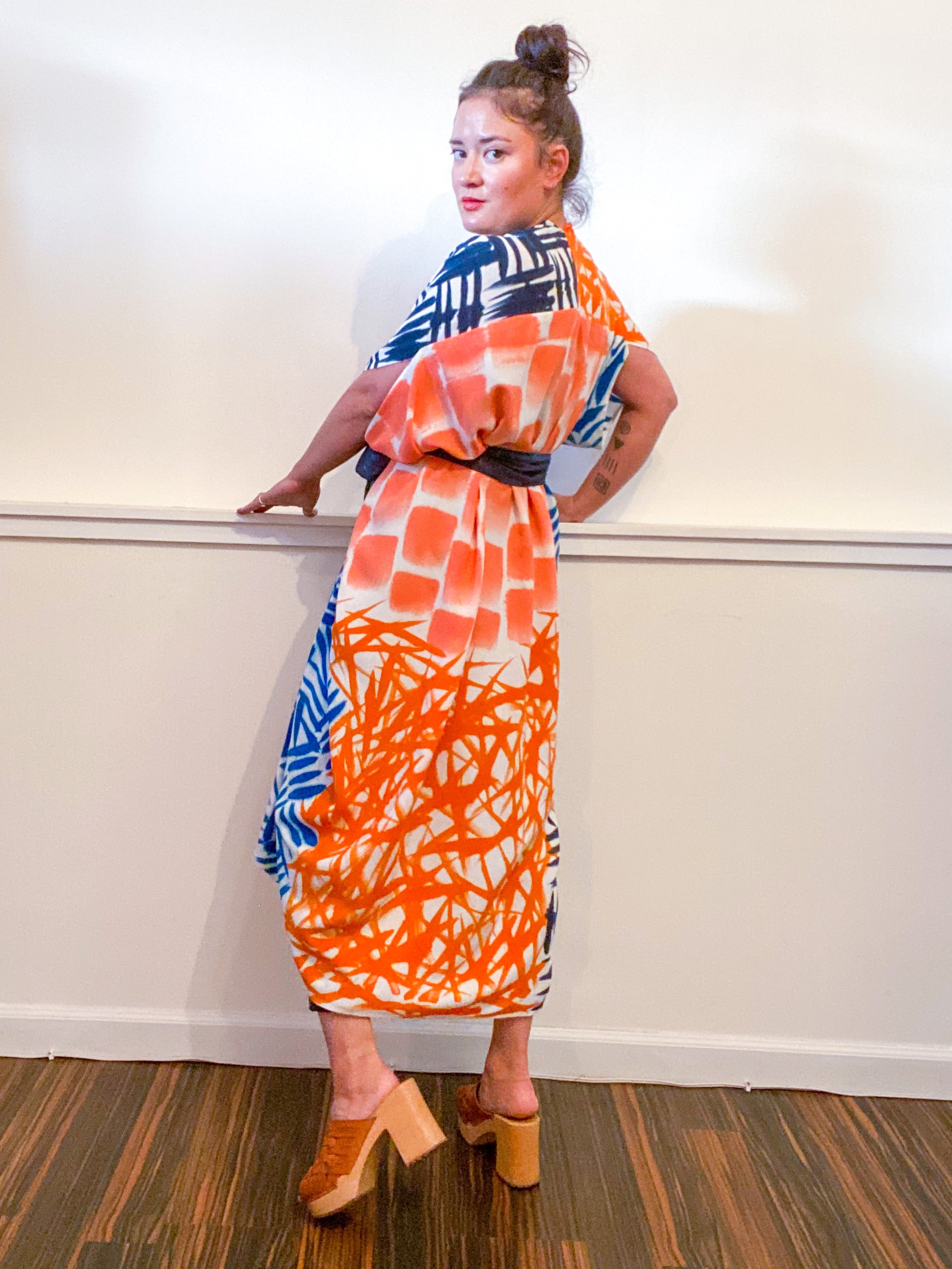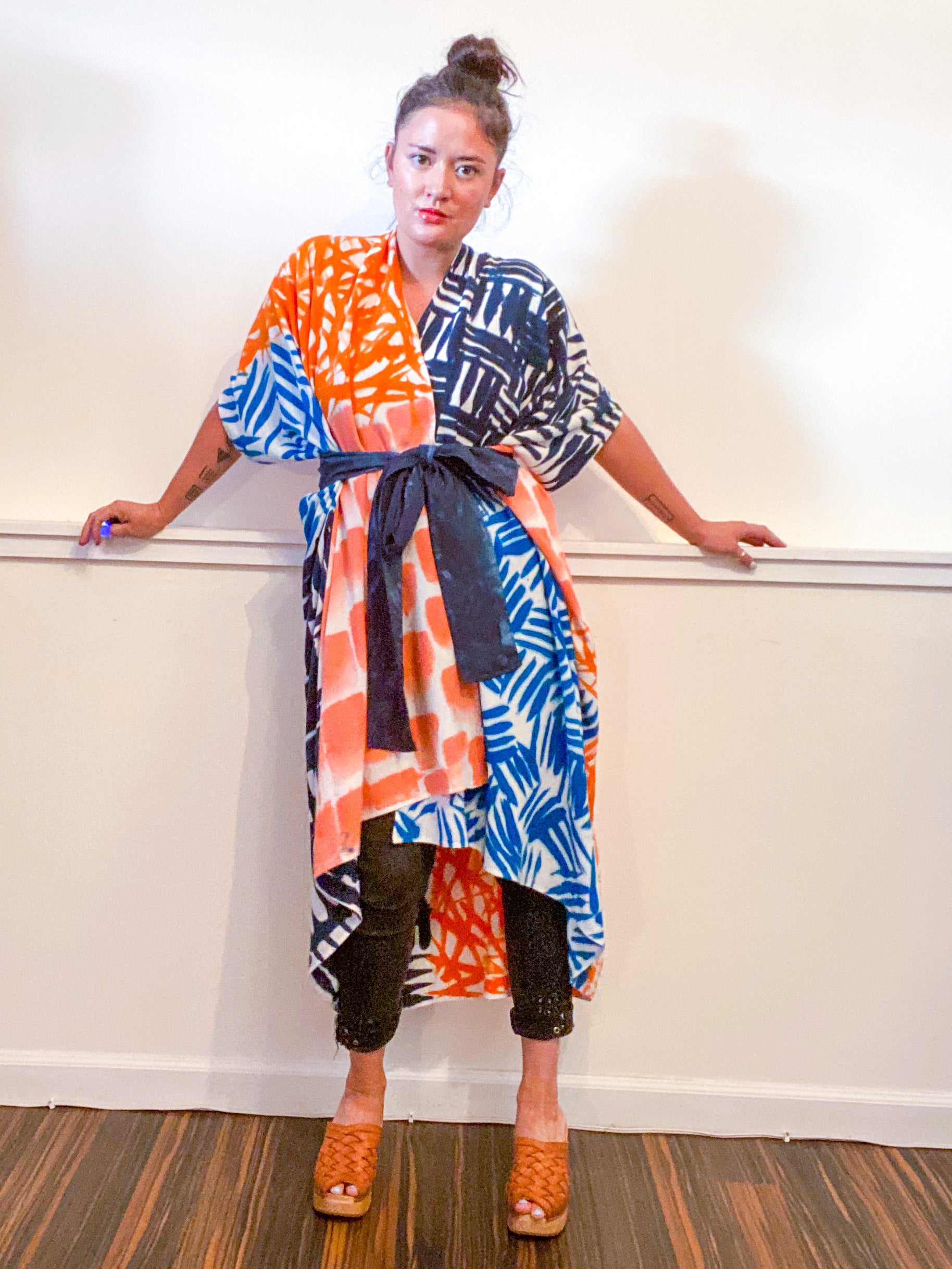 Limited Edition Hand-Dyed High Low Kimono Teal Cerulean Coral Orange