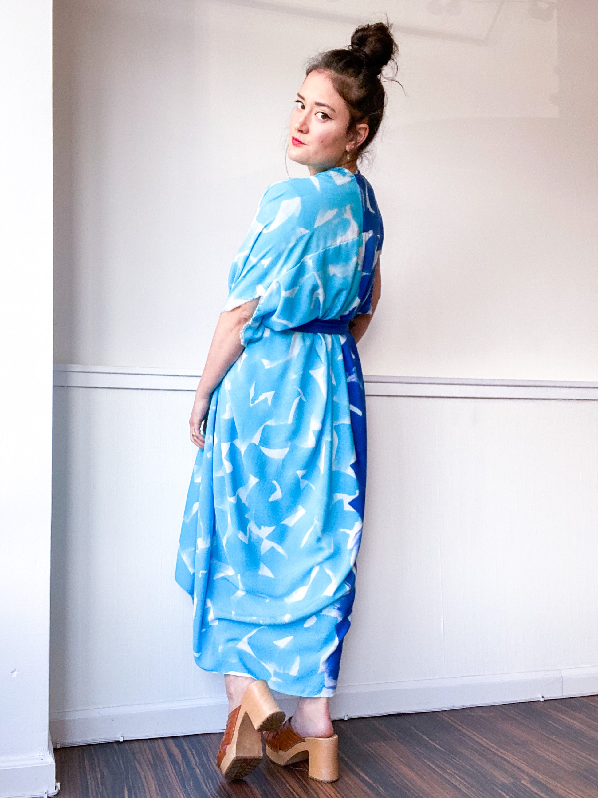 Limited Edition Hand-Dyed High Low Kimono Turquoise Royal