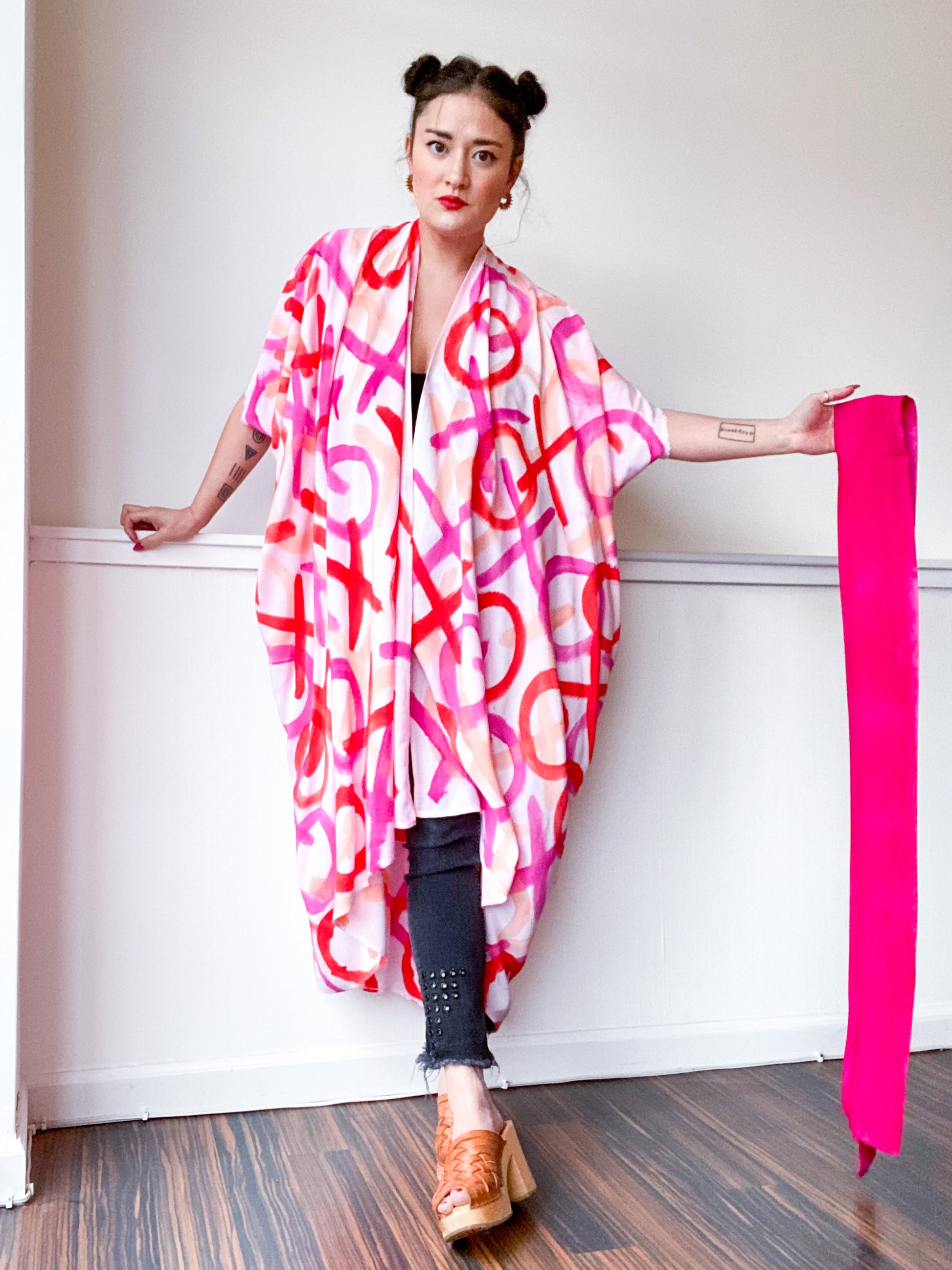 Limited Edition Hand-Dyed High Low Kimono XO Pink Red