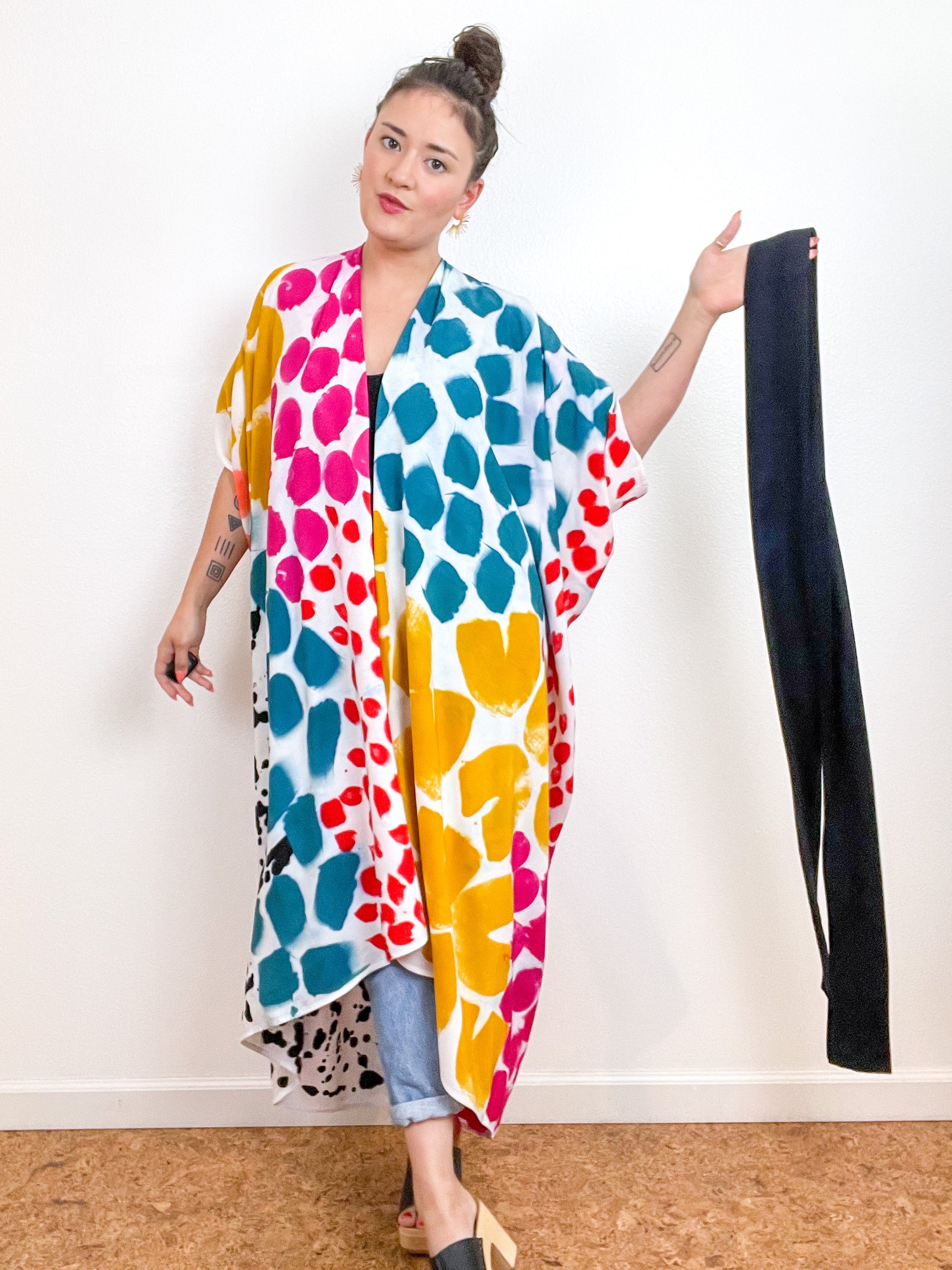OOAK Hand-Dyed High Low Kimono Confetti 1