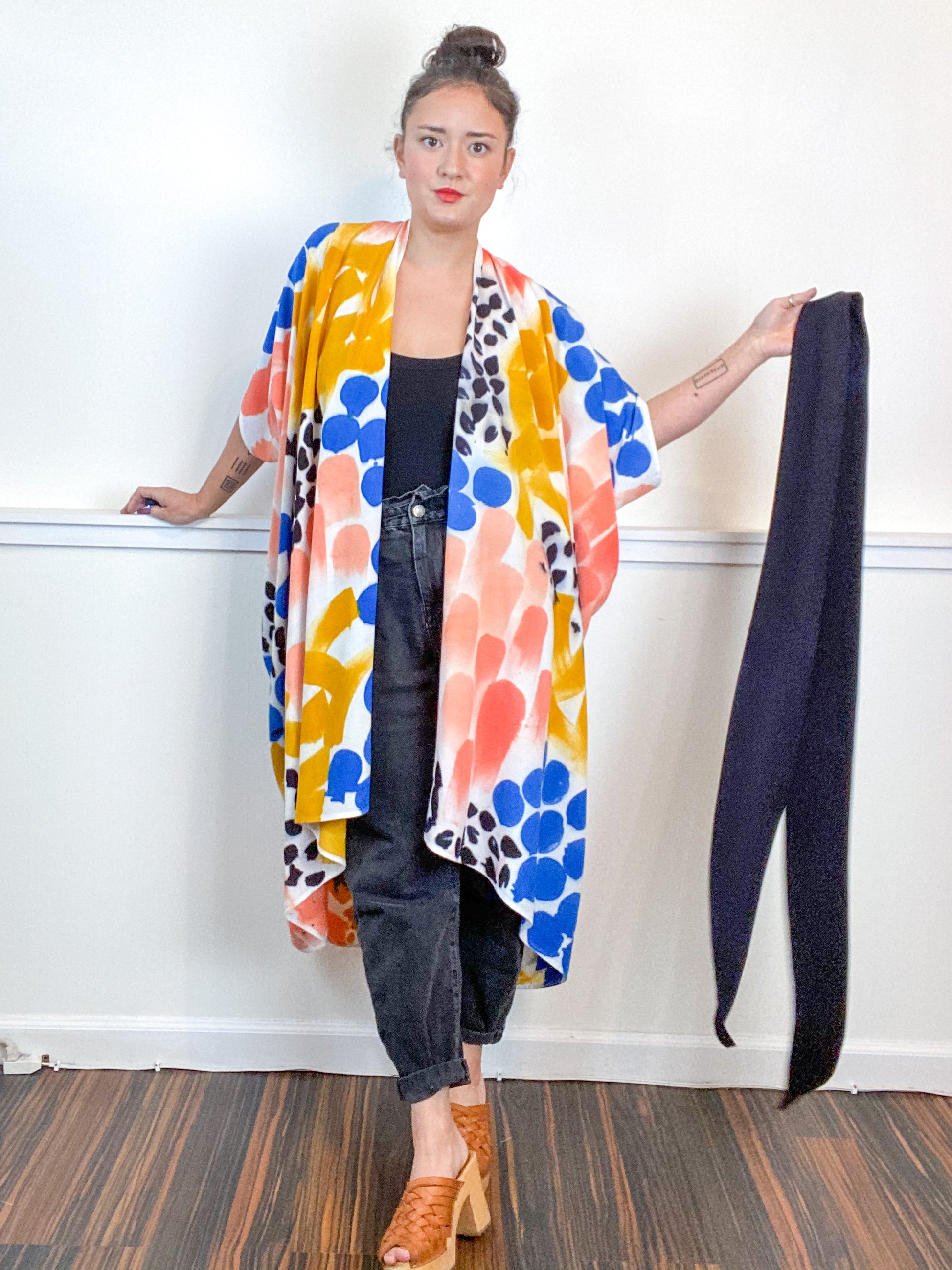 OOAK Hand-Dyed High Low Kimono Coral Raven Marigold Sky