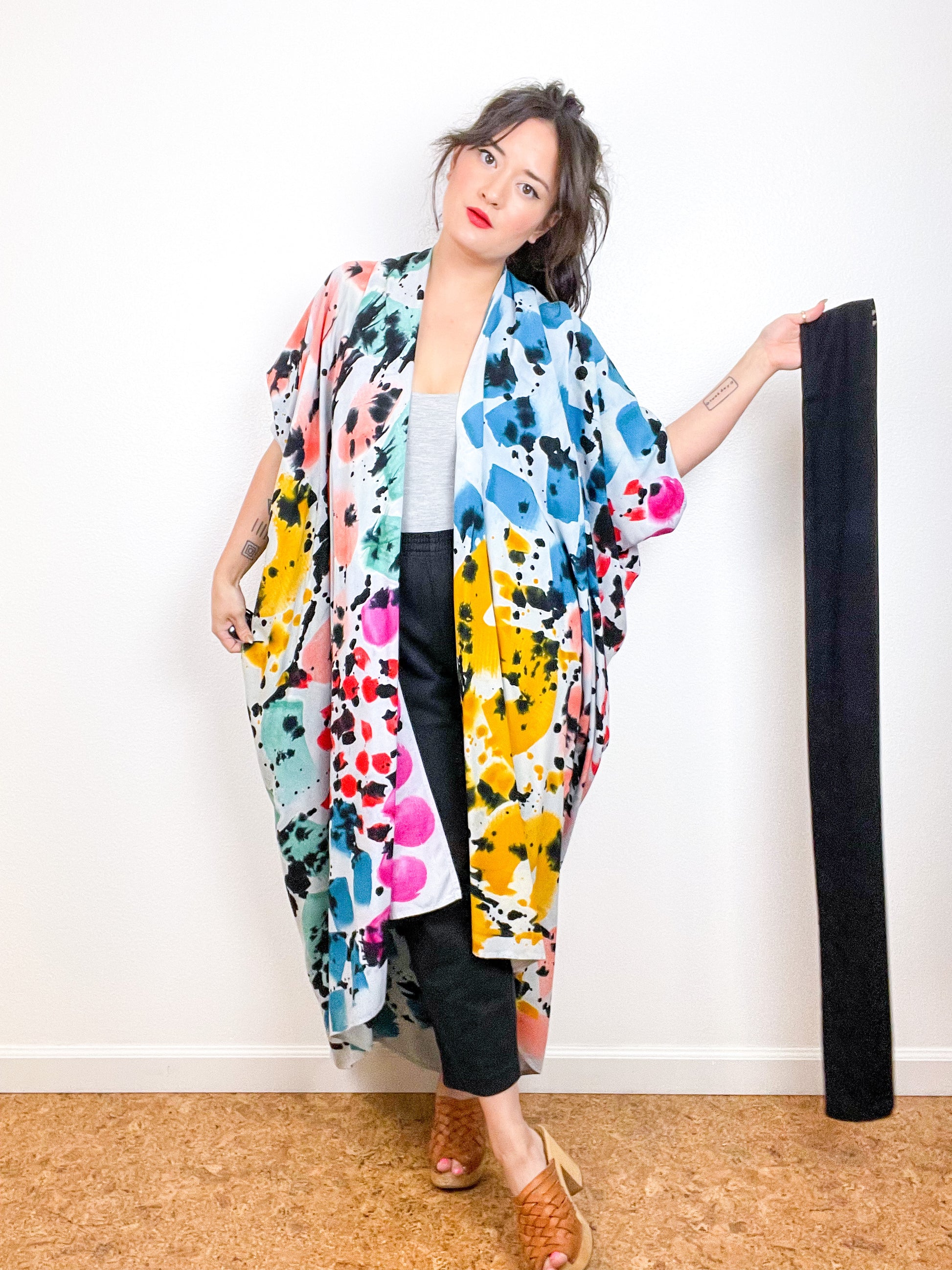 OOAK Hand-Dyed High Low Kimono Multicolor Two