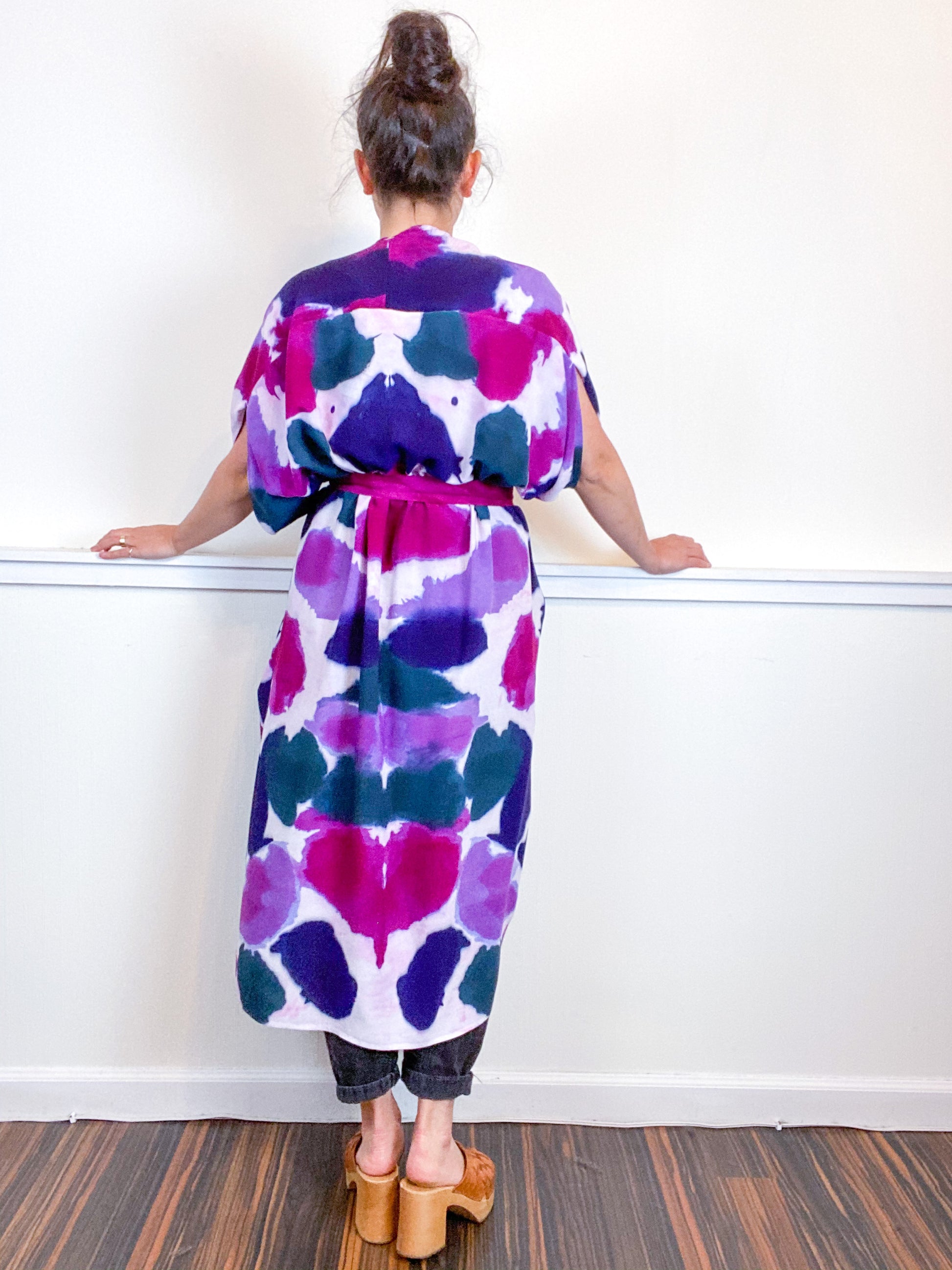 OOAK Hand-Dyed High Low Kimono Orchid Amethyst Indigo Kingfisher Inkblot