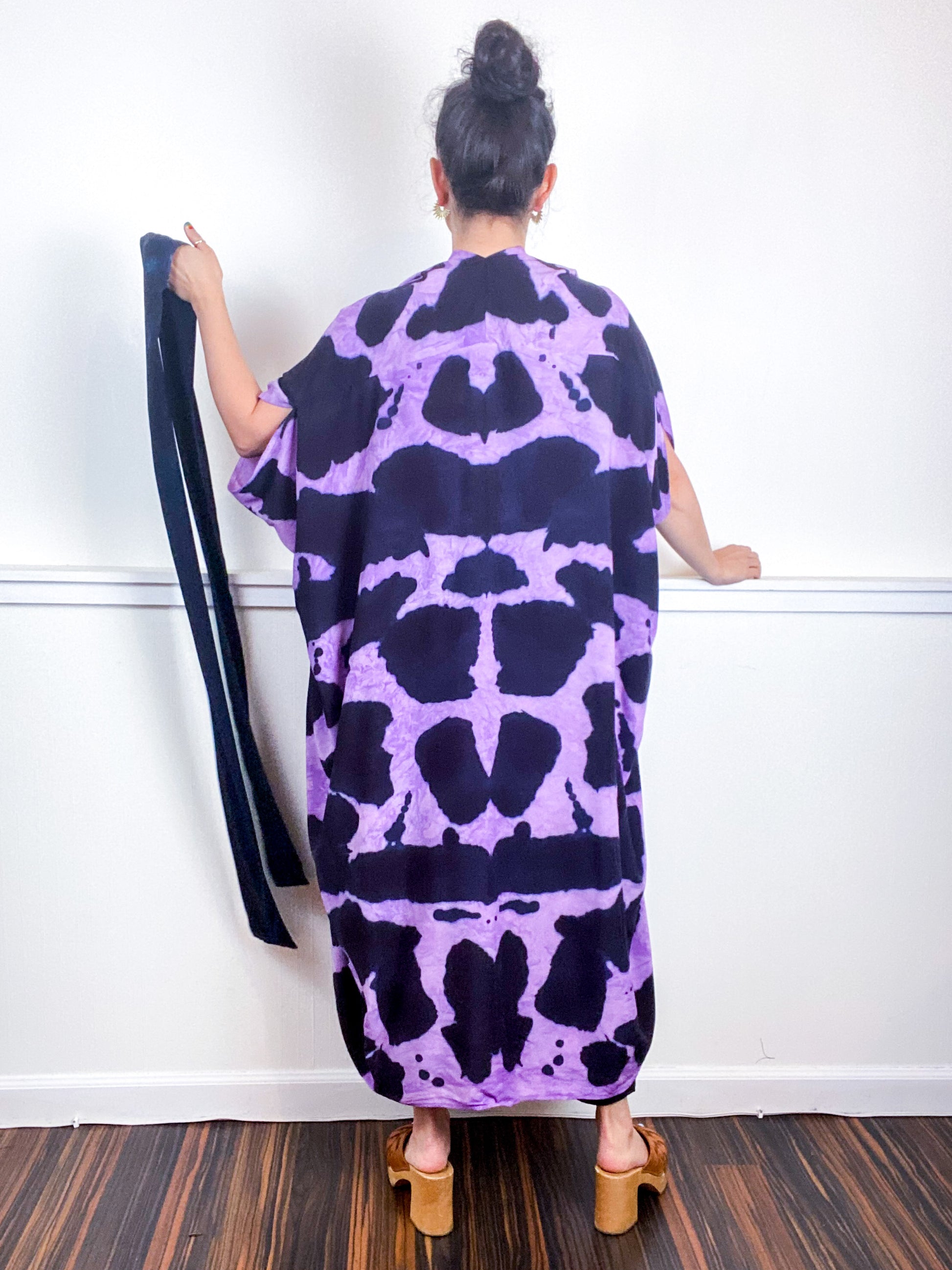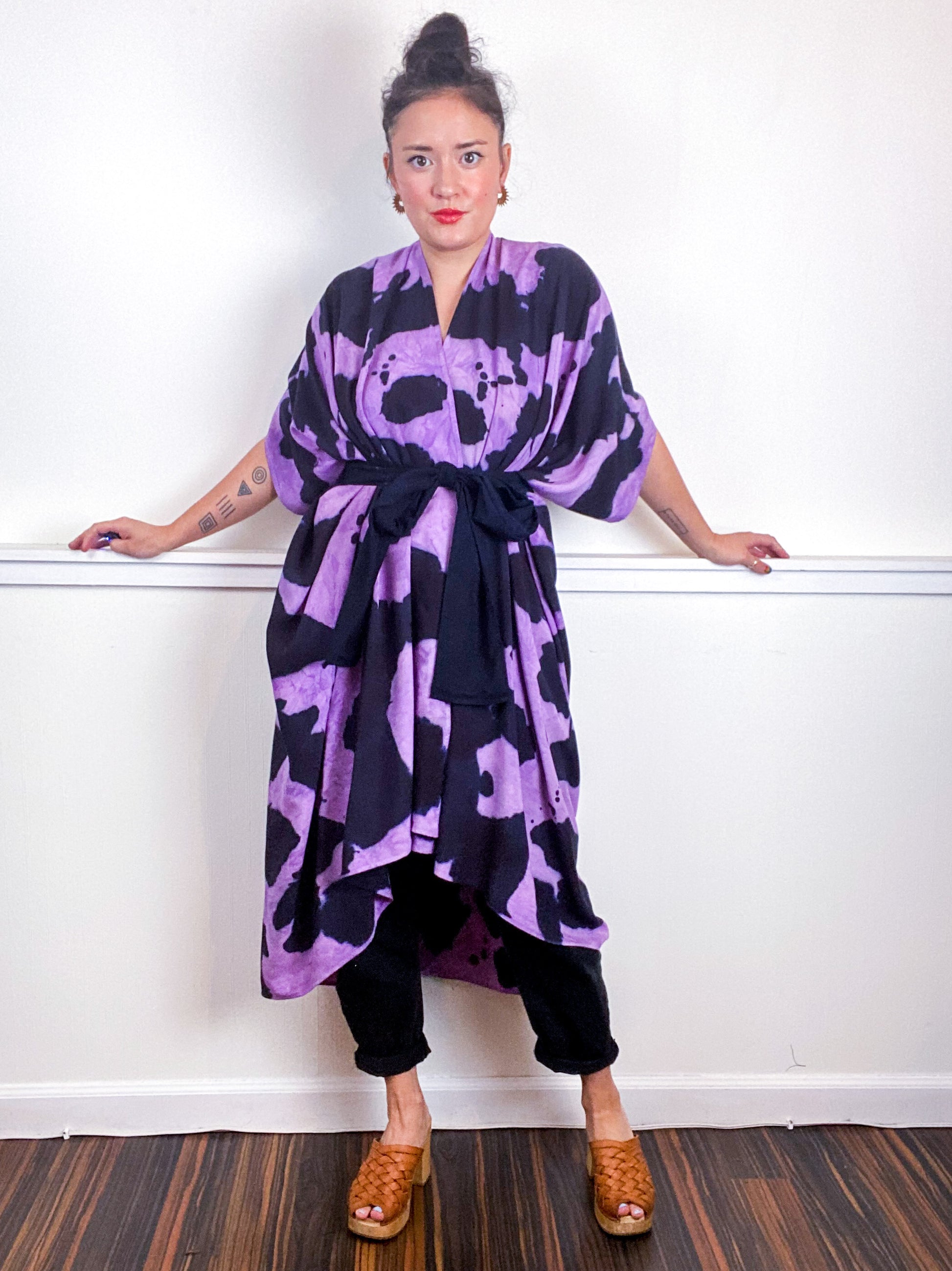 OOAK Hand-Dyed High Low Kimono Orchid Raven Inkblot