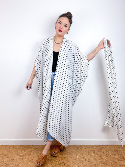 Print High Low Kimono Ivory Black Dots Bubble Crepe